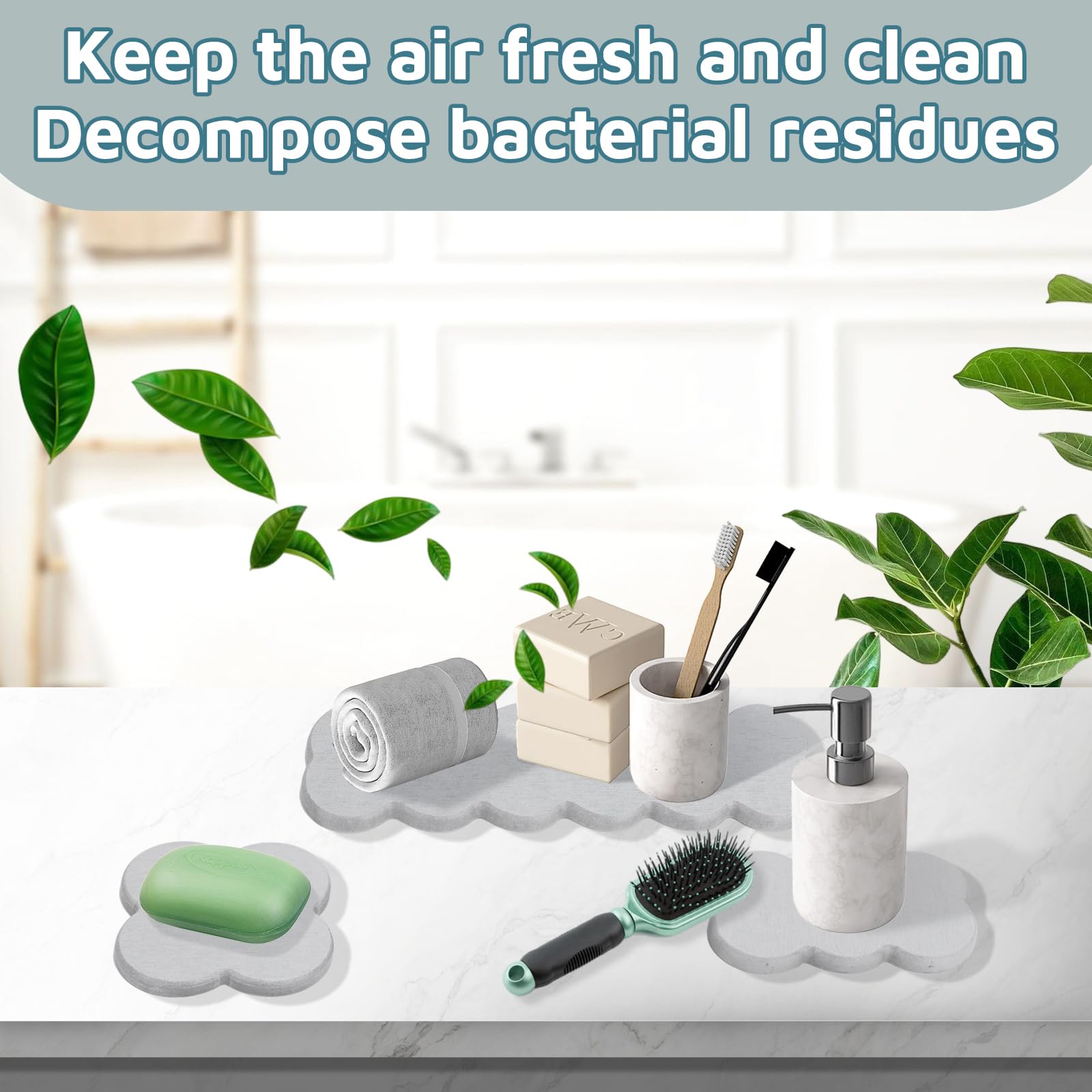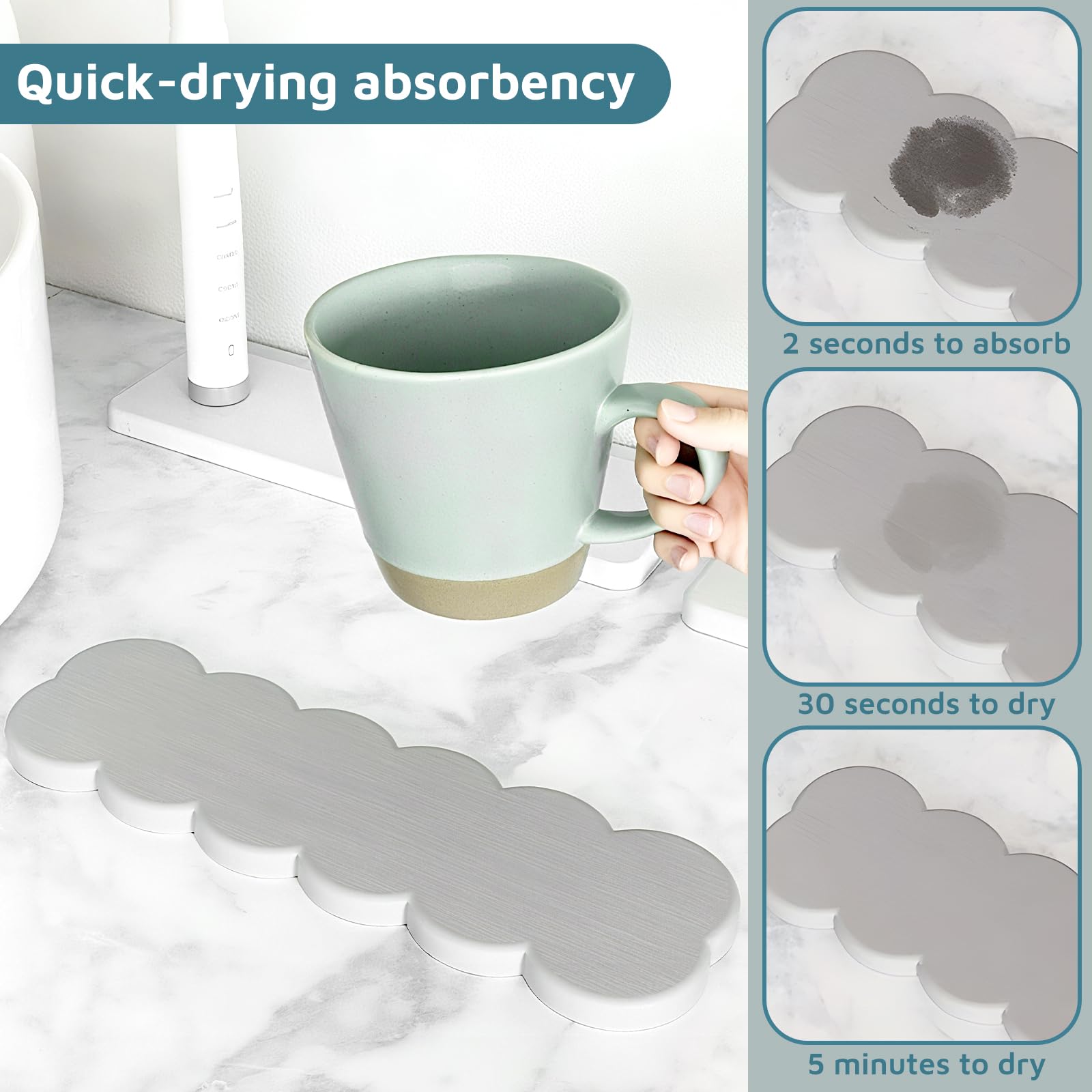 FYSL 3 Stück Wassersabsorbierende Stein Untersetzer aus Kieselguhr - Schnelle Wasseraufnahme & Feuchtigkeitsentziehend für Spüle, Gläser, Flaschen, Küche, Bad,Wolkenform