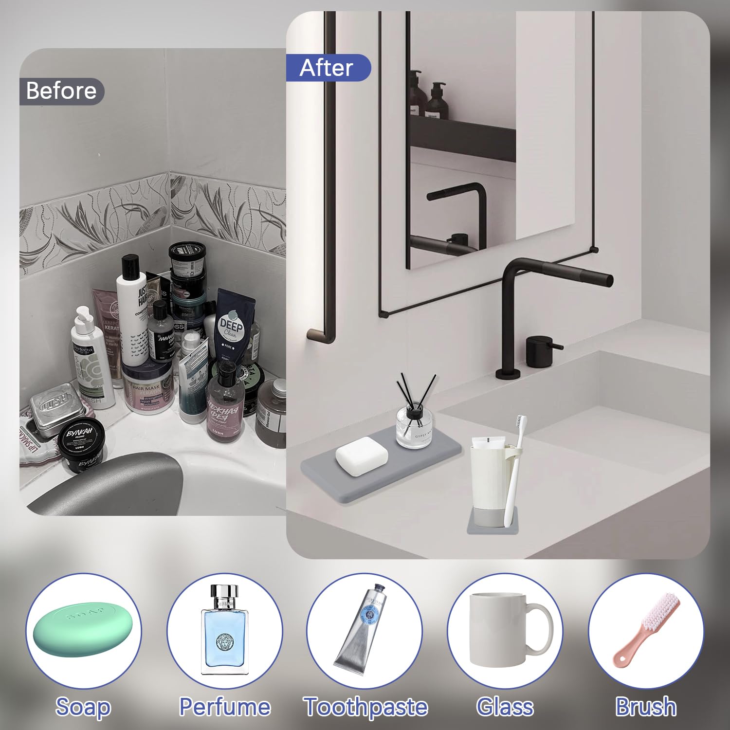 FYSL 3 Stück Wasserabsorbierender Stein für Spüle, Kieselgur Untersetzer, Diatomit Saugfähige Untersetzer, Wasser Absorbieren Und Entfeuchten, Diatomit Tablett für Schwämme, Bürsten, Seife