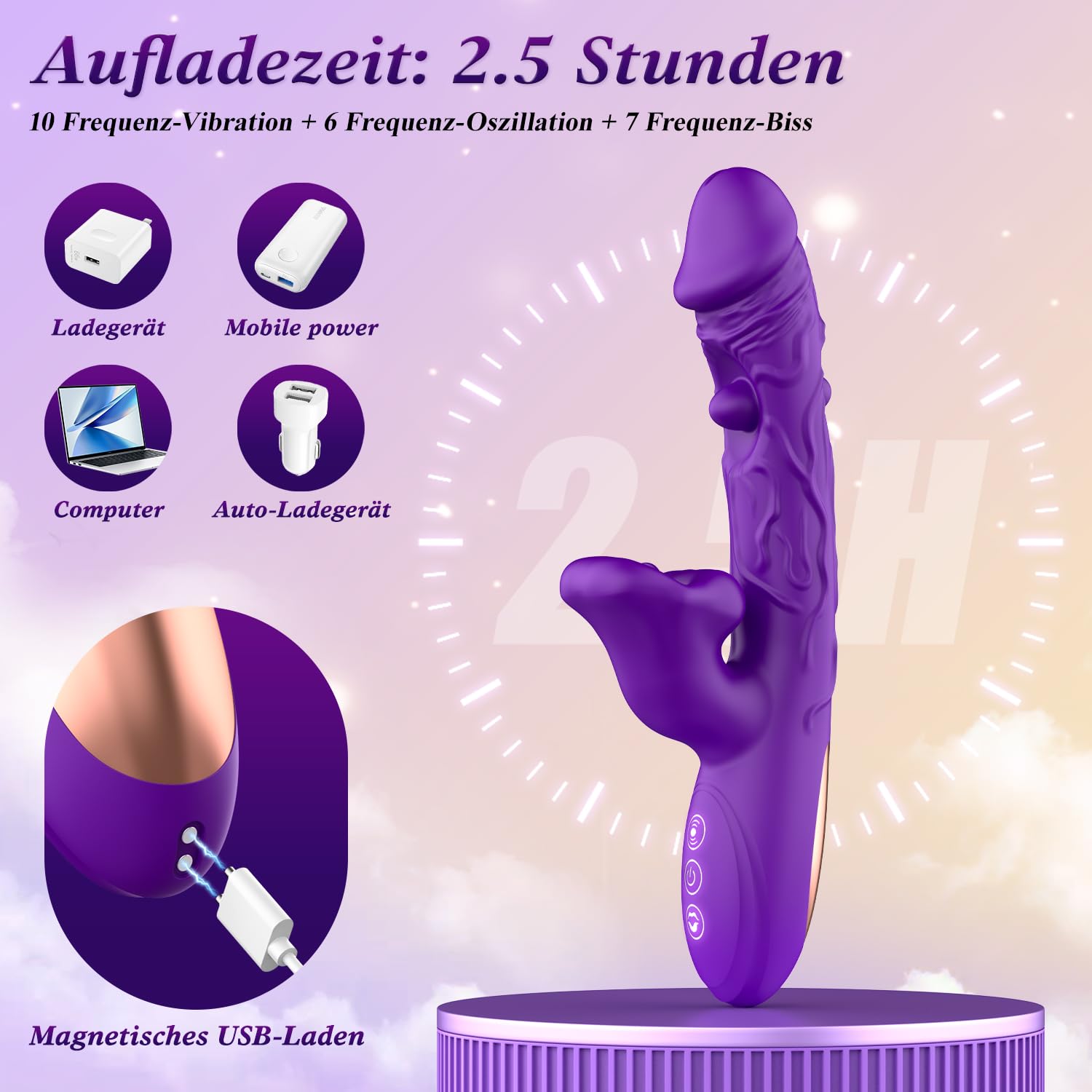 4 in 1 Dildo Vibrator G Punkt Vibration für Frauen Klitoris,7 Spannmodi 10 Vibrationsmodi 6 Oszillierende Modi, Clitoris Vibrator Sex Spielzeug,Sex Toy Lecken für Klitoris Stimulator für Sie