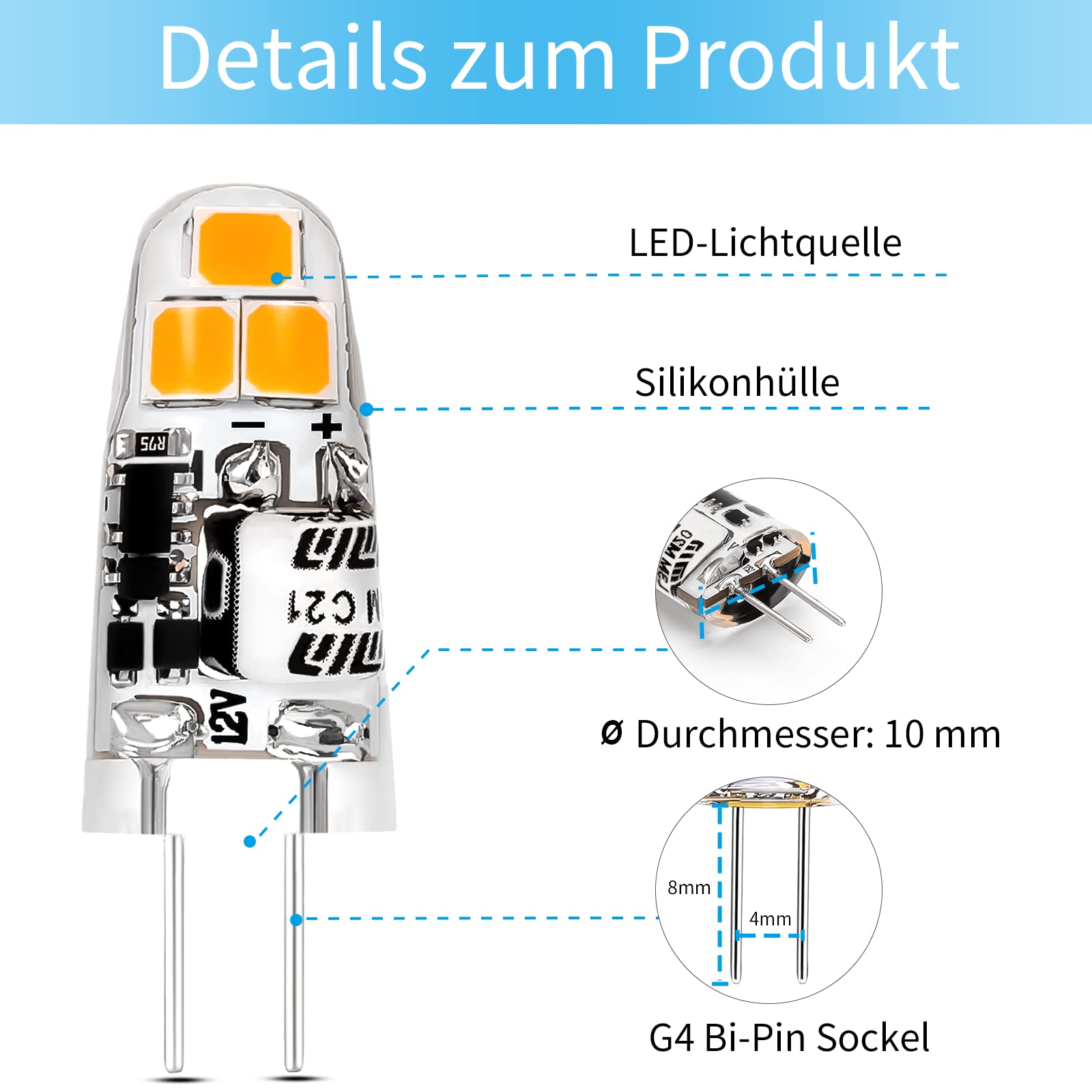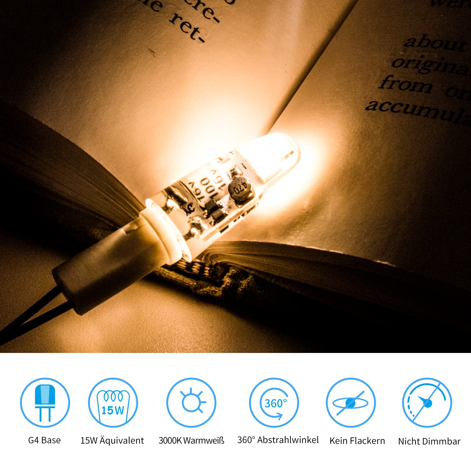 I-SHUNFA G4 LED Lampen,12V AC/DC,G4 LED Leuchtmittel 120LM,Warmweiss 3000K Led Glühbirne G4,1.2W Ersatz für 15W Halogenlampen,Kein Flackern,Nicht Dimmbar,360°Lichtwinkel,10er Pack