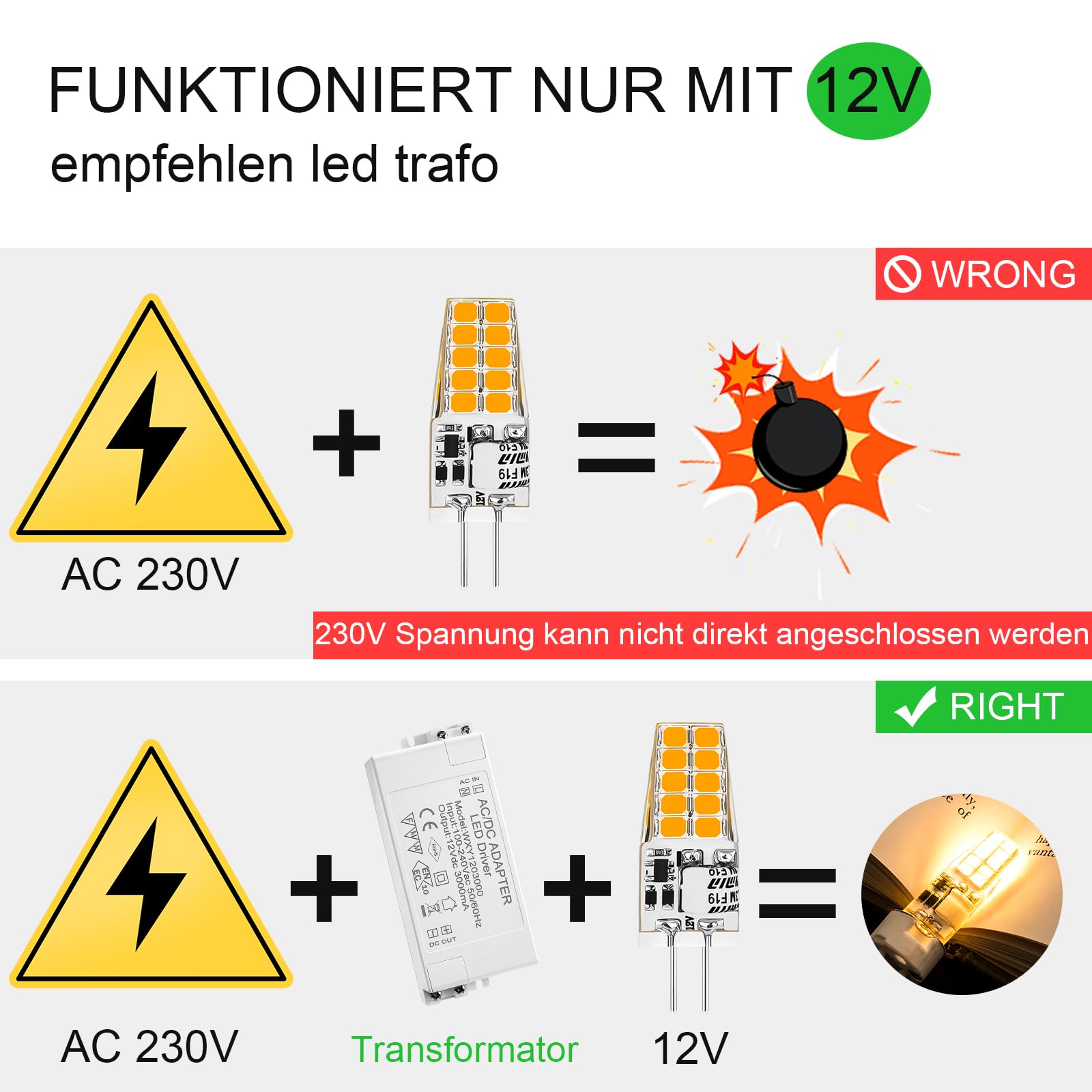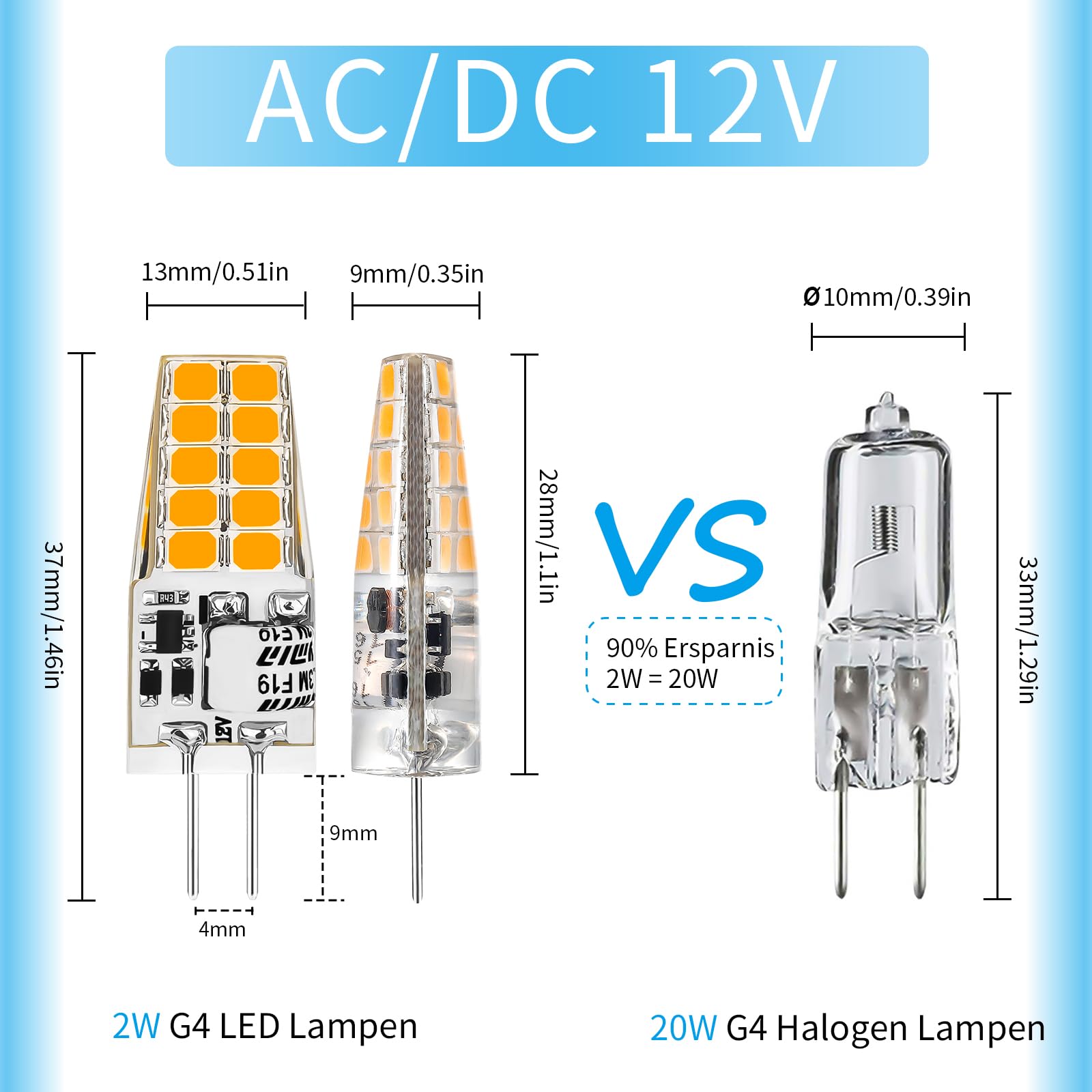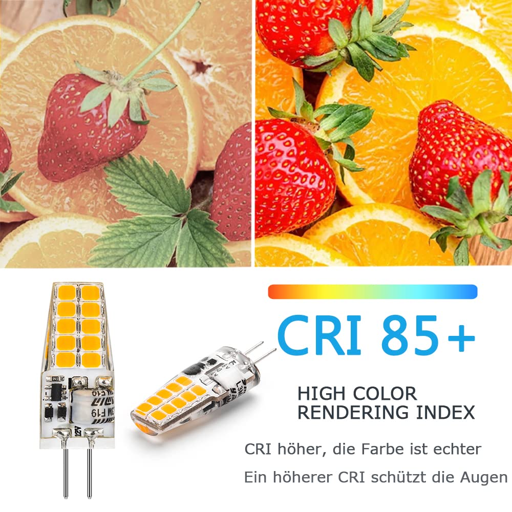 LED-Lampen G4, AC/DC 12V hat Lampe G4, 250LM warmweiss 3000K Kein Flackern LED-Lampe, 2W ersetzt 20W Halogenlampen, nicht dimmbar, für Küchenabzugshaube, 10er-Pack