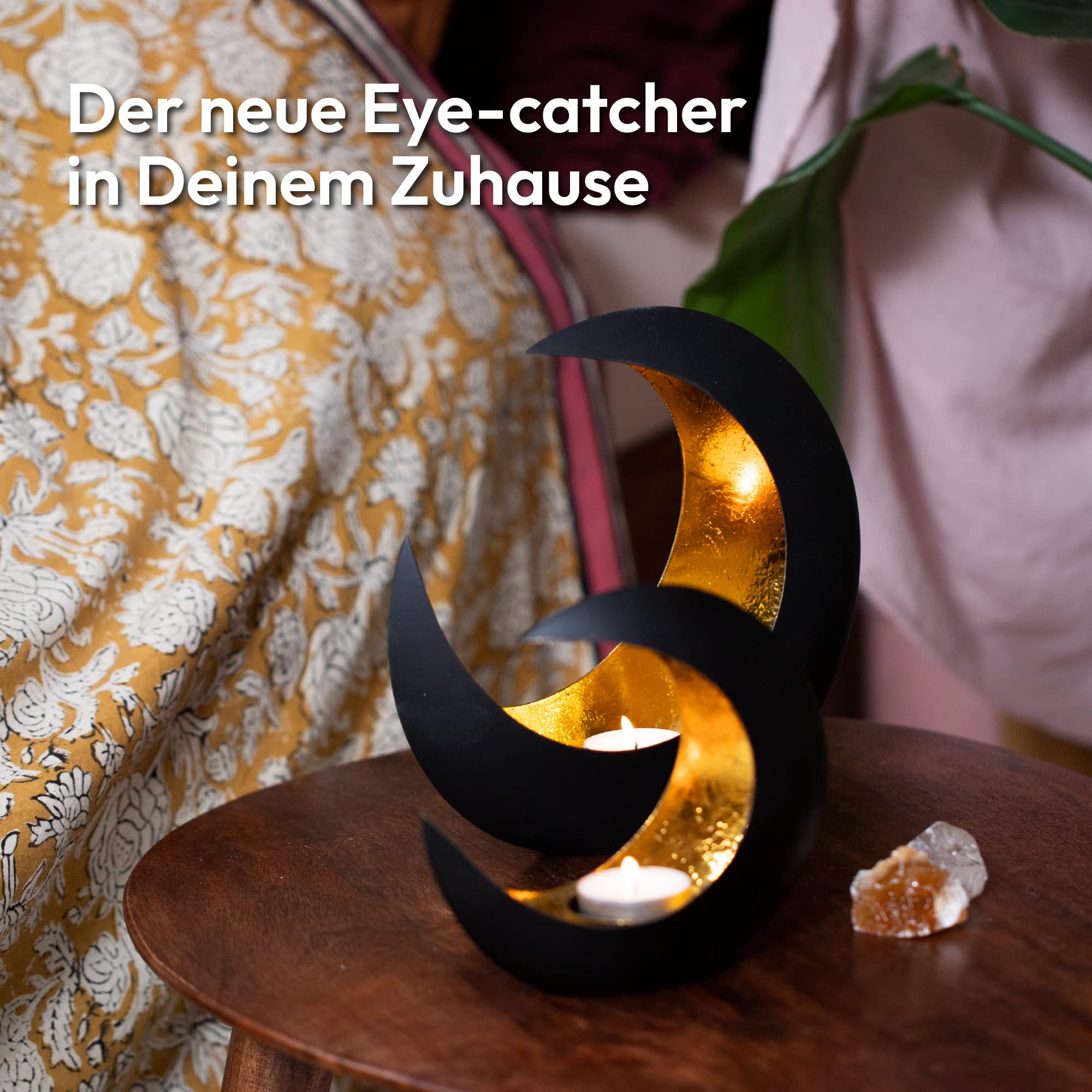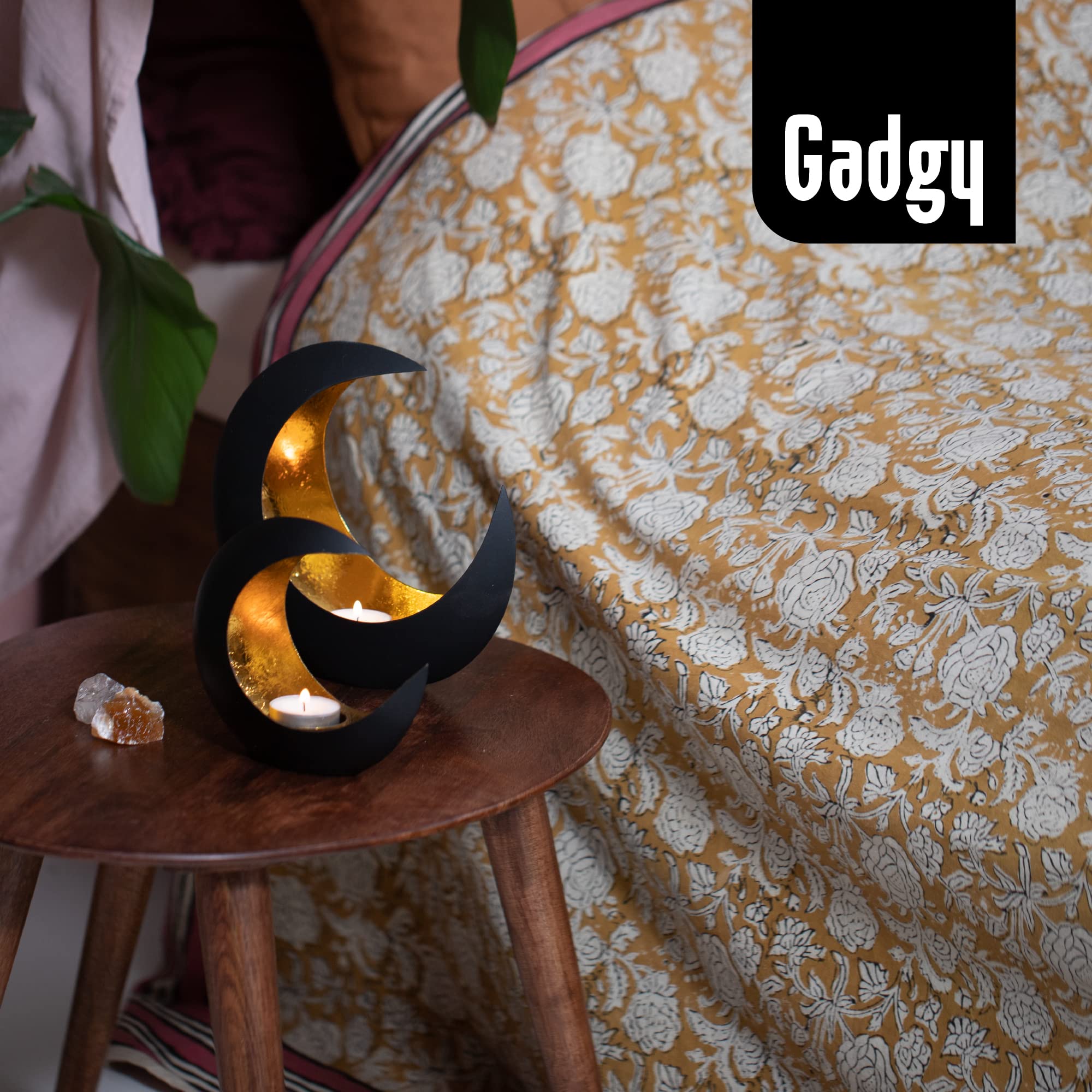 Gadgy Teelichthalter Gold Deko – 2er Set Orientalische Tischdeko Gold Schwarz – Windlichter für Wohnzimmer – Modernes Design Dekoration für Wohnung