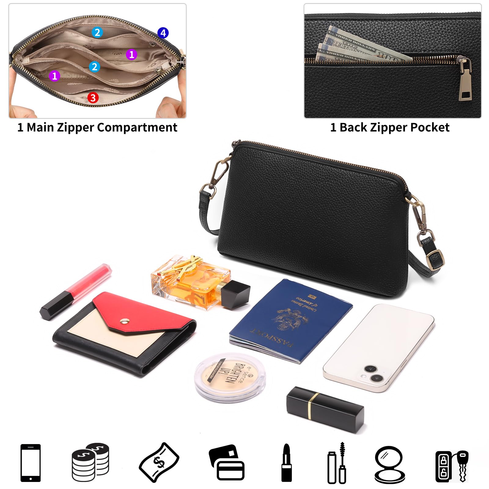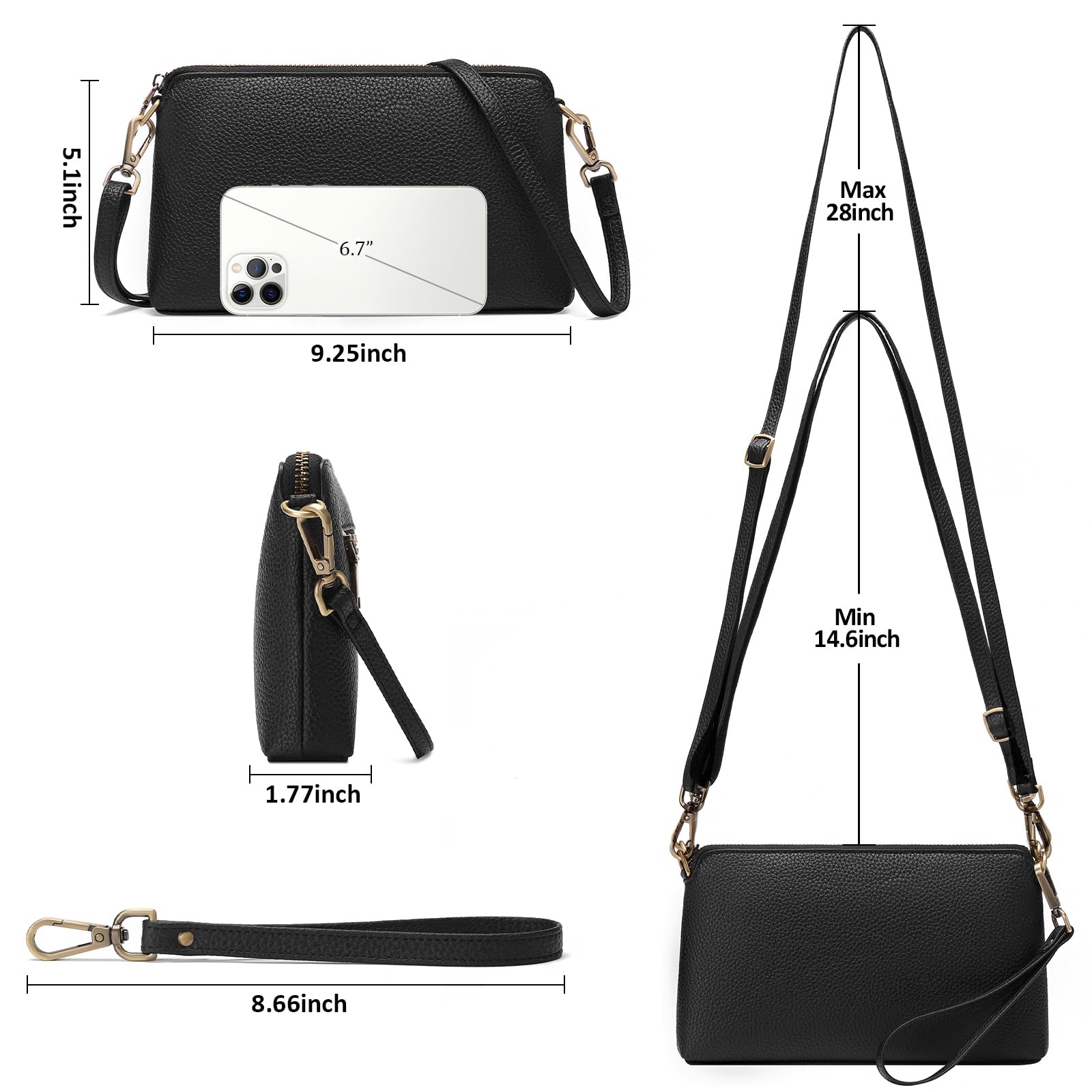 Entdecken Sie diese wunderschöne Umhängetasche für Damen der Marke GAEKEAO, ideal für Ihre Outfits im Alltag. Hergestellt aus hochwertigem veganem Leder, vereint diese Tasche Eleganz und Haltbarkeit, ohne unangenehmen Geruch. Mit seinen kompakten Abmessungen von 22,5 cm Länge und 14,9 cm Höhe und 1,77 cm Dicke ist sie leicht und funktional. Sie verfügt über zwei Hauptfächer, zwei Innentaschen mit Reissverschluss, eine Innentasche mit Schlitz und eine hintere Reissverschlusstasche und bietet praktischen Stauraum für Ihre persönlichen Gegenstände. Der verstellbare und abnehmbare Schultergurt ermöglicht es Ihnen, es auf verschiedene Arten zu tragen, je nach Ihren Vorlieben. Diese Tasche ist auch mit einem RFID-Schutz ausgestattet, um Ihre Bankkarten zu sichern. Perfekt für den täglichen Gebrauch oder auf Reisen, sie ist in Schwarz erhältlich und ein ideales Geschenk für Ihre Lieben. GAEKEAO bietet freundlichen und reaktionsschnellen Kundenservice, um alle Ihre Fragen zu beantworten.