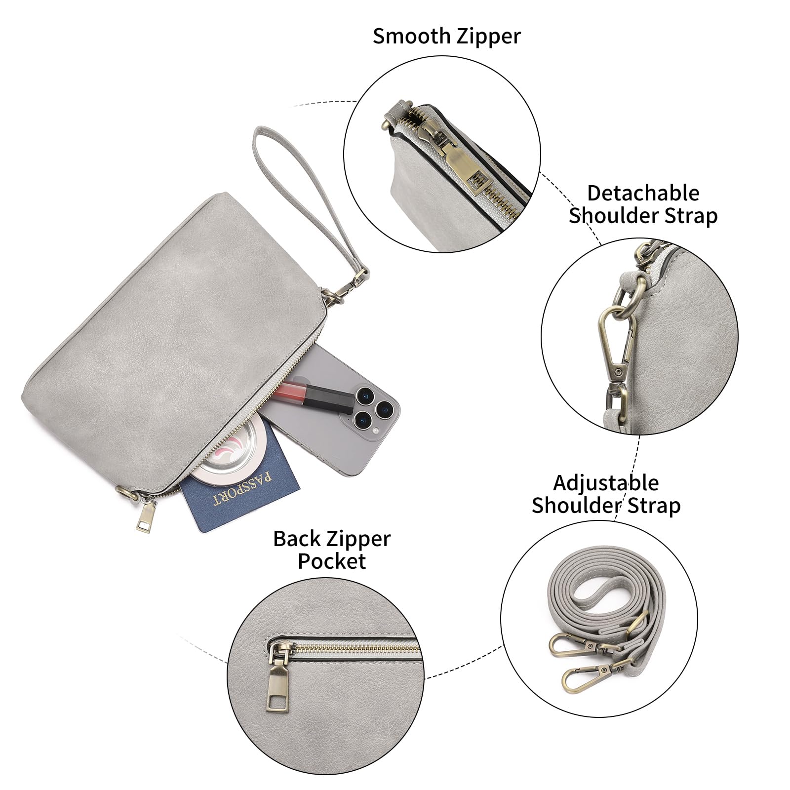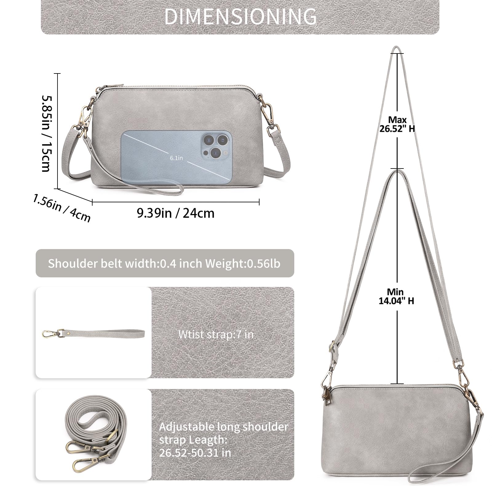 - Leicht und funktional: Diese stilvolle kleine Umhängetasche misst 9,25 "L x 5,51" H x 1,77 " B. Gewicht: 0,57 lbs. Entworfen mit einem verstellbaren langen Schultergurt (13 "min bis 24" max in Falllänge) und einem abnehmbaren Armbandriemen, kann diese Umhängetasche als Diagonale Tasche, Crossbody Bag Damen, Handtasche Damen umhängetasche, Geldbörse mit mehreren Taschen oder Clutch