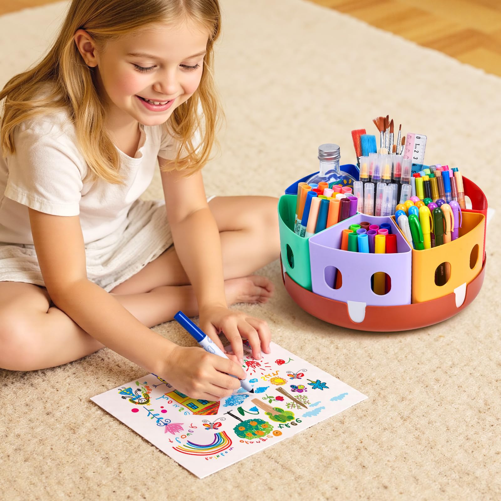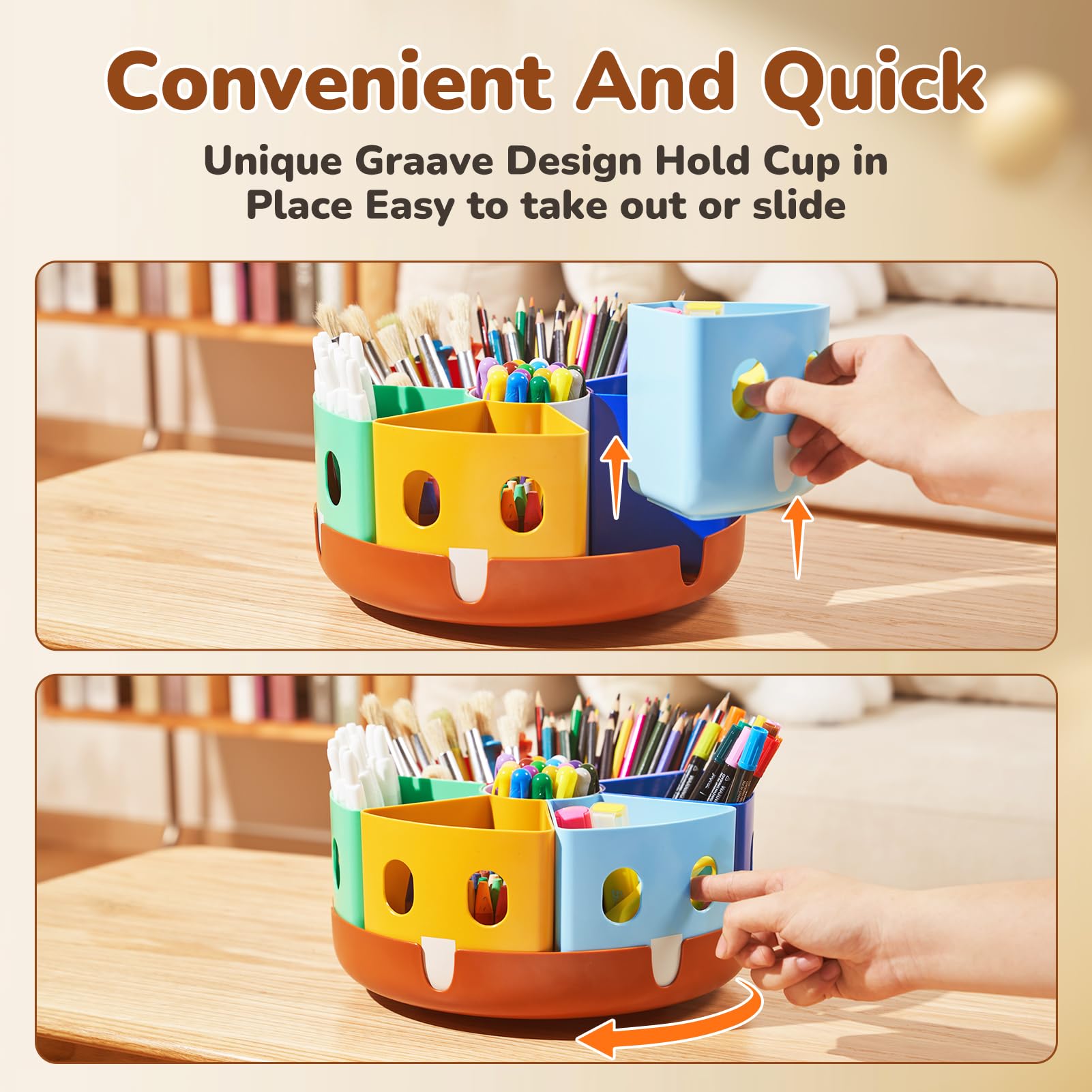 GAMENOTE Rotierende Stiftehalter Schreibtisch Organizer - XXL Durchmesser 28cm Kinder Behälter zum Aufräumen und Aufbewahren,Drehbare Ablage für Bürobedarf Schulbedarf liefert Handwerk,12,7cm Höhe