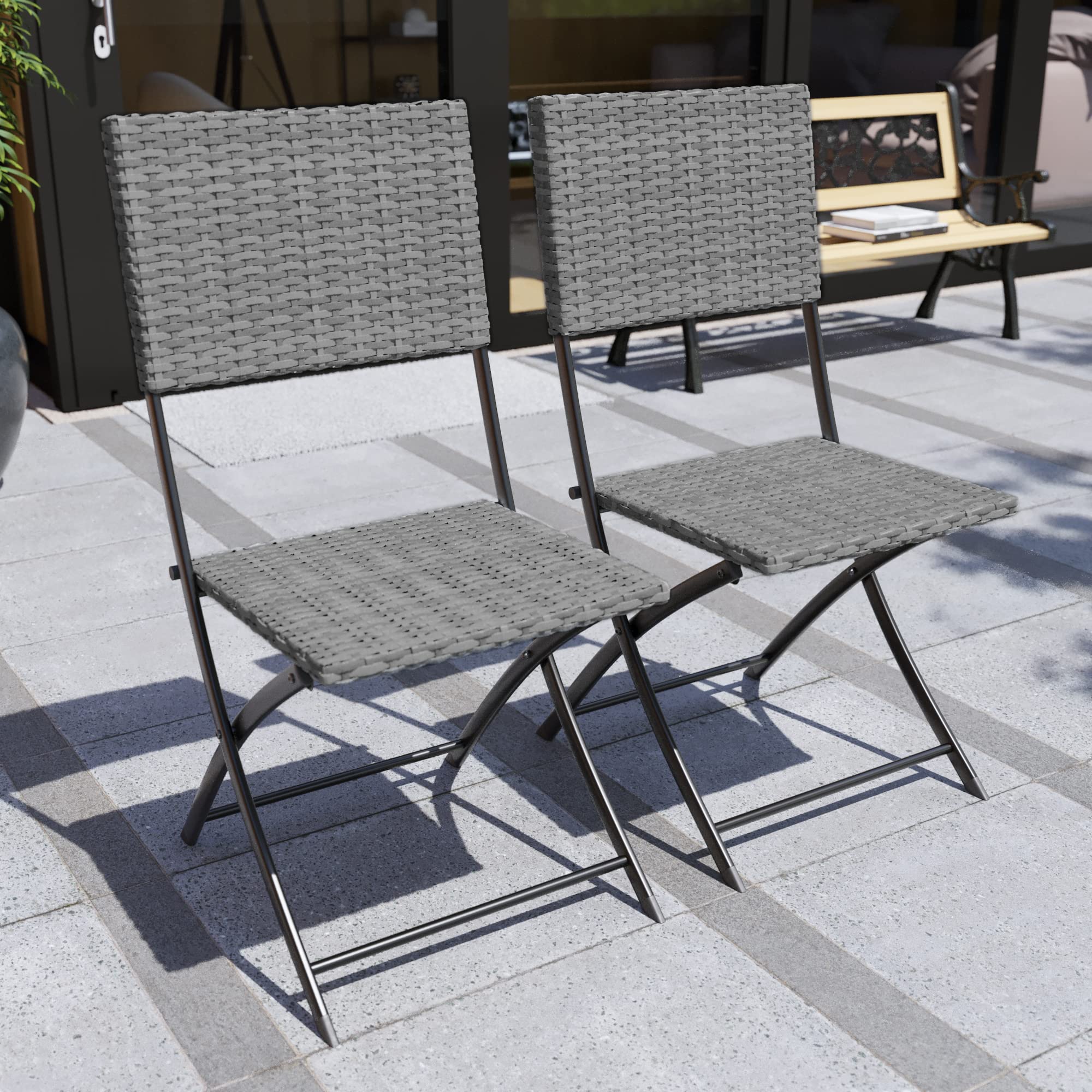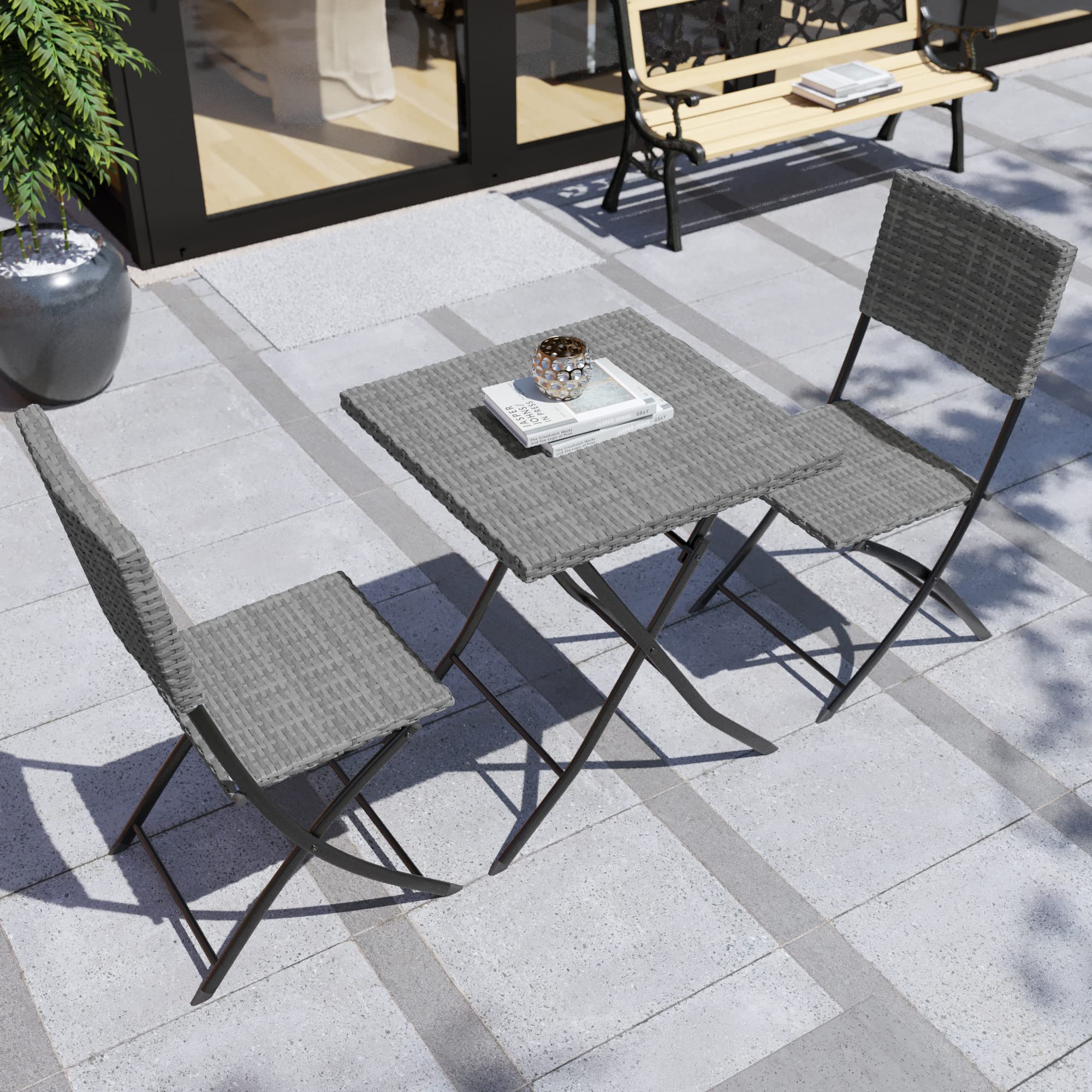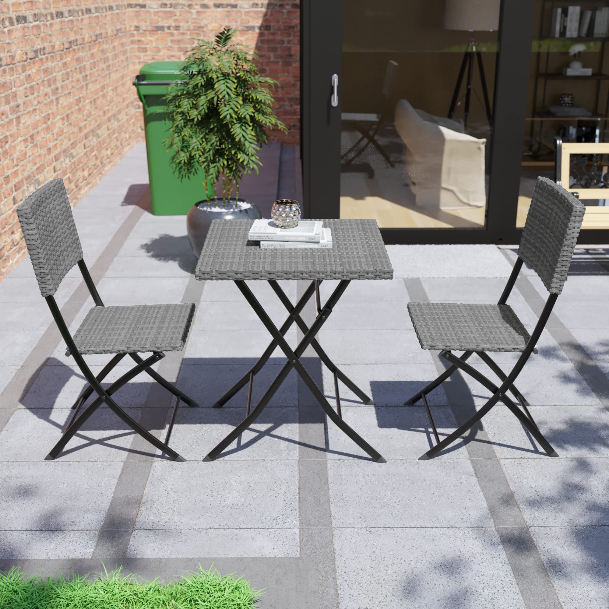 Garden Vida Capri 2-Sitzer Rattan-Bistro-Set für Garten, Terrasse, Balkon, 3-teilig (grau)