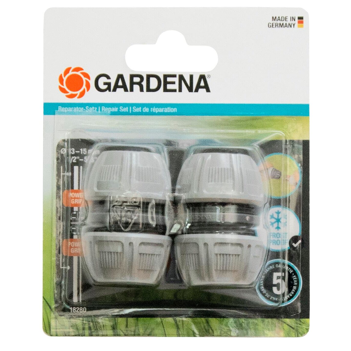 Gardena Reparator-Satz 13 mm (1/2 Zoll) und 15 mm (5/8 Zoll): Schlauchreparatur einfach ohne Werkzeug, Power Grip, speziell geformte Klemmmutter (18280-20)