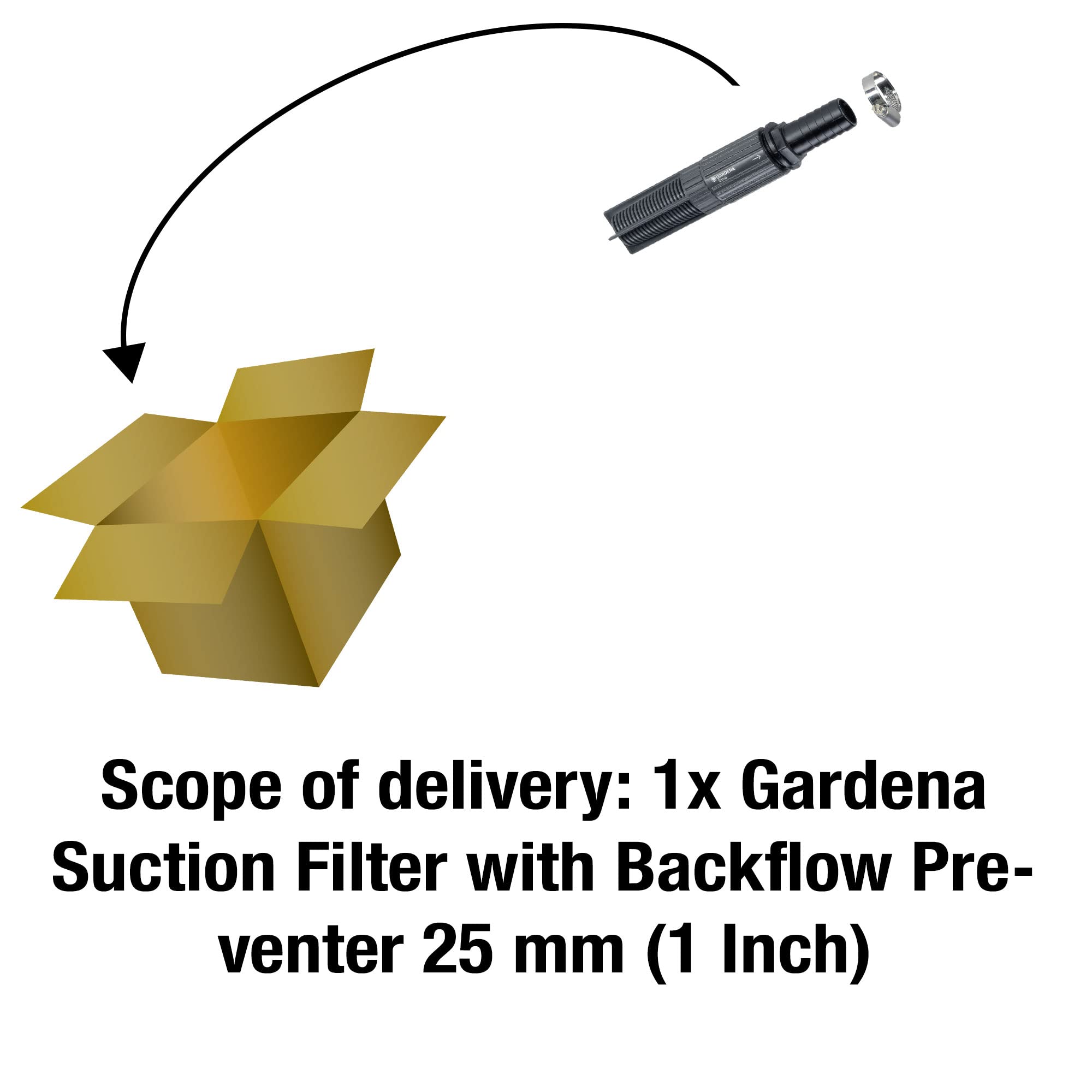 Gardena Saugfilter mit Rückflussstopp, 25 mm (1 Zoll) – Ideales Zubehör für SaugschläucheSchützen Sie Ihre Gartenpumpe – sie dankt es Ihnen mit einer langen Lebensdauer. Einfach den Gardena Saugfilter mit der Schlauchklemme an den Ansaugschlauch anschliessen und schon geht’s los. Egal ob Regen- oder Schmutzwasser – der Filter schützt zuverlässig vor dem Eindringen von Schmutzpartikeln in die Pumpe und bewahrt sie vor Beschädigungen.Effektiver Pumpen mit RückflussstoppDer Filter verfügt zudem über einen Rückflussstopp, der die Wiederansaugzeit beim Pumpen erheblich verkürzt. Damit pumpen Sie in Windeseile Regenfässer, Brunnen oder Tanks leer.Gardena – Seit 40 Jahren vertrauen Haus-und Gartenbesitzer Original Gardena Pumpsystemen!
