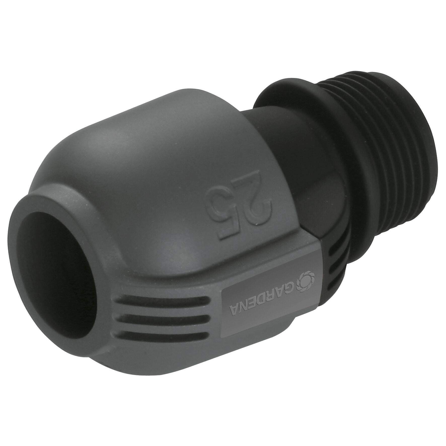 Gardena Sprinklersystem Verbinder 25 mm x 1 Zoll-Aussengewinde - Einfacher und sicherer AnschlussDer Gardena Verbinder 25 mm x 1 Zoll-Aussengewinde ist Teil des intelligenten Gardena Sprinklersystems und wird zum einfachen und sicheren Rohranschluss an die Gardena Bewässerungsventile (Art.-Nr. 1278-20 bzw. 1251-20) verwendet. Des Weiteren kann mit diesem Verbinder auch ein Direktanschluss der Beregnungsanlage an die Hausinstallation durchgeführt werden.Komfortable Installation durch patentierte VerbindungstechnikDie patentierte Gardena „Quick&Easy“ Verbindungstechnik ermöglicht eine schnelle und flexible Installation der Anlage auf jeglichen Rasenflächen. Durch einfaches Drehen der Verschraubung um 140° kann das L-Stück montiert oder demontiert werden. Wasserdicht und ganzjährig einsetzbar machen den Verbinder die selbstdichtende Gewindeverbindung.Gardena - Seit über 45 Jahren vertrauen Gartenbesitzer Original Gardena Bewässerungssystemen.