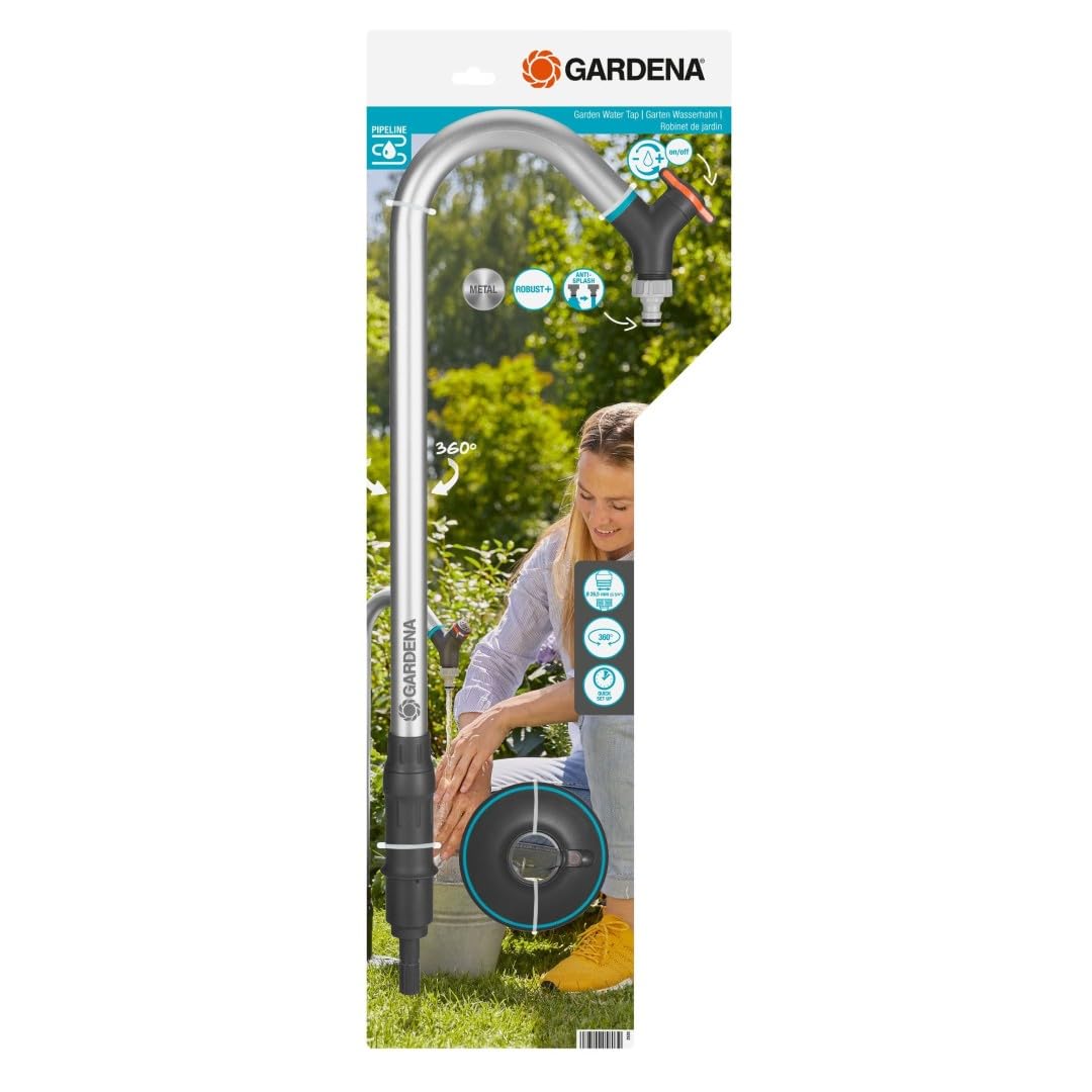 Gardena Sprinklersystem Pipeline Garten-Wasserhahn: Schwenkbarer Hahn, Anti-Splash Hahnverbinder, Regulier- und Absperrventil, Montage ohne Werkzeug (08252-20)