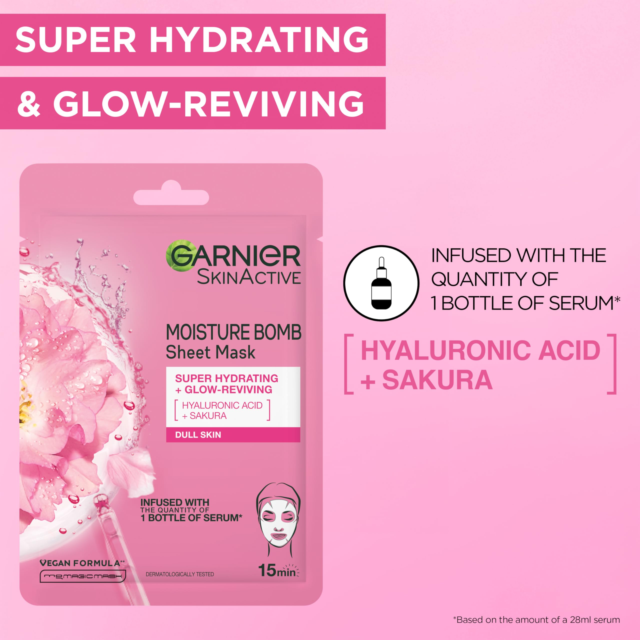 Die Garnier SkinActive feuchtigkeitsspendenden Tuchmasken wurden speziell fuer die Beduerfnisse sensibler Hautentwickelt und verbinden intensive Hydration mit einem sichtbar frischen Glow-Effekt. Die wirkungsvolle Kombination aus Vitamin C und Hyaluronsaeure hilft, die Haut tiefenwirksam mit Feuchtigkeit zu versorgen, Spannungsgefuehle zu reduzieren und den Teint ausgeglichener erscheinen zu lassen.