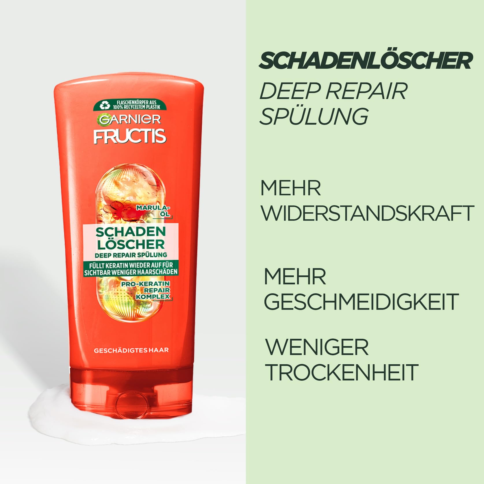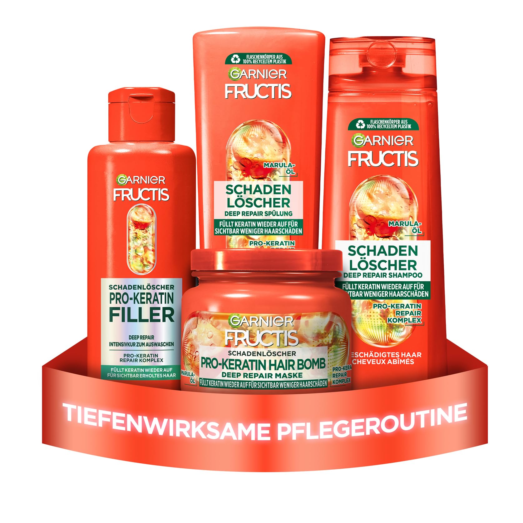 Garnier Fructis Schadenlöscher Haarpflege-Set für geschädigtes Haar, Mit Pro-Keratin & Marulaöl, Shampoo (250 ml), Spülung (200 ml), Deep Repair Haarkur (200 ml), Hair Bomb reparierende Maske (320 ml)