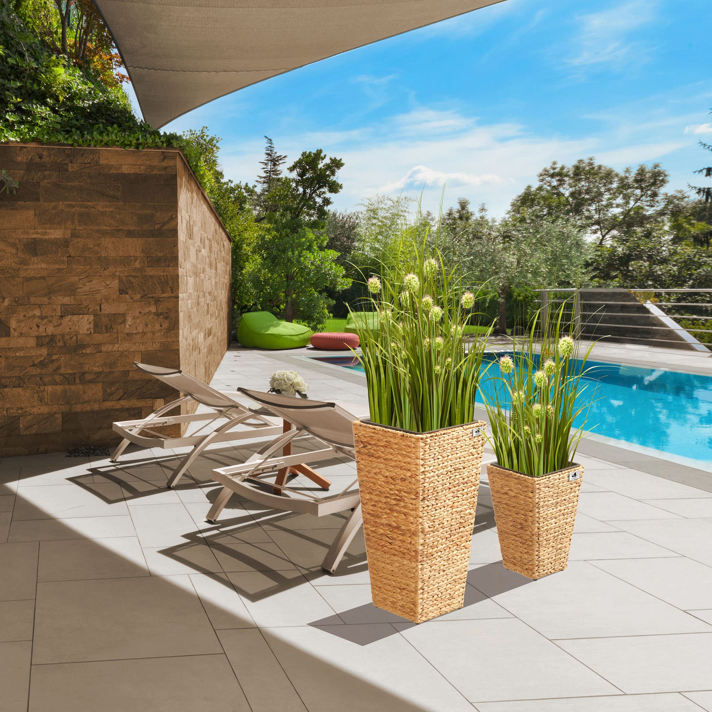 Gartenfreude mit Wasserhyazinthe 2er Set 38 x 38 x 77 cm, 28 x 28 x 43 cm, Kunststoffeinsatz, naturfarben, 4001-1010-002