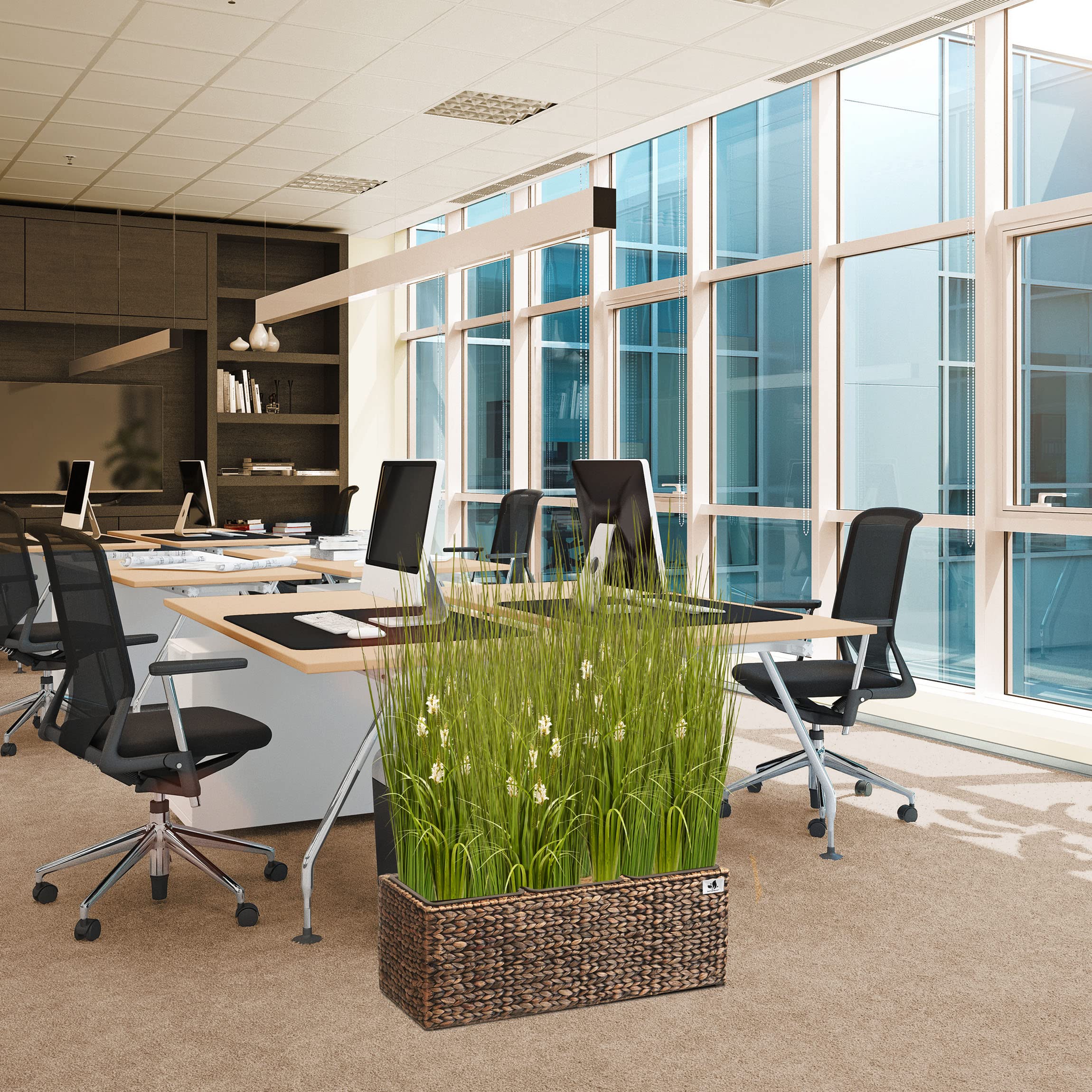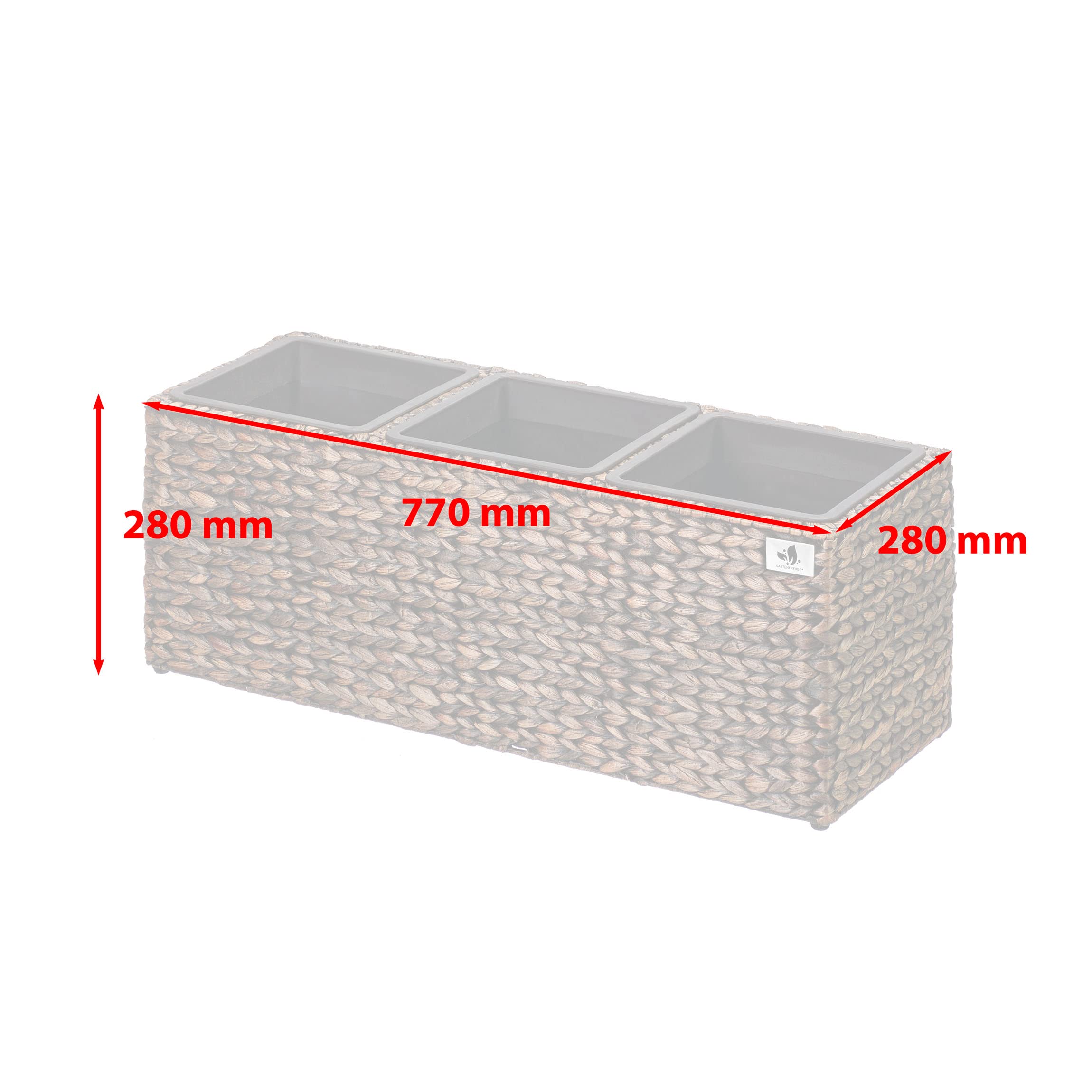 Das Gartenfreude Pflanzgefäss Wasserhyazinthe setzt dekorative Akzente im Innen- oder im geschützten Aussenbereich. Das Pflanzgefäss ist hochwertig aus geflochtener Wasserhyazinthe gefertigt, das ein natürliches und nachhaltiges Material ist und mit dem Sie ein mediterranes Gefühl in Ihre Umgebung zaubern. Der innere Rahmen besteht aus stabilem Metall. Der Kunststoffeinsatz kann bequem ausserhalb des Gefässes bepflanzt und dann eingesetzt werden und bietet mit einer Grösse von 77 x 28 x 28 cm cm ausreichend Platz. Gegenüber Einsätzen aus anderen Materialien bietet dieser den Vorteil, nicht zu rosten und absolut wasserdicht zu sein.