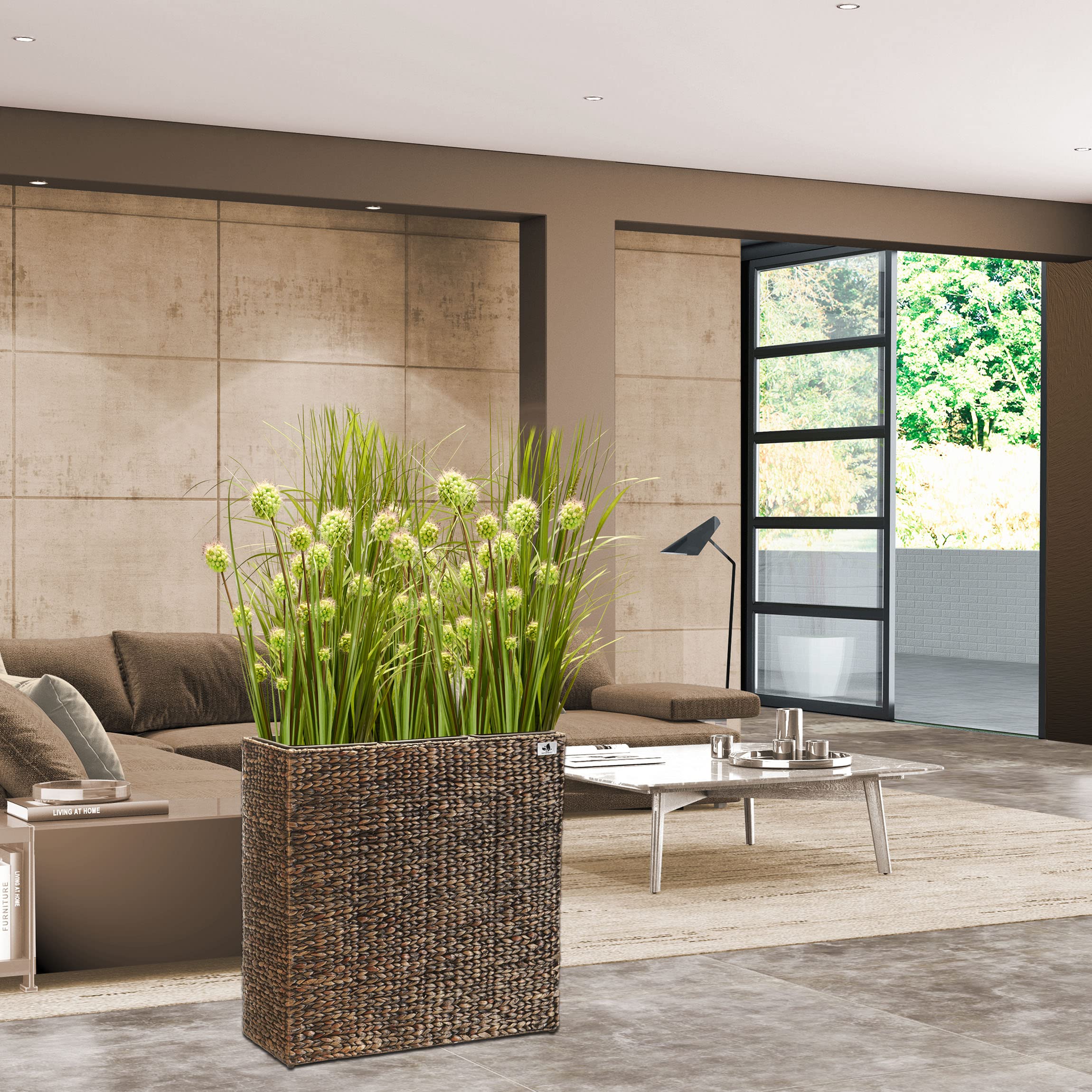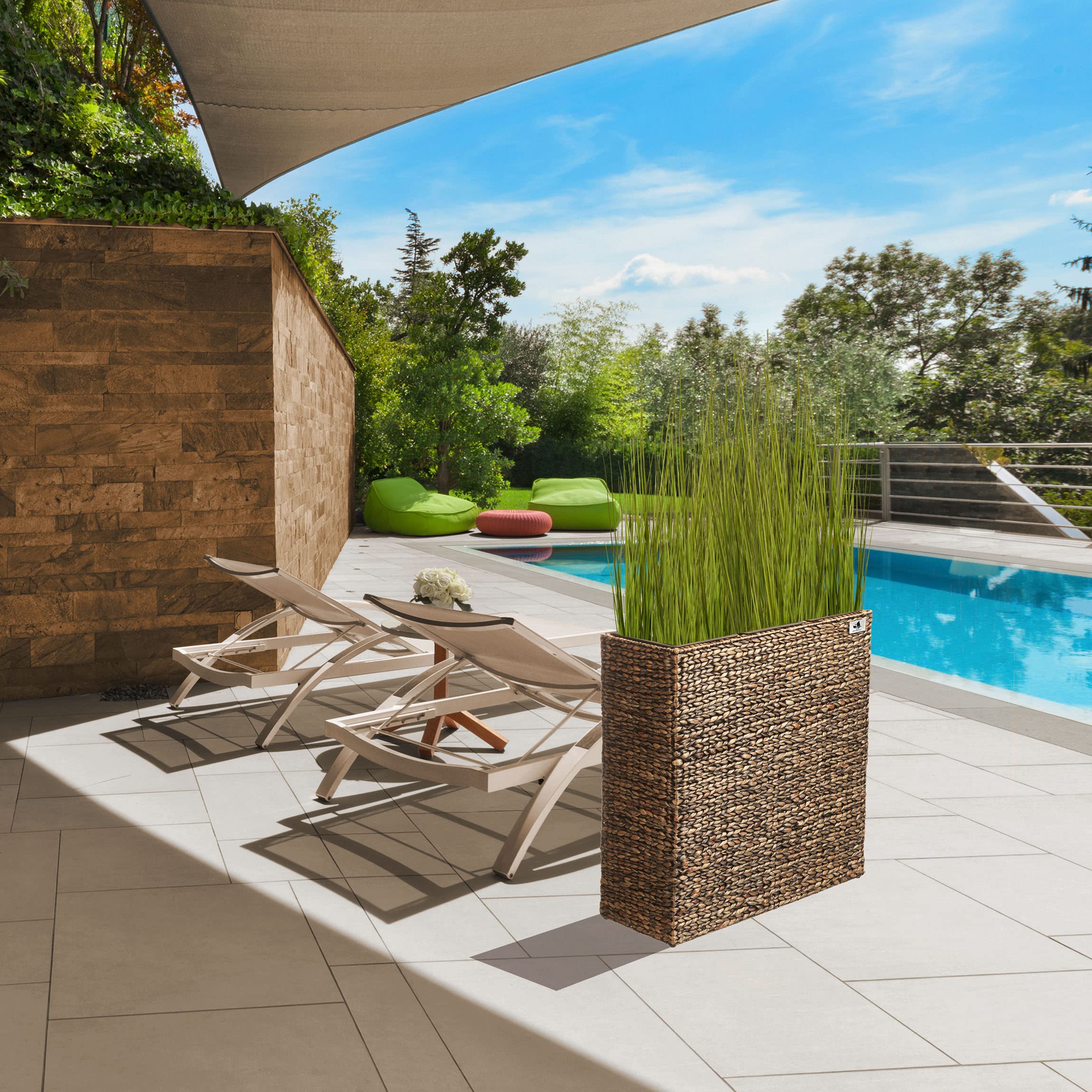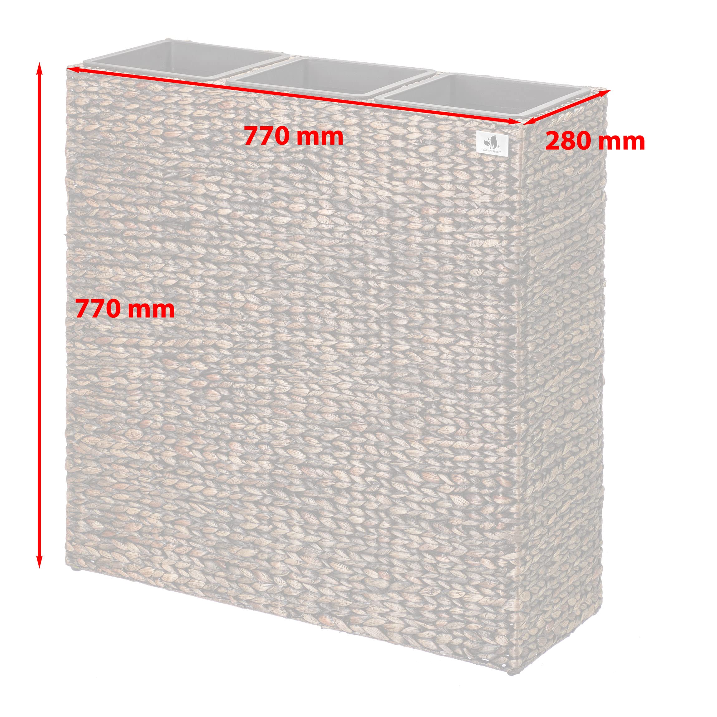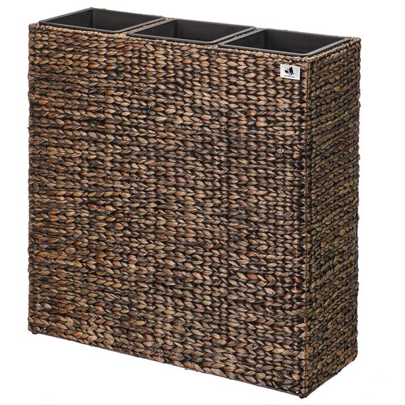 Das Gartenfreude Pflanzgefäss Wasserhyazinthe setzt dekorative Akzente im Innen- oder im geschützten Aussenbereich. Das Pflanzgefäss ist hochwertig aus geflochtener Wasserhyazinthe gefertigt, das ein natürliches und nachhaltiges Material ist und mit dem Sie ein mediterranes Gefühl in Ihre Umgebung zaubern. Der innere Rahmen besteht aus stabilem Metall. Der Kunststoffeinsatz kann bequem ausserhalb des Gefässes bepflanzt und dann eingesetzt werden und bietet mit einer Grösse von 77 x 28 x 77 cm cm cm ausreichend Platz. Gegenüber Einsätzen aus anderen Materialien bietet dieser den Vorteil, nicht zu rosten und absolut wasserdicht zu sein.