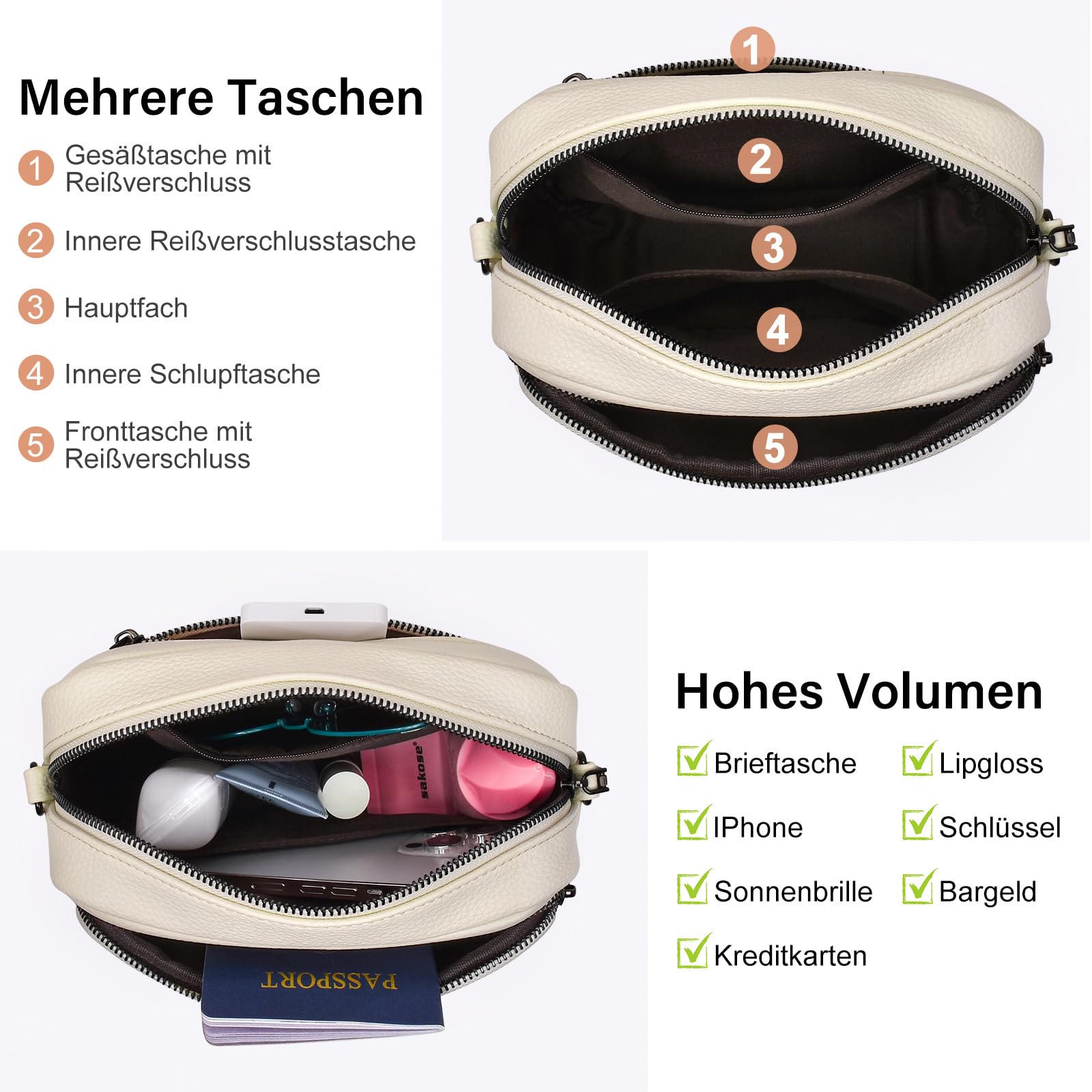 GASSDA Umhängetasche Damen Kleine Handtasche PU Leder Crossbody Bag Moderne Taschen mit Abnehmbarem Schultergurt
