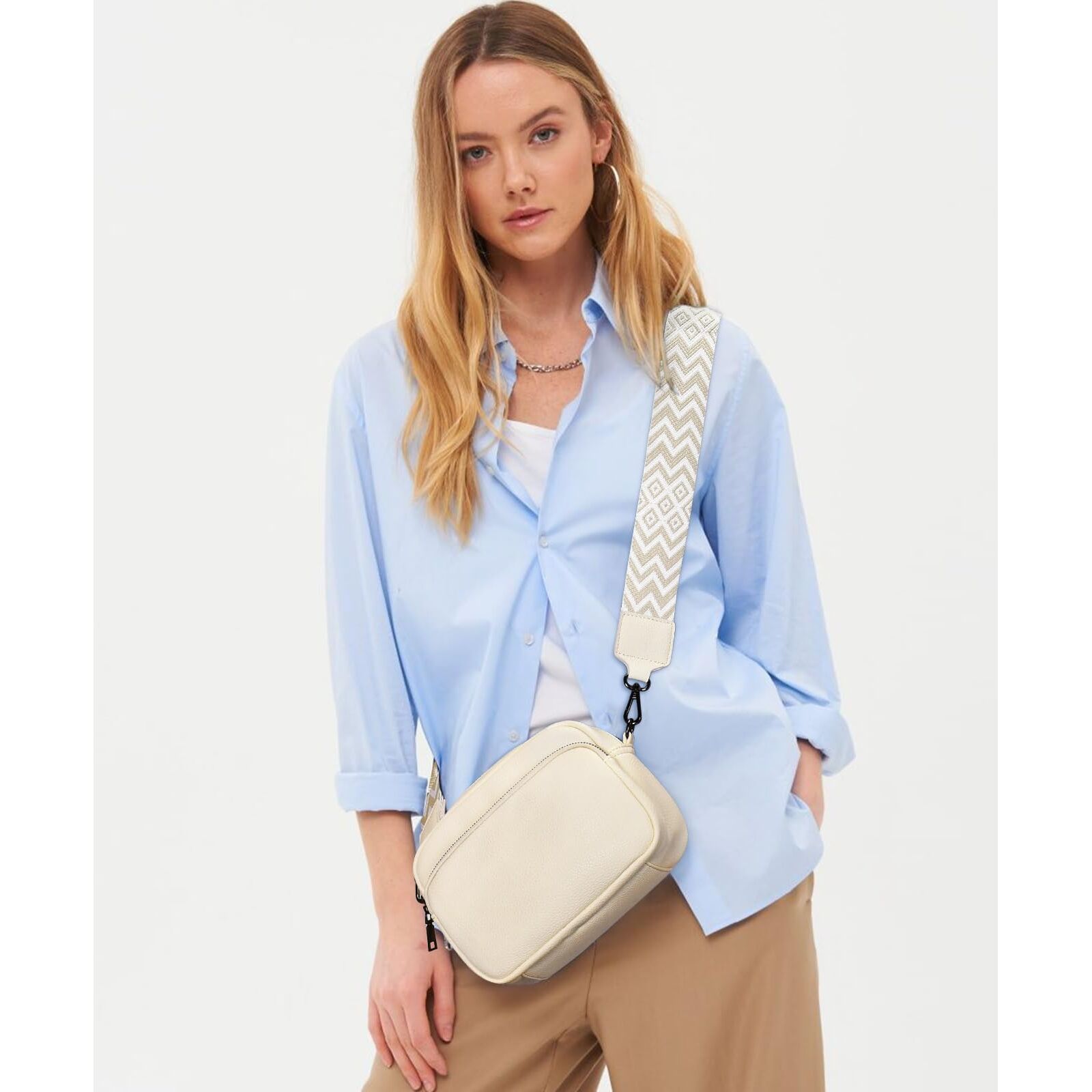 Crossbody Bag Damen, Kleine Umhängetasche Damen Breiter Gurt 22cm x 8cm x 16cm PU Leder