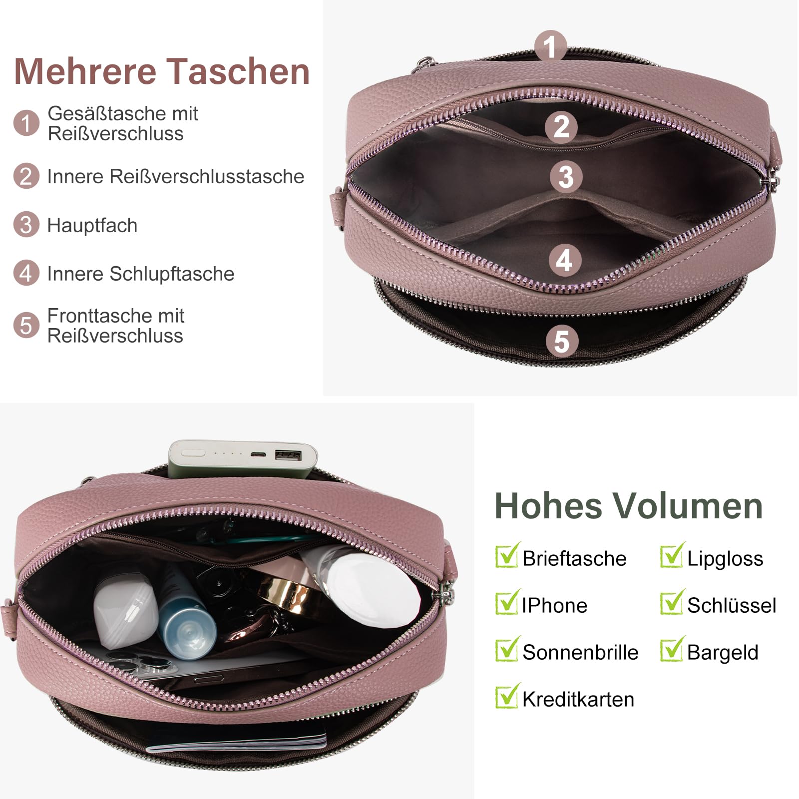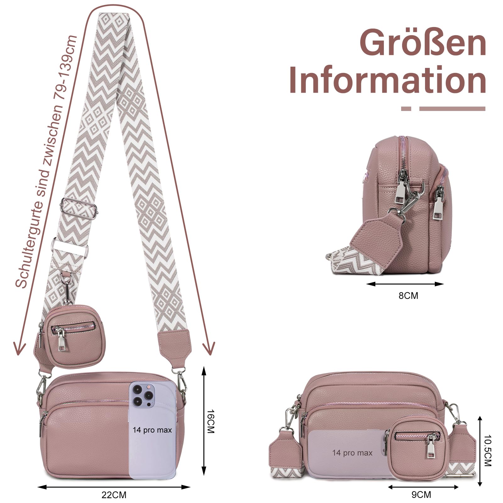 GASSDA Crossbody Bag Damen, Kleine Umhängetasche Damen Breiter Gurt PU Leder Handtasche mit Abnehmbarem Schultergurt