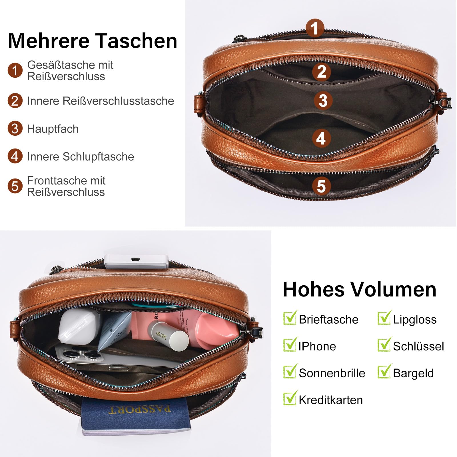GASSDA Umhängetasche Damen Kleine Handtasche Damen PU Leder Crossbody Bag Moderne Taschen mit Abnehmbarem Schultergurt
