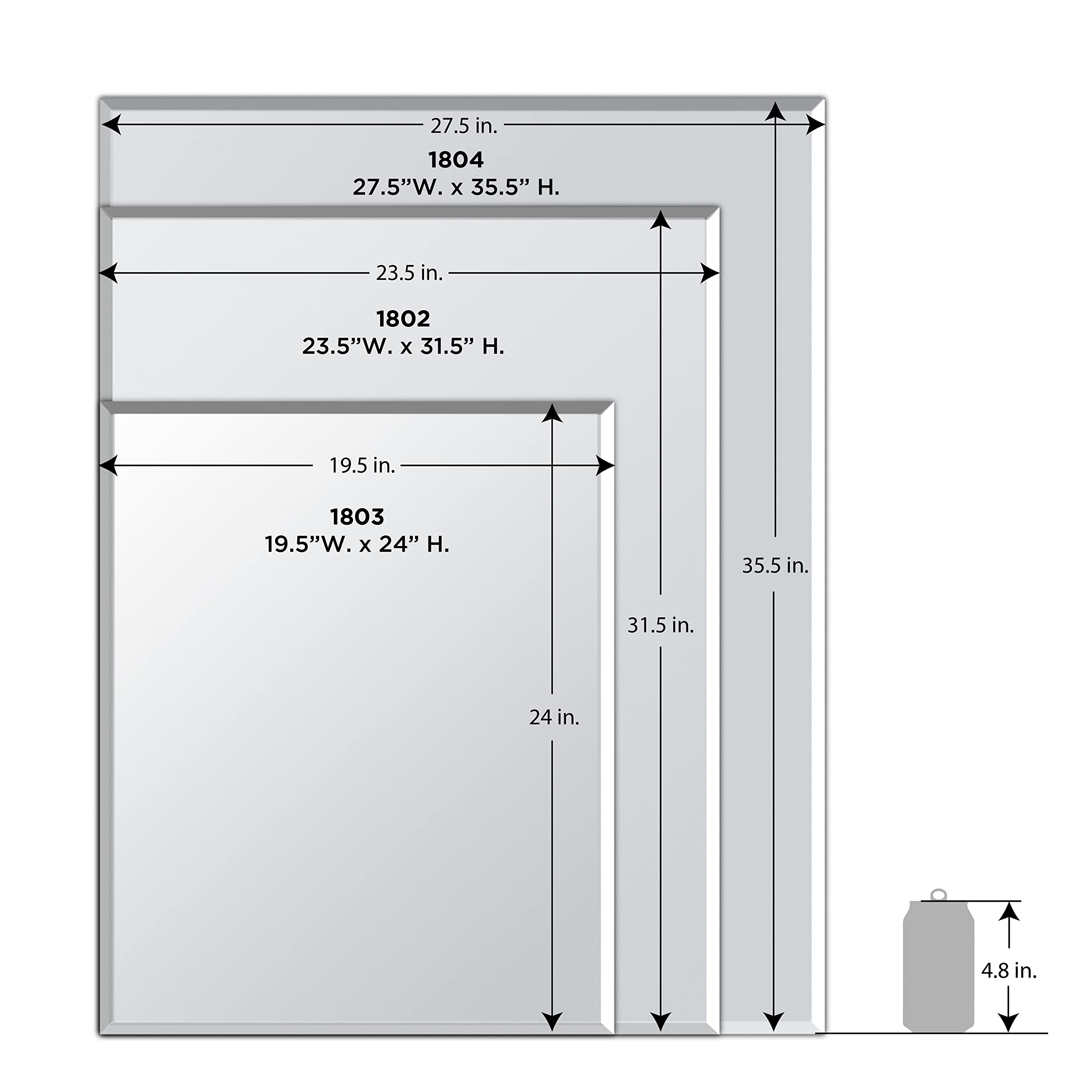 Gatco 1803 Spiegel, rechteckig, Rahmenlos, normal, bündig montiert, transparent