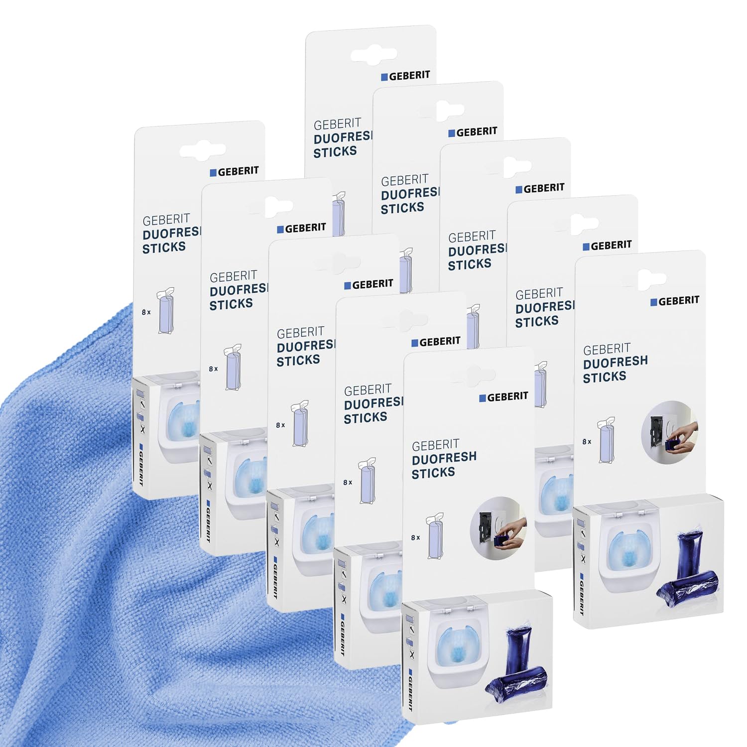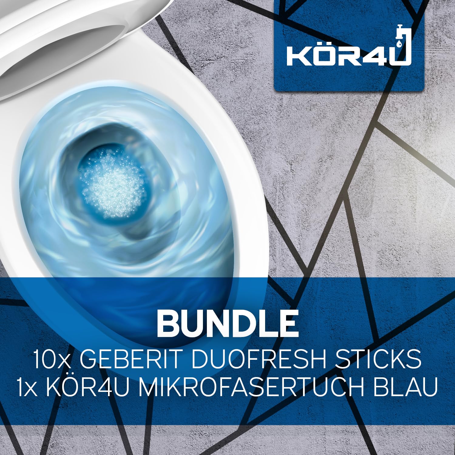 Geberit Sticks 244.600.00.1, 10er Set a 8 Sticks, für Duofresh Einwurfschacht, Wasserkastensticks - inklusive Mikrofasertuch by kör4u - Made in Germany