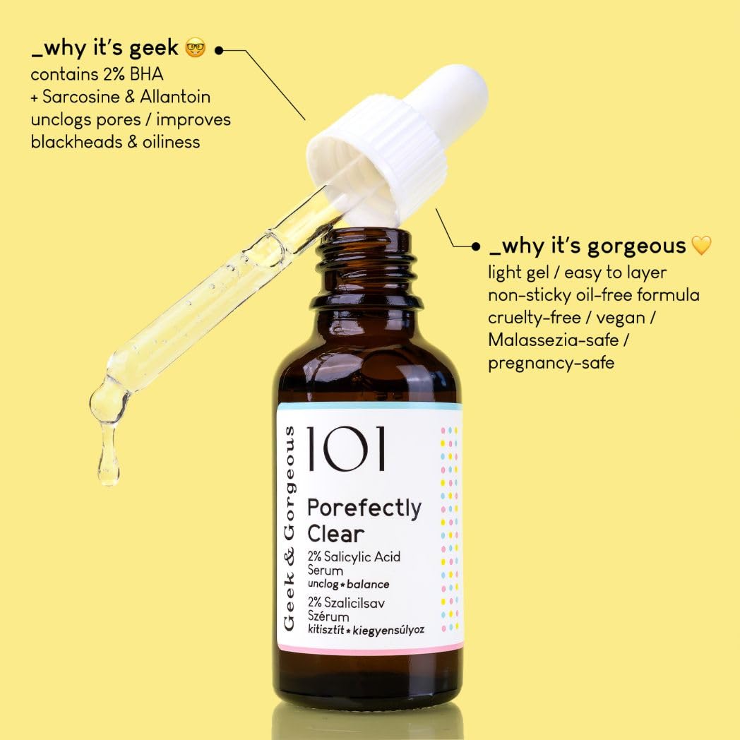 Geek & Gorgeous POREfectly CLEAR - Porenverfeinerndes Serum mit 2% Salicylsäure und Sarkosin - für klarere Haut - für Mischhaut und fettige Haut - 30 ml