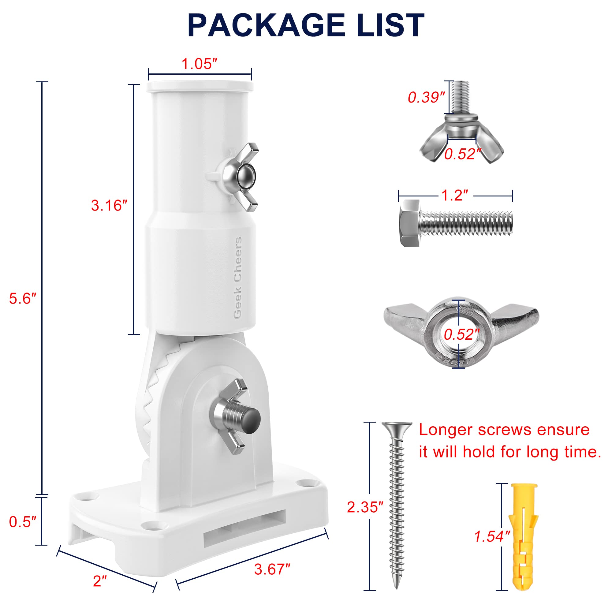Geek Cheers Fahnenmast-Halterung, mehrere Positionen, Flaggenhalterung, strapazierfähig, T304 Edelstahl-Fahnenmasthalterung für Haus und Kombi, robust, rostfrei, verstellbare Winkelhalterung, Weiss