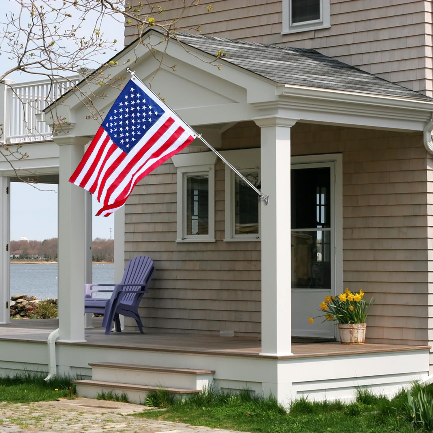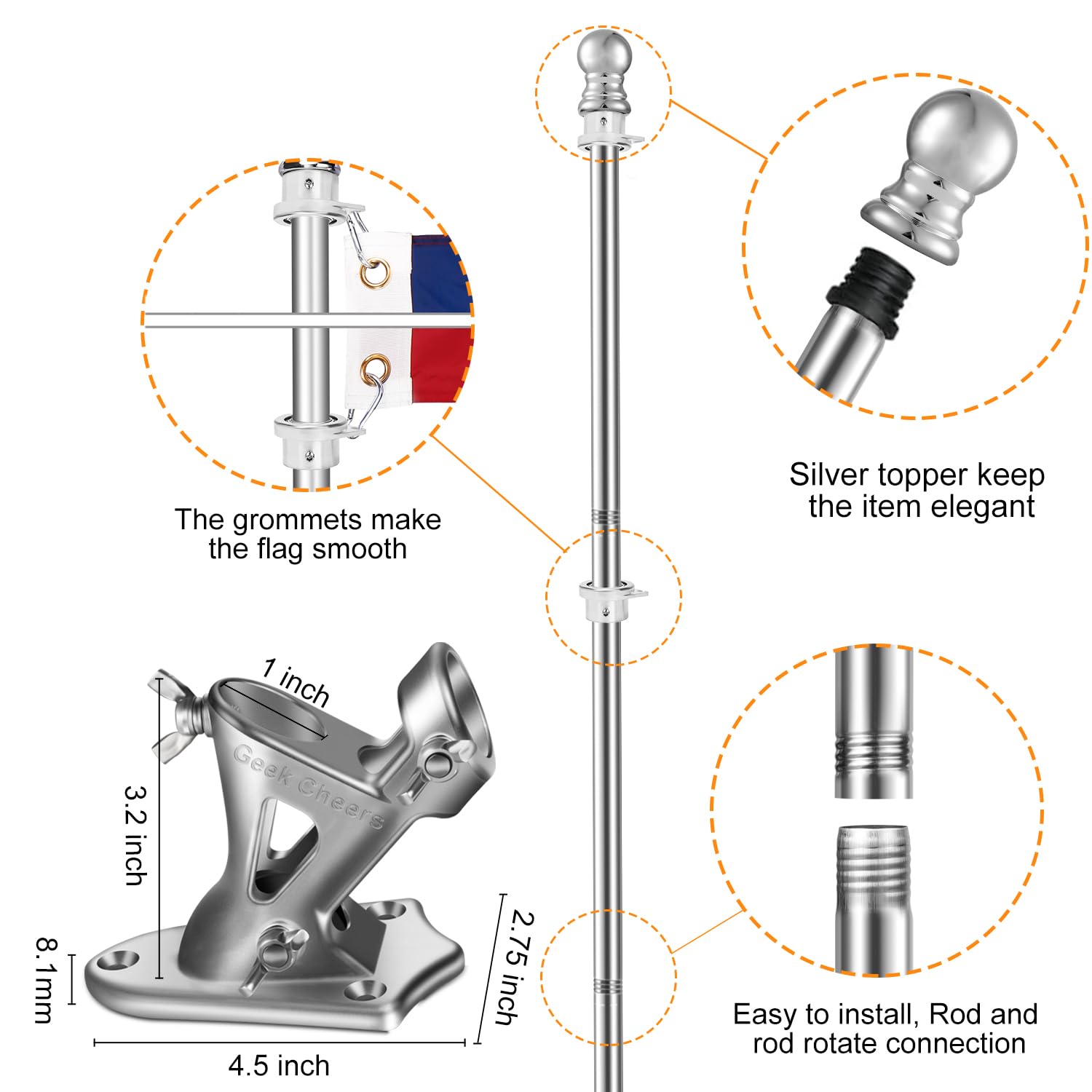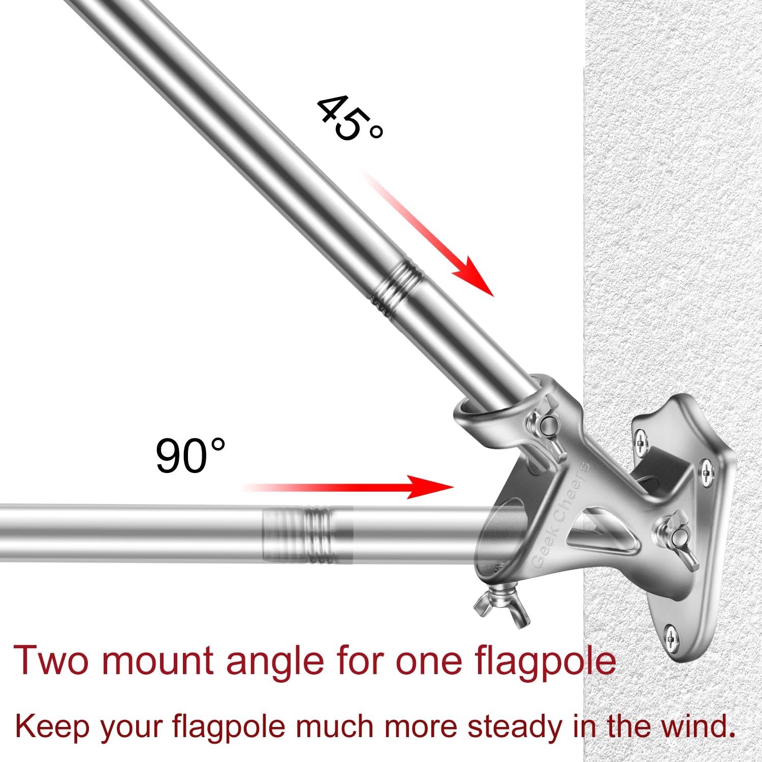 Geek Cheers Robuster Flaggenmast aus Edelstahl mit Flaggenhalterung, 2 Positionen für 2,5 cm Fahnenmast zur Wandmontage, für Haus, rostfreie Fahnenmasthalterung, silberfarben mit Bohraufsatz, 1 inch