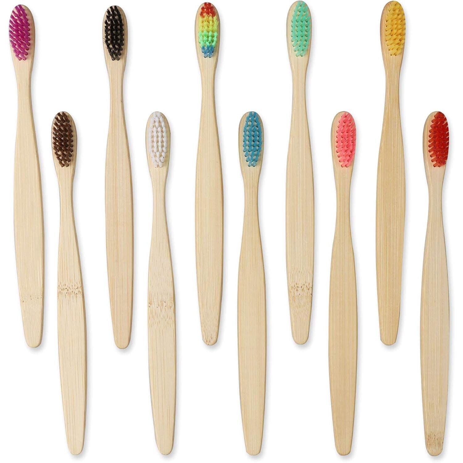 GeekerChip Zahnbürste aus Bambus, 10 Farben, weiche Naturborsten, umweltfreundlich und 100% biologisch abbaubar