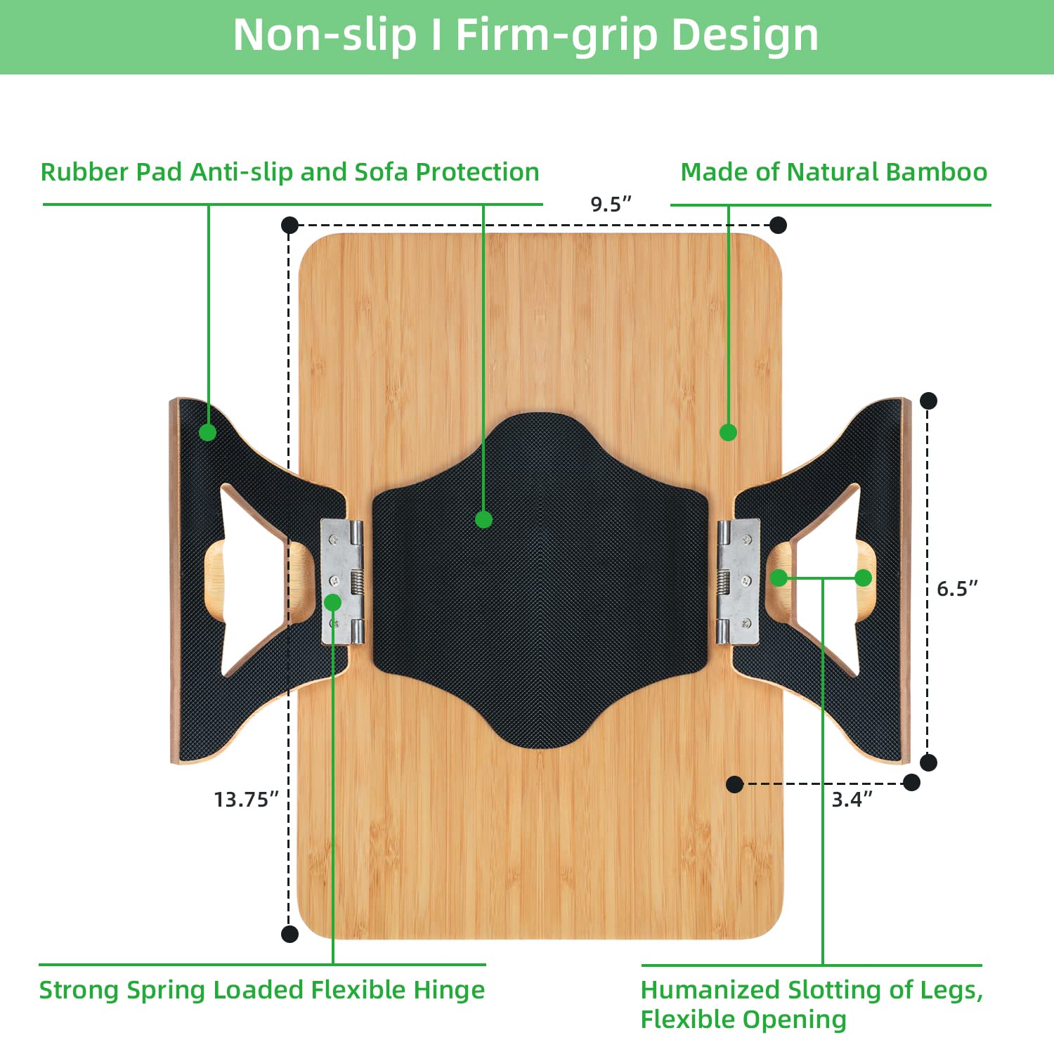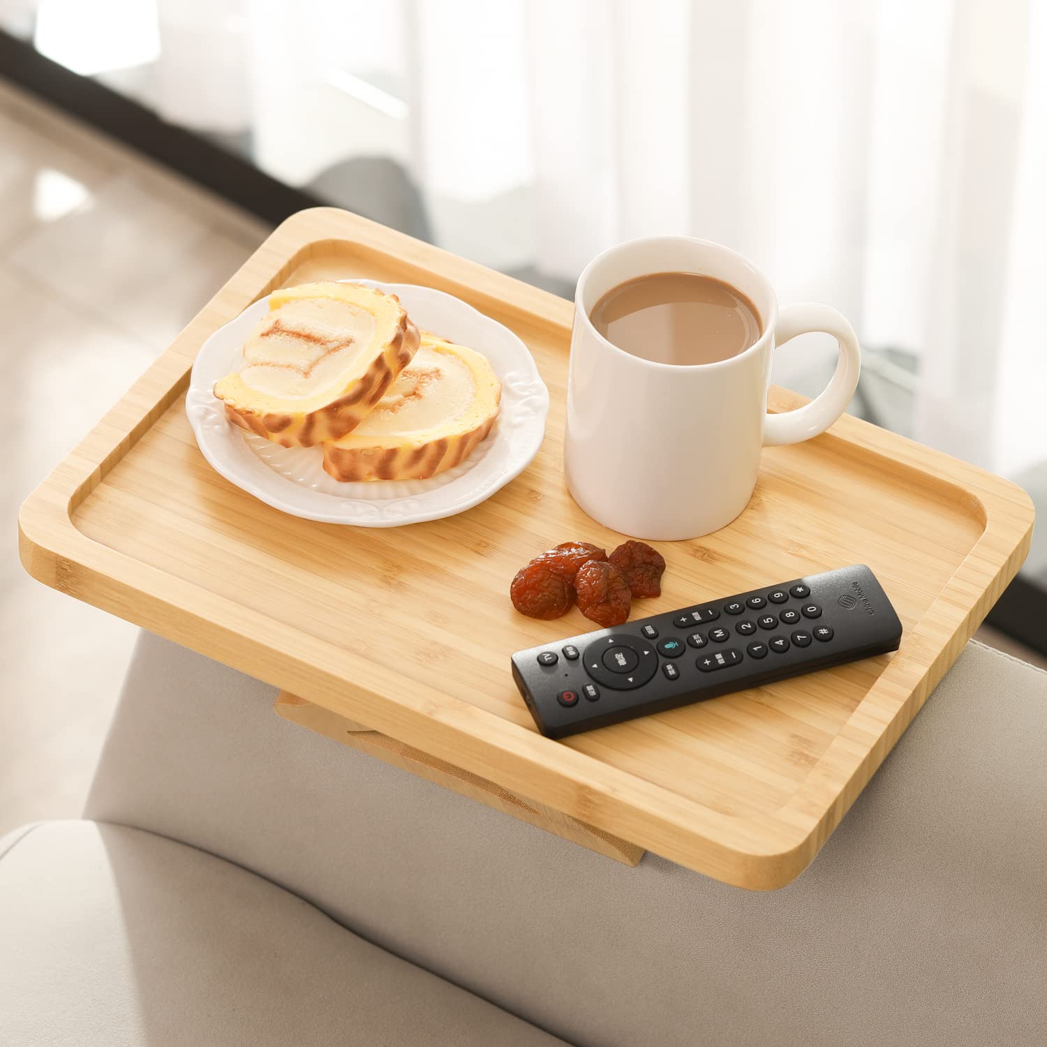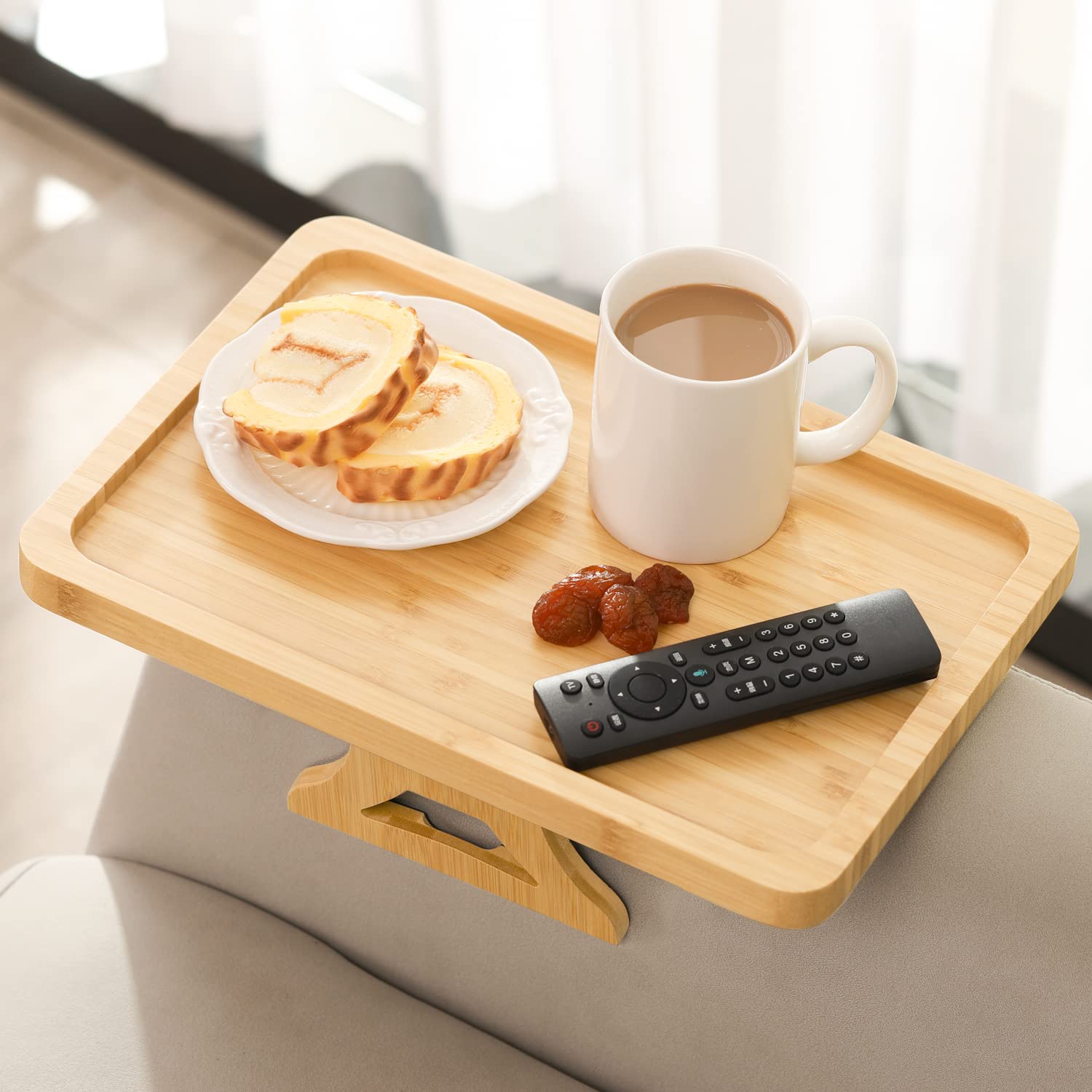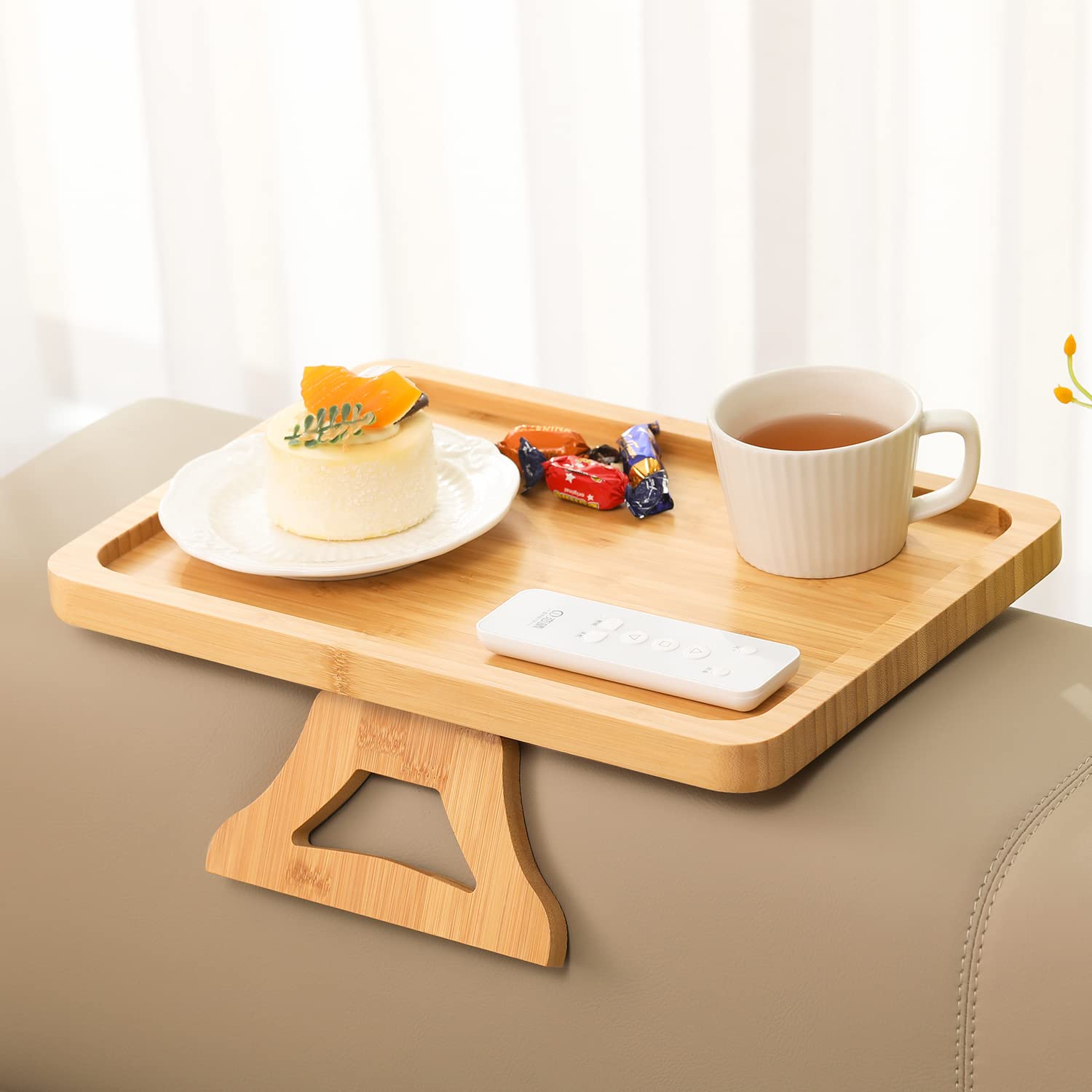 GEHE Bamboo Couch Arm Table, Stable Sofa Arm Tray for Wide Couches Arm, Foldable Sofa Armrest Tray for Food/Drinks/Snacks/Phone/Remote Control, Sofa Armrest Clip Table for Small Spaces
