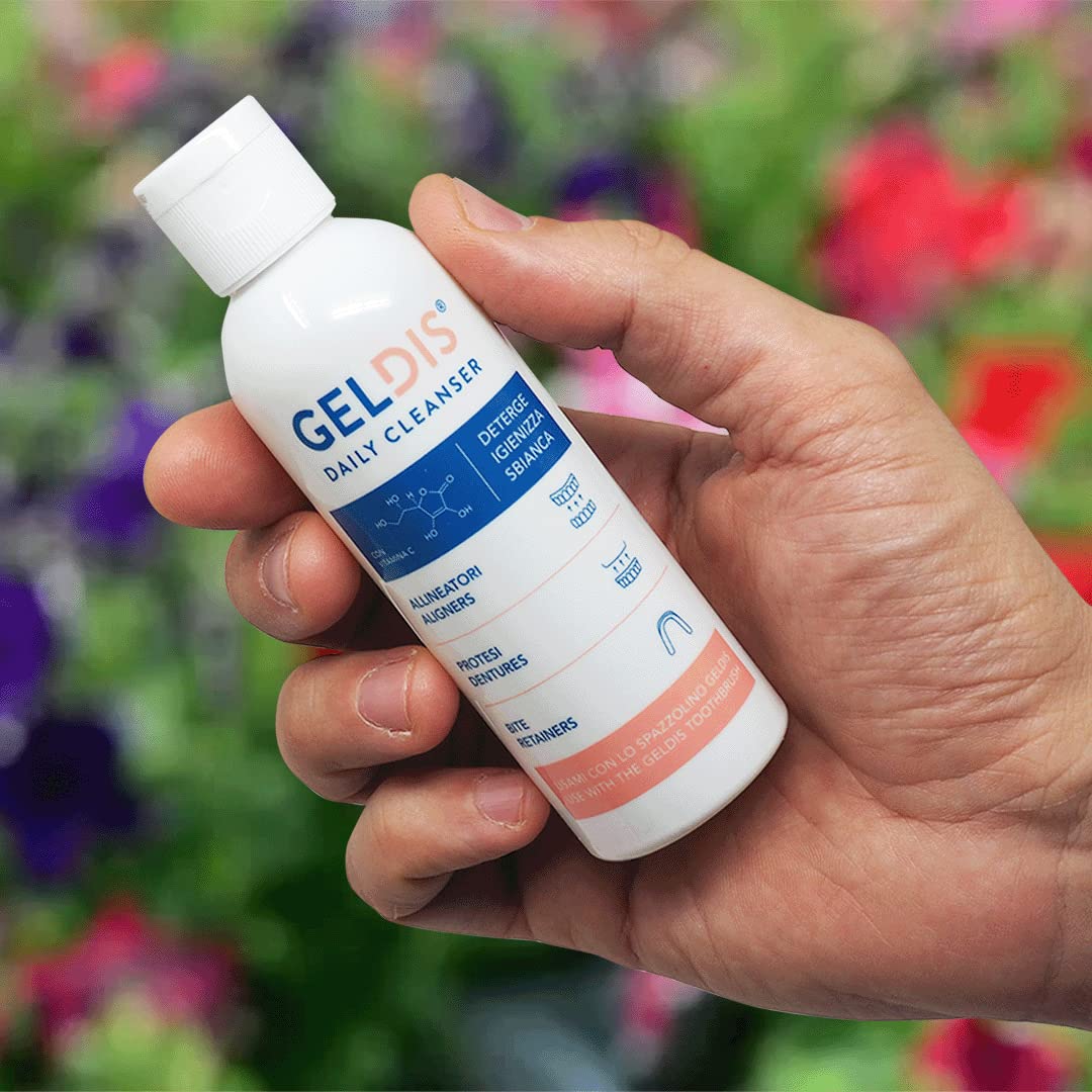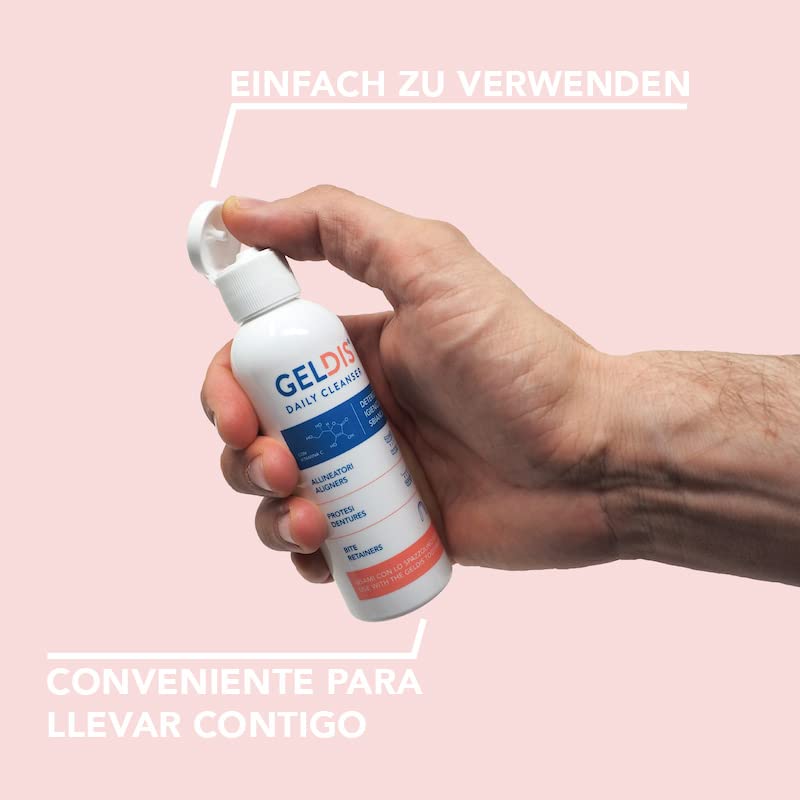 GELDIS Daily Cleanser - Zahnspangenreiniger, Zahnprothesen Reiniger, Zahnschiene Reinigung, Täglicher Reinigungsgel für die Hygiene von - Transparenten Masken, Zahnspangen (100 ml)