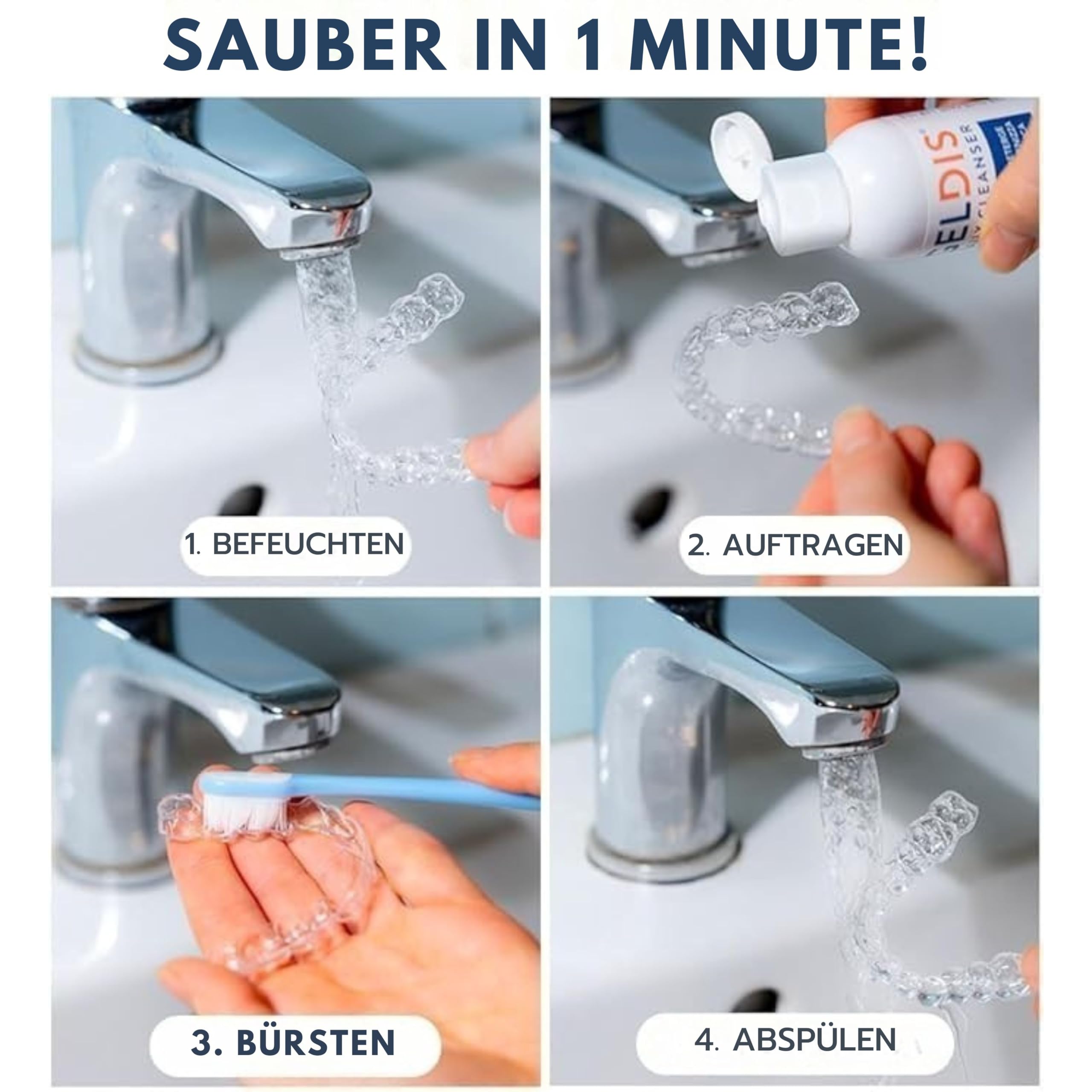 • ✅Verwendung: Zahnprothesen bürste, giessen sie zwei tropfen Geldis Daily Cleanser auf Ihr Gerät, Bürsten Sie gründlich mit Ihrer Geldis-Zahnbürste, bis sich Schaum bildet, Mit viel Wasser abspülen, Für ein optimales ergebnis wird empfohlen, den Vorgang jedes Mal zu wiederholen, wenn er seine Zähne putzt.