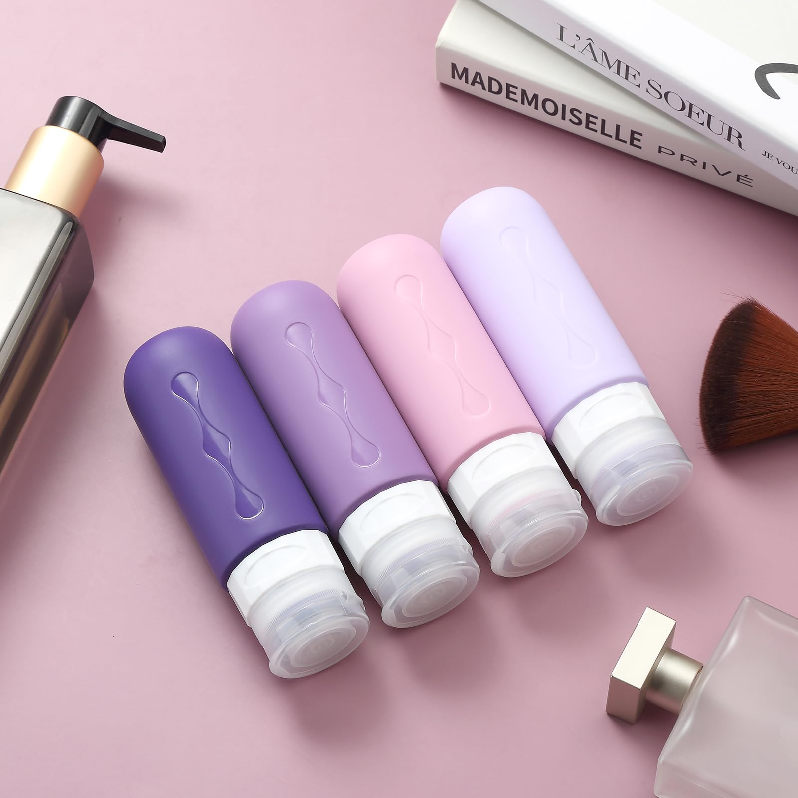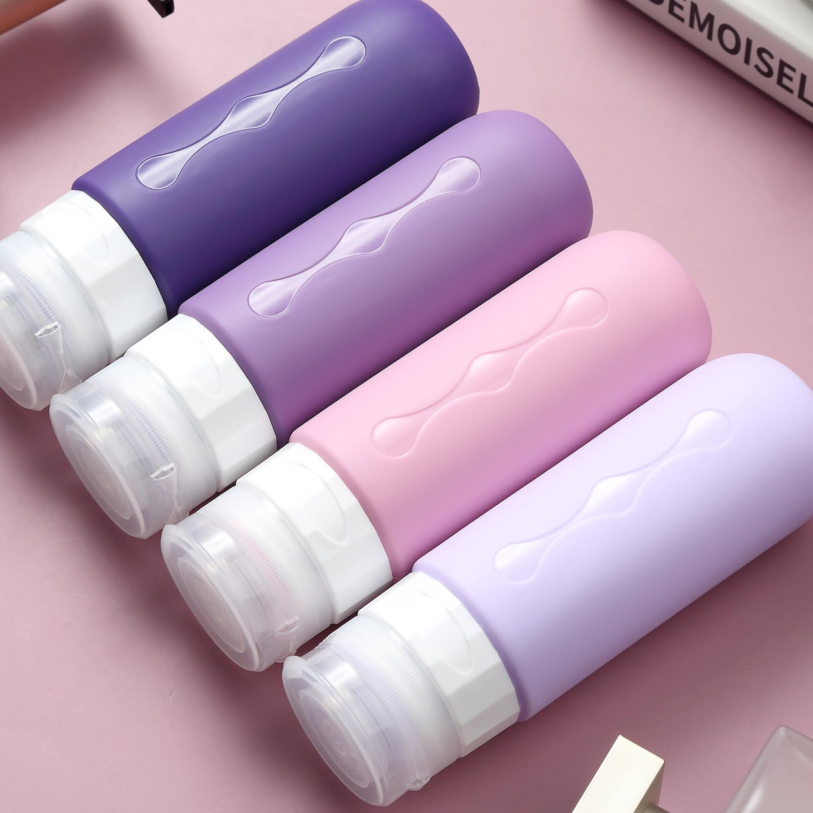 Gemice Silikon Reiseflaschen Set – 4 Stueck 90 ml auslaufsichere Reisebehaelter fuer Toilettenartikel