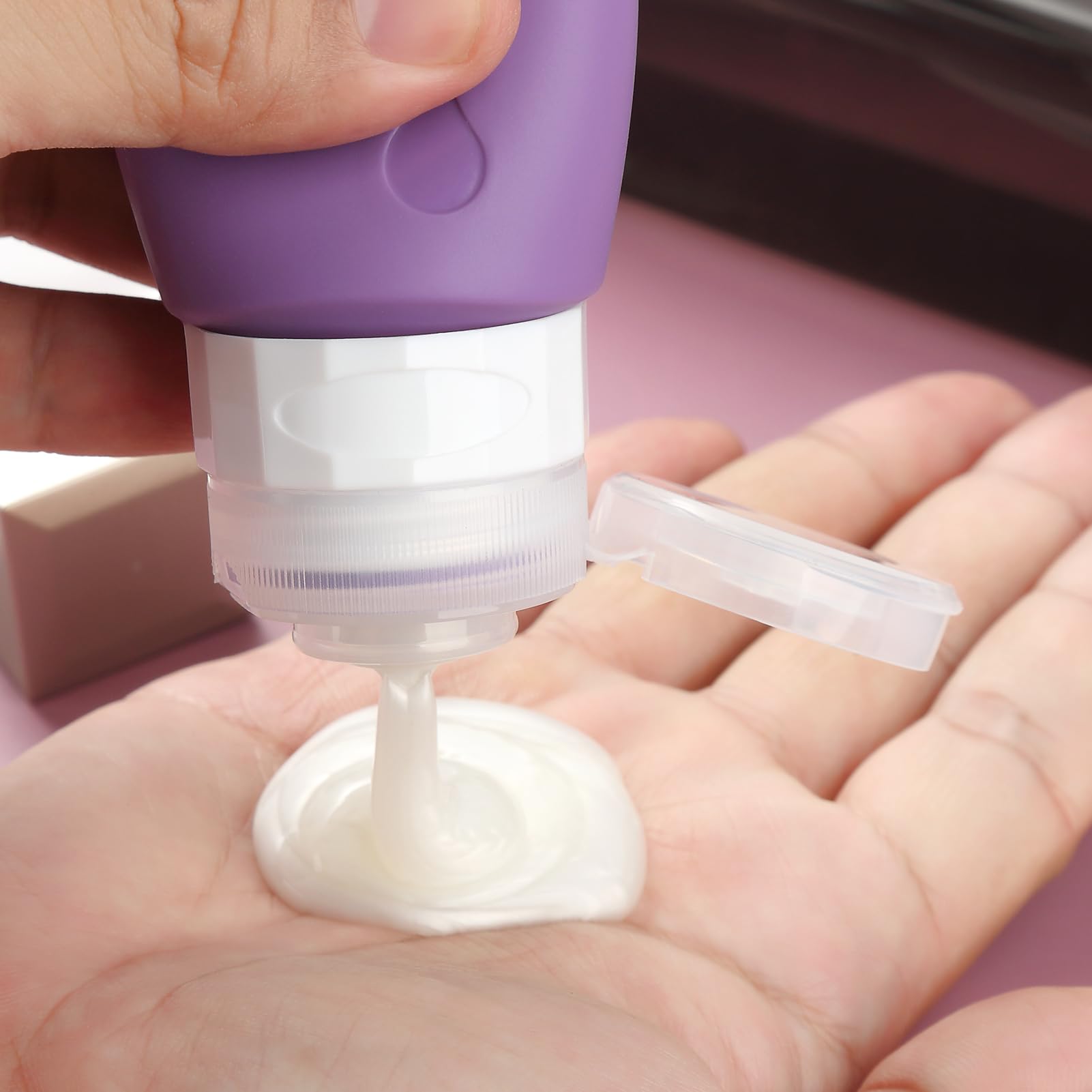 Das Gemice Silikon Reiseflaschen Set mit 4 Stueck à 90 ml ist eine praktische, sichere und hygienische Loesung zur Aufbewahrung von Fluessigkeiten auf Reisen. Die auslaufsicheren und nachfuellbaren Reise Container eignen sich ideal fuer Shampoo, Creme, Spuelung sowie weitere Produkte der taeglichen Koerperpflege. Dank der FDA zugelassenen Materialien sind die Behaelter besonders sicher und fuer den regelmaessigen Gebrauch bestens geeignet.