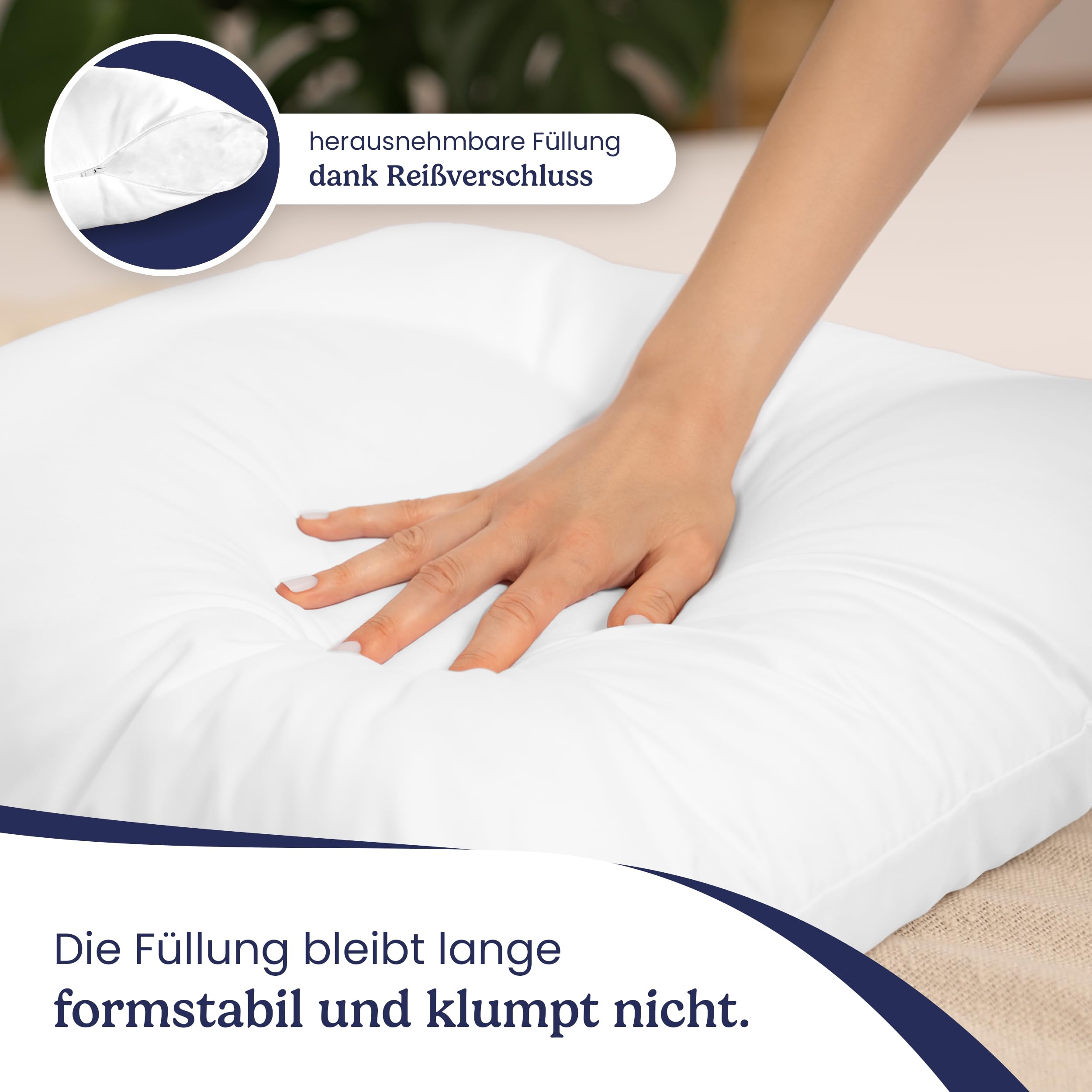 Deutscher Händler: Wir achten auf die Qualität unserer Produkte und nehmen Ihr Feedback ernst! ✔️ KUSCHELIG FLAUSCHIG - Für ein ultrasoftes und allergikerfreundliches Kuschelerlebnis besteht der Bezug vom Kissen und das Füllmaterial aus weichen 100% Polyester Fasern ✔️ HART UND WEICH - Die Menge der Kissenfüllung lässt sich bei diesem hochwertigen Kopfkissen ganz einfach durch den Reissverschluss anpassen✔️ VIELSEITIG EINSETZBAR - Als Bettkissen und Kuschelkissen genau so gut geeignet wie als Sofakissen, Deko Kissen oder Couchkissen fürs Wohnzimmer✔️ DAS IST DRIN - 2er Set Kissen in der Grösse 45x45 cm (perfektes Innenkissen für einen Kissenbezug in der Grösse 45 x 45 cm)✔️ ÖKOTEX MADE IN EU - Unsere Ökotex-Zertifizierten Kissen werden in Europa unter Einhaltung höchster Hygiene- und Produktionsstandards produziertLieferumfang: 2 x Kopfkissen 45x45 cmAllgemeine Hinweise: Aufgrund unterschiedlicher Bildschirmeinstellungen und Auflösungen sind leichte Farbabweichungen möglich.Pflege-Hinweise: Waschbar bis 60 GradTrocknergeeignet (nur normal trocknen)Nach dem Waschen immer gut durchtrocknen, dann einmal kurz und kräftig aufschlagenJetzt ganz nach oben scrollen und das Kopfkissen 45x45 2er Set direkt ☝ IN DEN EINKAUFSWAGEN LEGEN ☝