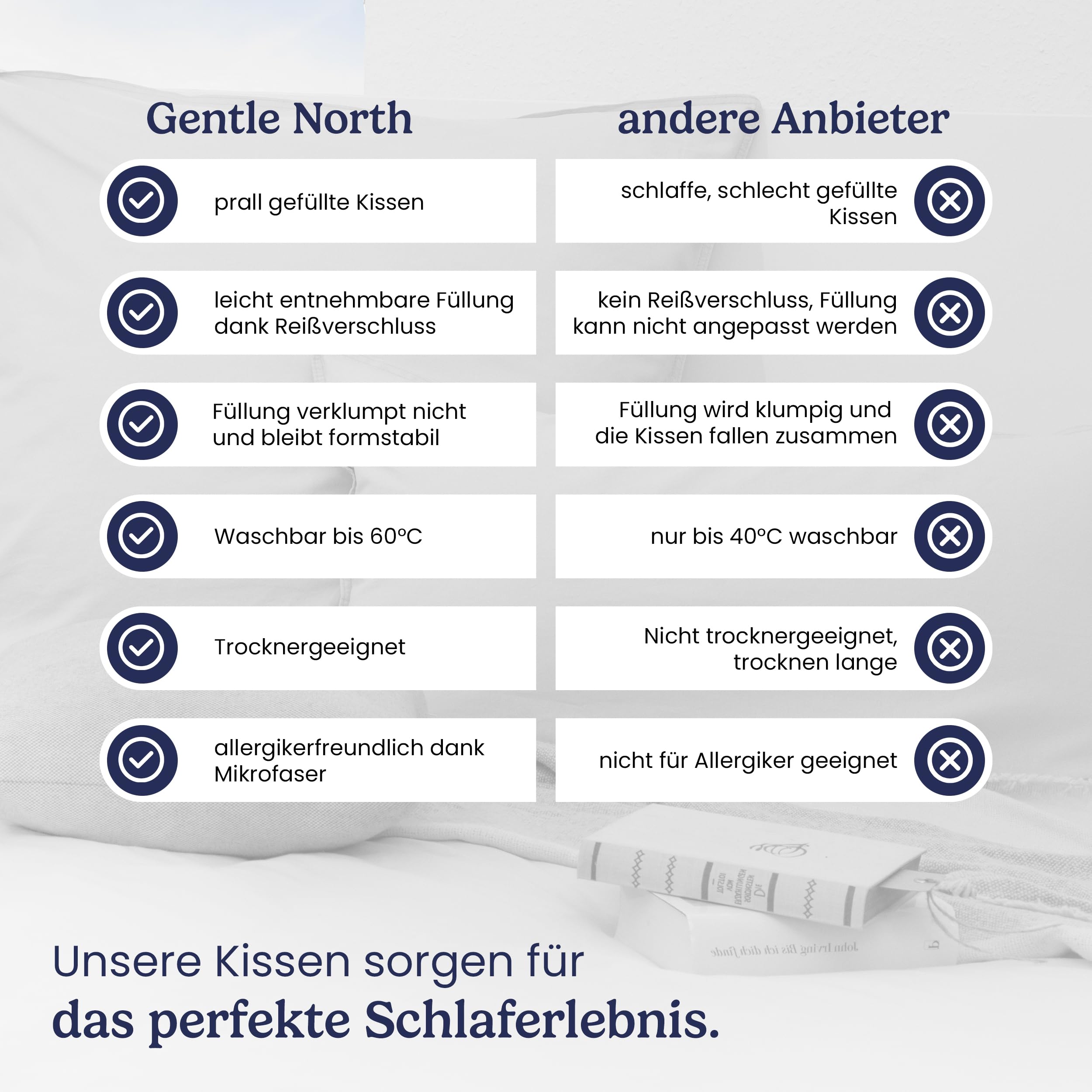 Gentle North Kopfkissen (40x60 cm gross) - 4er Set Kissen für Bett und als Dekokissen - Mit Reissverschluss für Füllung - Sofakissen - Zierkissen für Couch und Sofa - Ökotex - Waschbar bis 60° - Weiss
