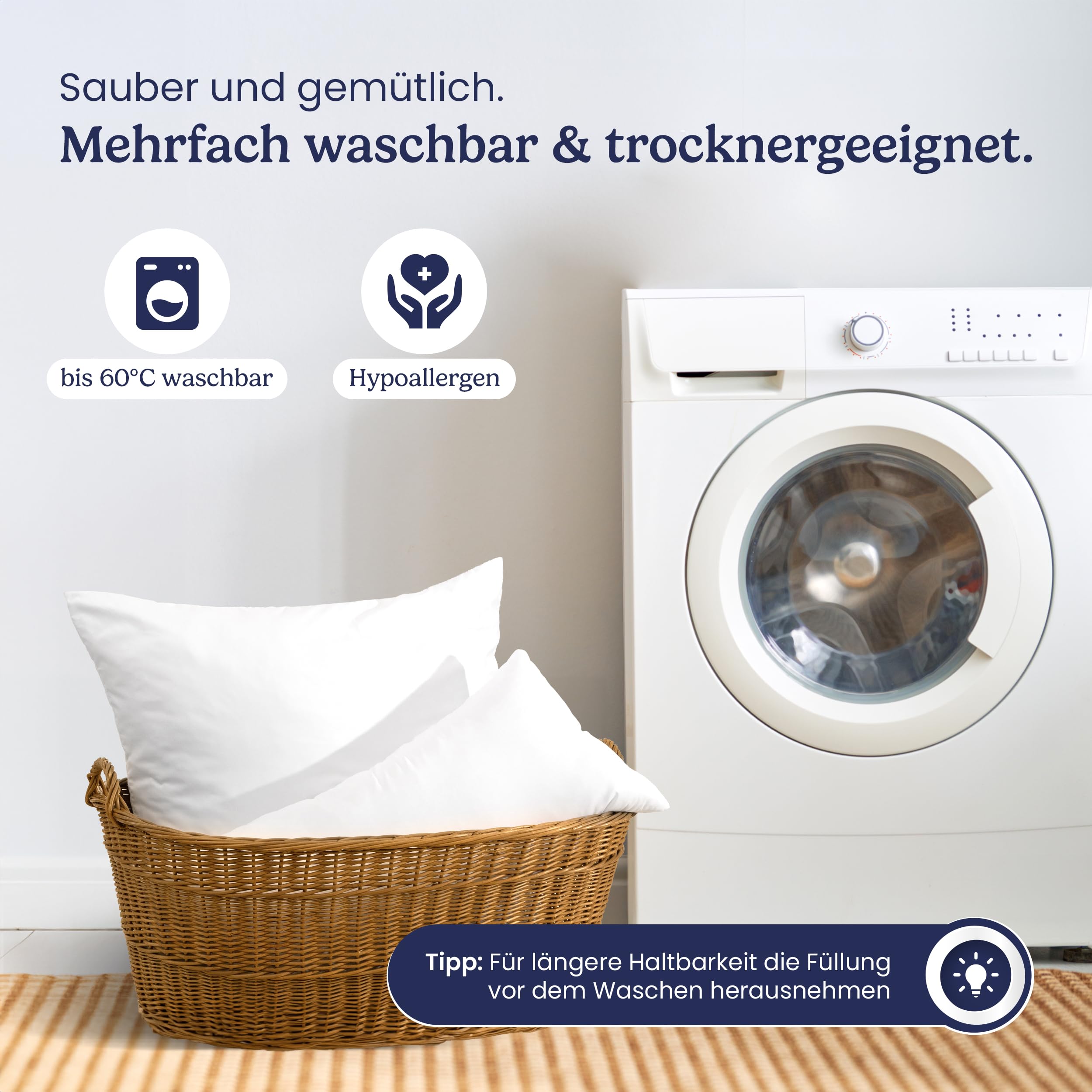 Deutscher Händler: Wir achten auf die Qualität unserer Produkte und nehmen Ihr Feedback ernst! ✔️ KUSCHELIG FLAUSCHIG - Für ein ultrasoftes und allergikerfreundliches Kuschelerlebnis besteht der Bezug vom Kissen und das Füllmaterial aus weichen 100% Polyester Fasern ✔️ HART UND WEICH - Die Menge der Kissenfüllung lässt sich bei diesem hochwertigen Kopfkissen ganz einfach durch den Reissverschluss anpassen✔️ VIELSEITIG EINSETZBAR - Als Bettkissen und Kuschelkissen genau so gut geeignet wie als Sofakissen, Deko Kissen oder Couchkissen fürs Wohnzimmer✔️ DAS IST DRIN - 4er Set Kissen in der Grösse 30x50 cm (perfektes Innenkissen für einen Kissenbezug in der Grösse 30 x 50 cm)✔️ ÖKOTEX MADE IN EU - Unsere Ökotex-Zertifizierten Kissen werden in Europa unter Einhaltung höchster Hygiene- und Produktionsstandards produziertLieferumfang: 4 x Kopfkissen 30x50 cmAllgemeine Hinweise: Aufgrund unterschiedlicher Bildschirmeinstellungen und Auflösungen sind leichte Farbabweichungen möglich.Pflege-Hinweise: Waschbar bis 60 GradTrocknergeeignet (nur normal trocknen)Nach dem Waschen immer gut durchtrocknen, dann einmal kurz und kräftig aufschlagenJetzt ganz nach oben scrollen und das Kopfkissen 30x50 4er Set direkt ☝ IN DEN EINKAUFSWAGEN LEGEN ☝