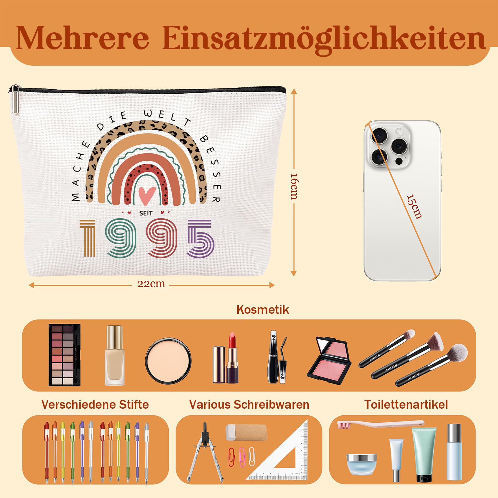 Geschenk zum 30. Geburtstag für Frauen – Make-up-Tasche & Schlüsselanhänger (Jahrgang 1995)
