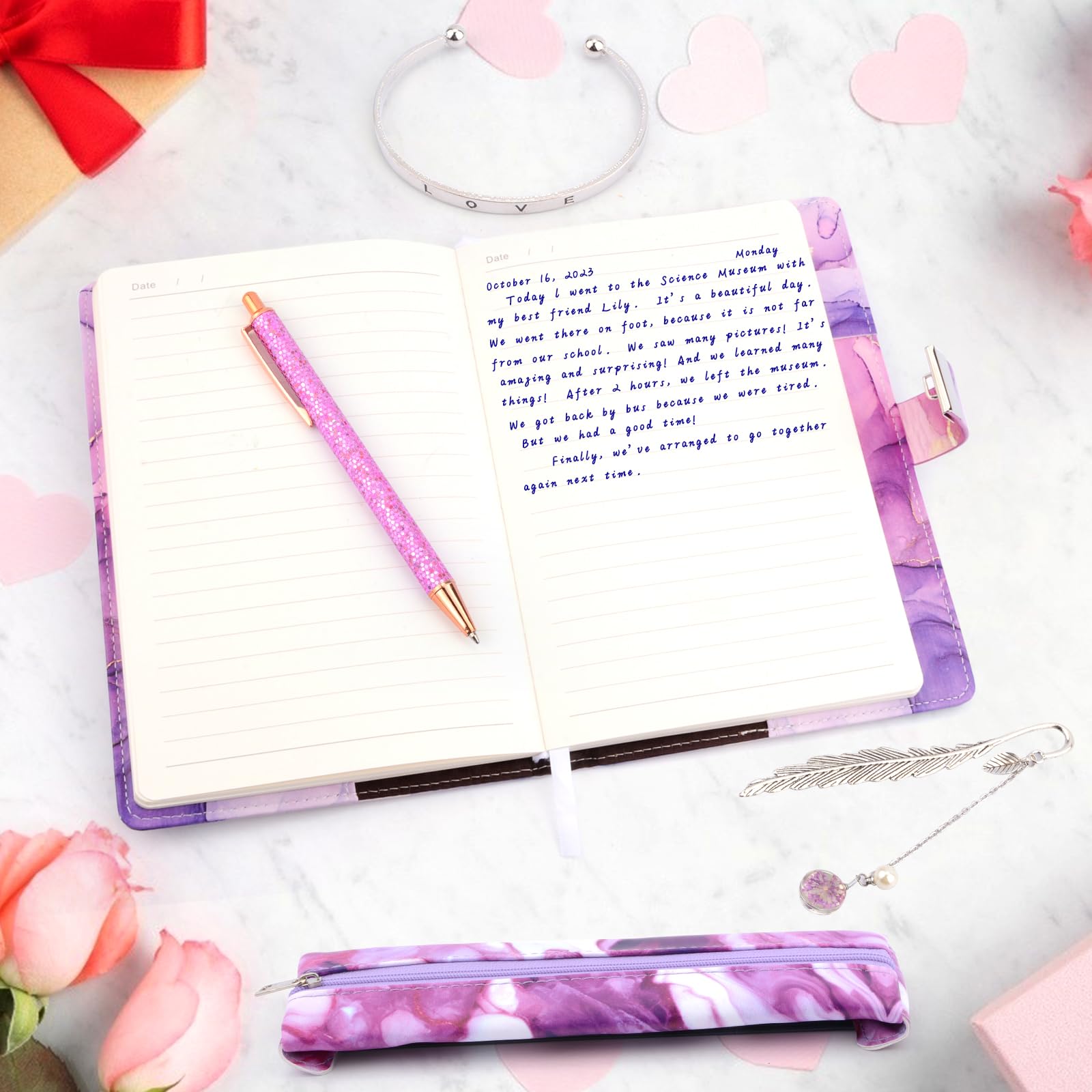 • ????Grösse und Material: Das 162-seitige Tagebuch hat die Grösse A5 (8,47 x 5,71 Zoll). Wir haben hochwertiges Papier gewählt, um sicherzustellen, dass die Tinte nicht durchschlägt und Ihr Stift leicht über die Seiten gleiten kann. Das modische Marmormuster und der weiche, wasserdichte PU-Einband schützen das Tagebuch und sorgen dafür, dass es lange verwendet und aufbewahrt werden kann. Notizbuch kinder schulsachen mädchen schreibwaren set.