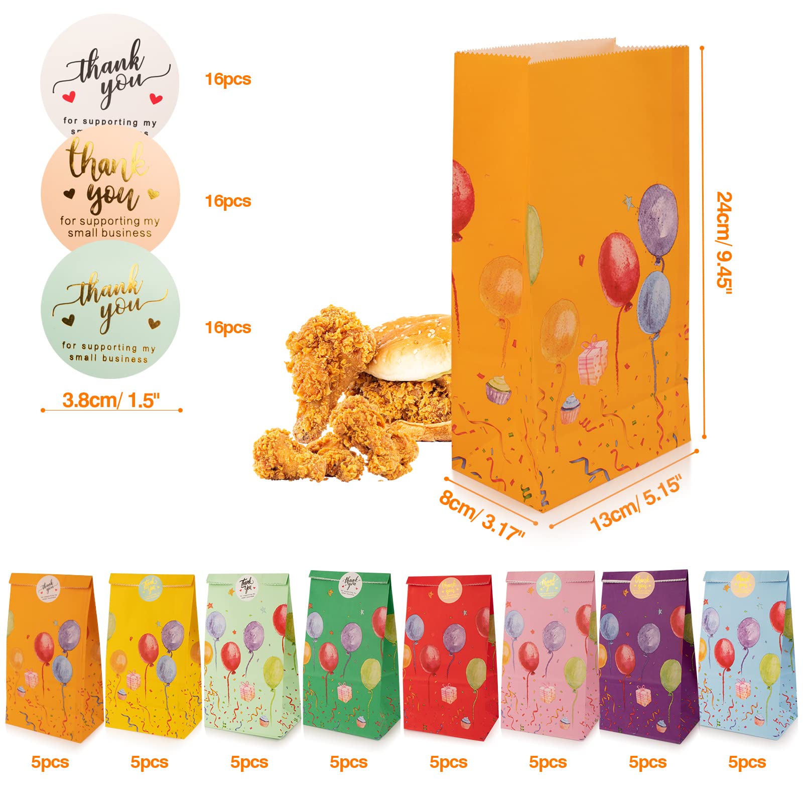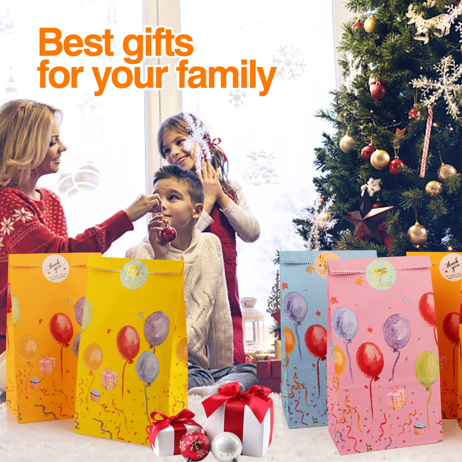 • ????GESCHENKTÜTEN GRÖSSE : Die Grösse der papiertüten ist 240mm x 130mm x 80mm. Pro Packung gibt es 24 stück bunten Geschenktüten und 30 Kreisförmigen Aufkleber, Grösse des Aufkleber: 3,8x3,8 cm; In diesen candy tüten können Sie alle Arten von süssigkeit, Nüsse, Kekse usw. Die Aufkleber sind mit einer Schutzfolie überzogen, die nicht leicht zu beschädigen oder zu beflecken ist. Geeignet zum Verschliessen von Papiertüten oder zum Aufkleben als Dekoration.