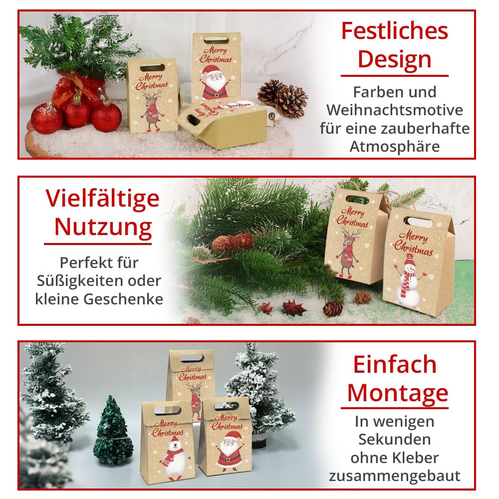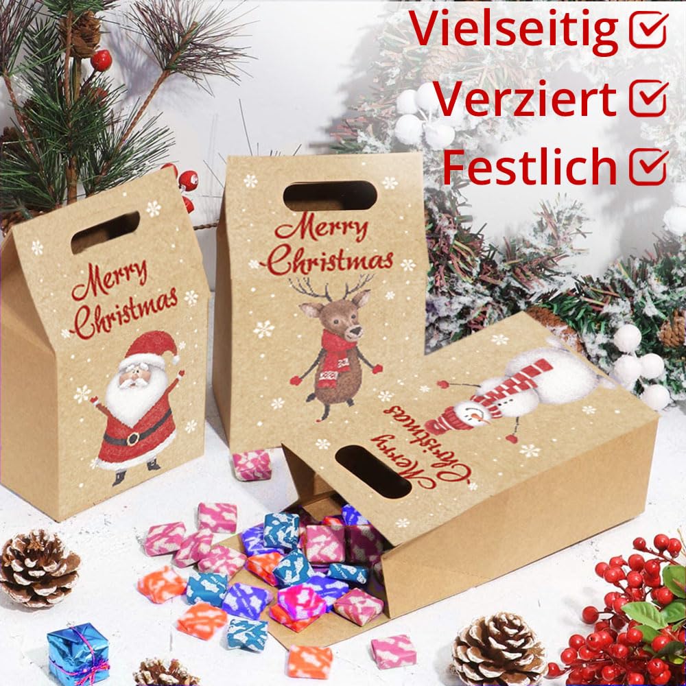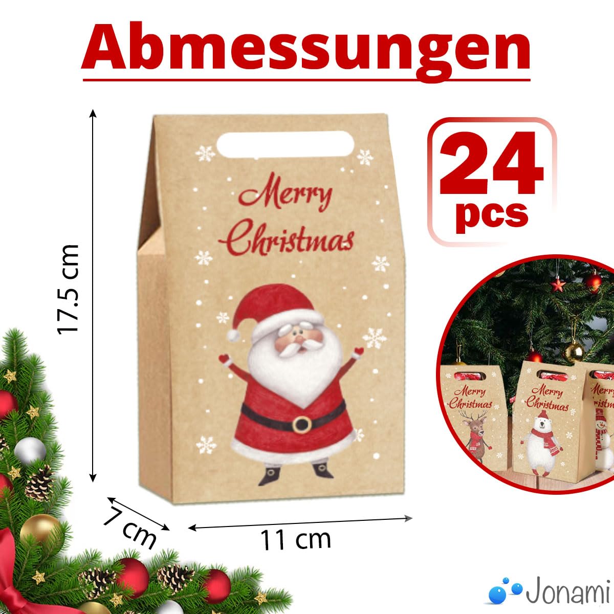 Geschenktüten Weihnachten, Weihnachtstüten Papiertüten mit Griff, Partytasche Geschenkbox Kraftpapier Verpackung, Schokolade SüssIgkeiten Organizer -24STK