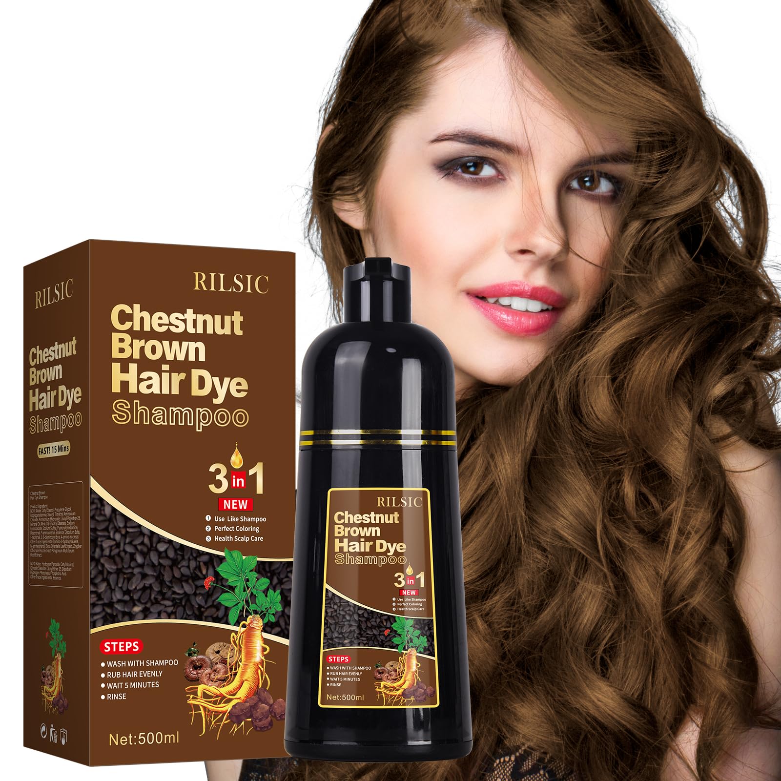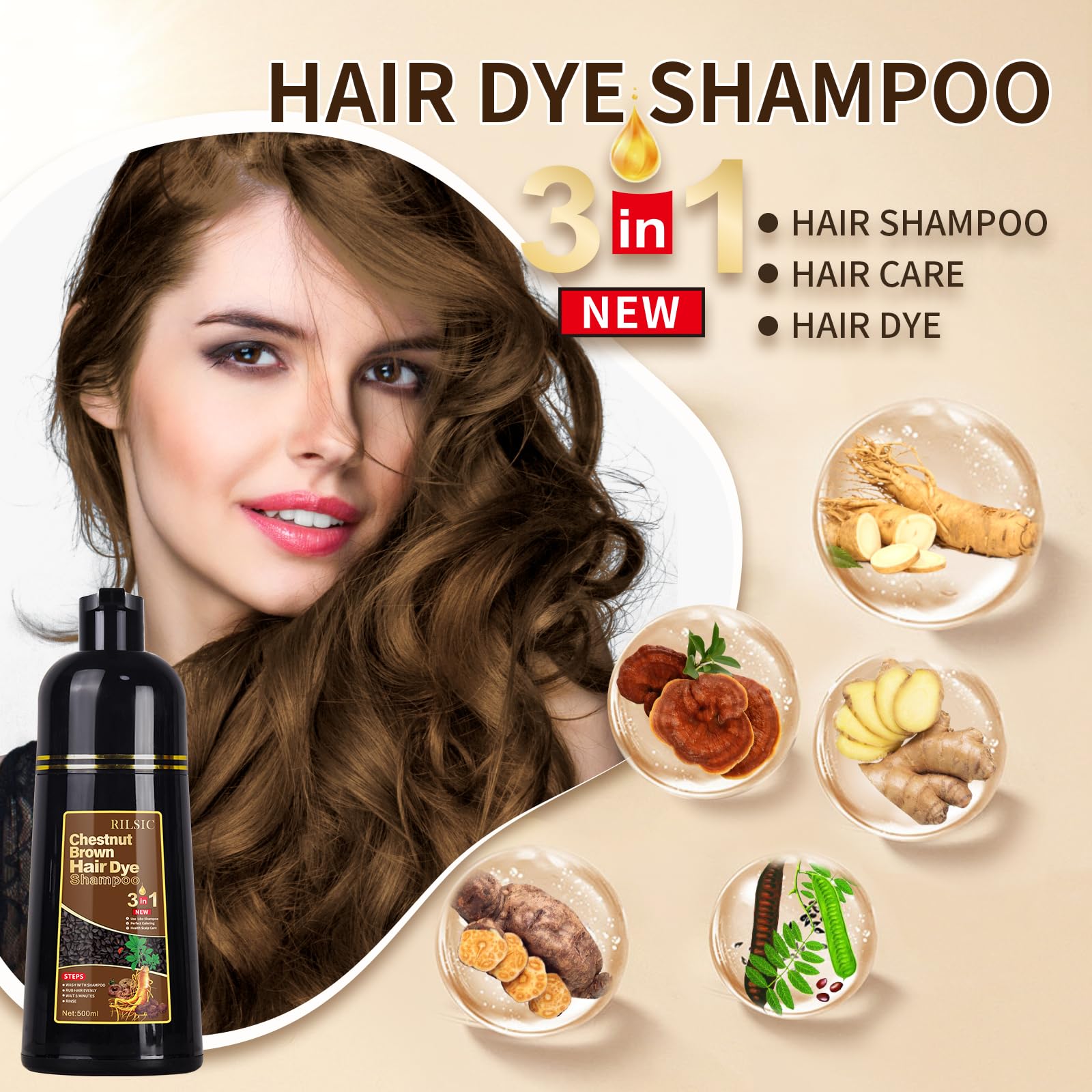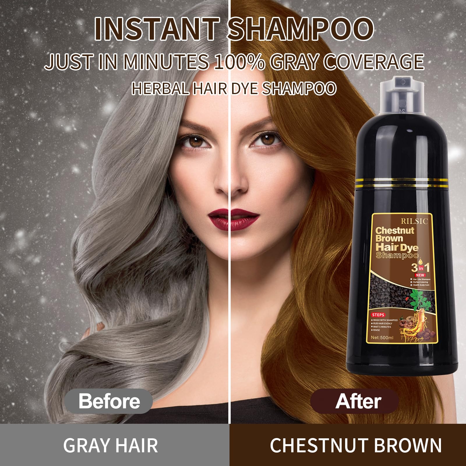 GFEUGS Haarfarbe Kastanienbraun Haarfärbeshampoo, 500ML Hair Dye Shampoo 3in1 Gegen Graue Haare, Hair Color Sofort Haarfarbe Shampoo Tönungsshampoo, Farbshampoo Haartönung für Männer Frauen