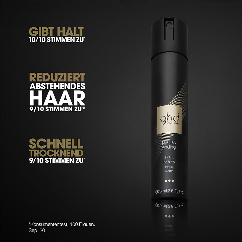 Mindestanzahl für die Bestellung von "ghd perfect ending - final fix hairspray: Haarspray für maximalen Halt, langanhaltende Looks, professionelles Finish, leicht auszubürsten, für alle Haartypen" ist 1.