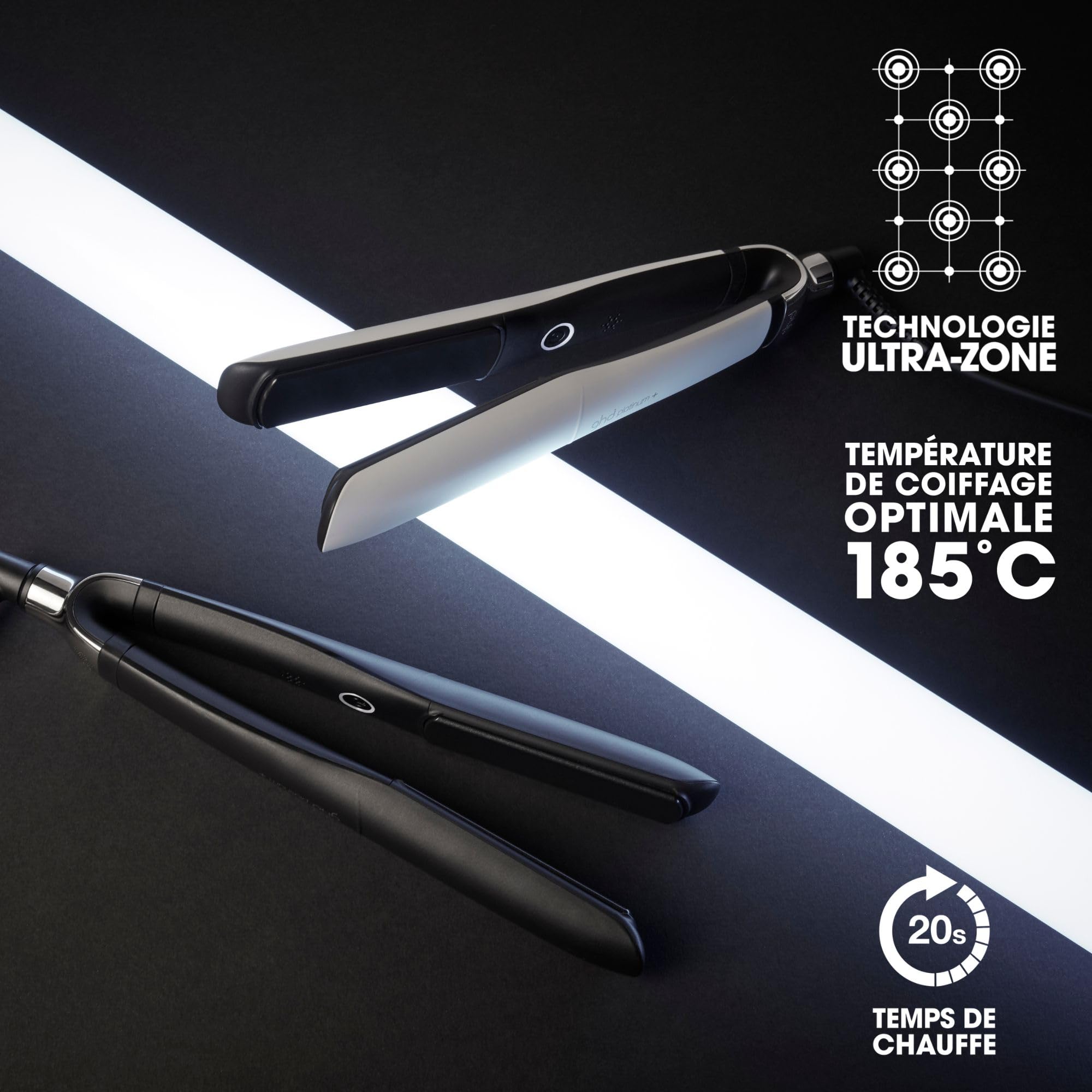 Der ghd platinum+ Styler ist das ultimative Glätteisen, das auf die Bedürfnisse Ihres Haars eingeht. Die vorausschauende Ultra-Zone Technologie garantiert gleichmässige, professionelle Ergebnisse. Die fortschrittliche Keramik-Heiztechnologie und die Sensoren erkennen Ihren Haartyp und Ihre Stylinggeschwindikeit und passen den Energiebedarf darauf an, damit die optimale Stylingtemperatur von 185°C konstant gehalten wird, für sichtbar gesünderes Haar. Der ghd platinum+ Styler ist nicht nur ein Glätteisen sondern er ist ein Multifunktions-Tool, mit dem Sie eine Vielzahl an Frisuren kreieren können - von glatten Looks bis hin zu grossen Locken und Beach Waves. Die Stylingplatten sind mit einer Ultra-Gloss-Beschichtung überzogen, um geschmeidige, glatte Looks zu stylen, während das abgerundete Gehäuse sich ideal dazu eignet Locken und Wellen zu kreieren. Universalspannung. Für zusätzliche Sicherheit, schaltet sich der Haarglätter durch den automatischen Schlafmodus nach 30 Minuten ohne Benutzung aus.*Reduziert Haarbruch und liefert 2x mehr Farbbeständigkeit im Vergleich zu einem Styler bei 230°C. **Im Vergleich zu natürlich getrocknetem Haar.