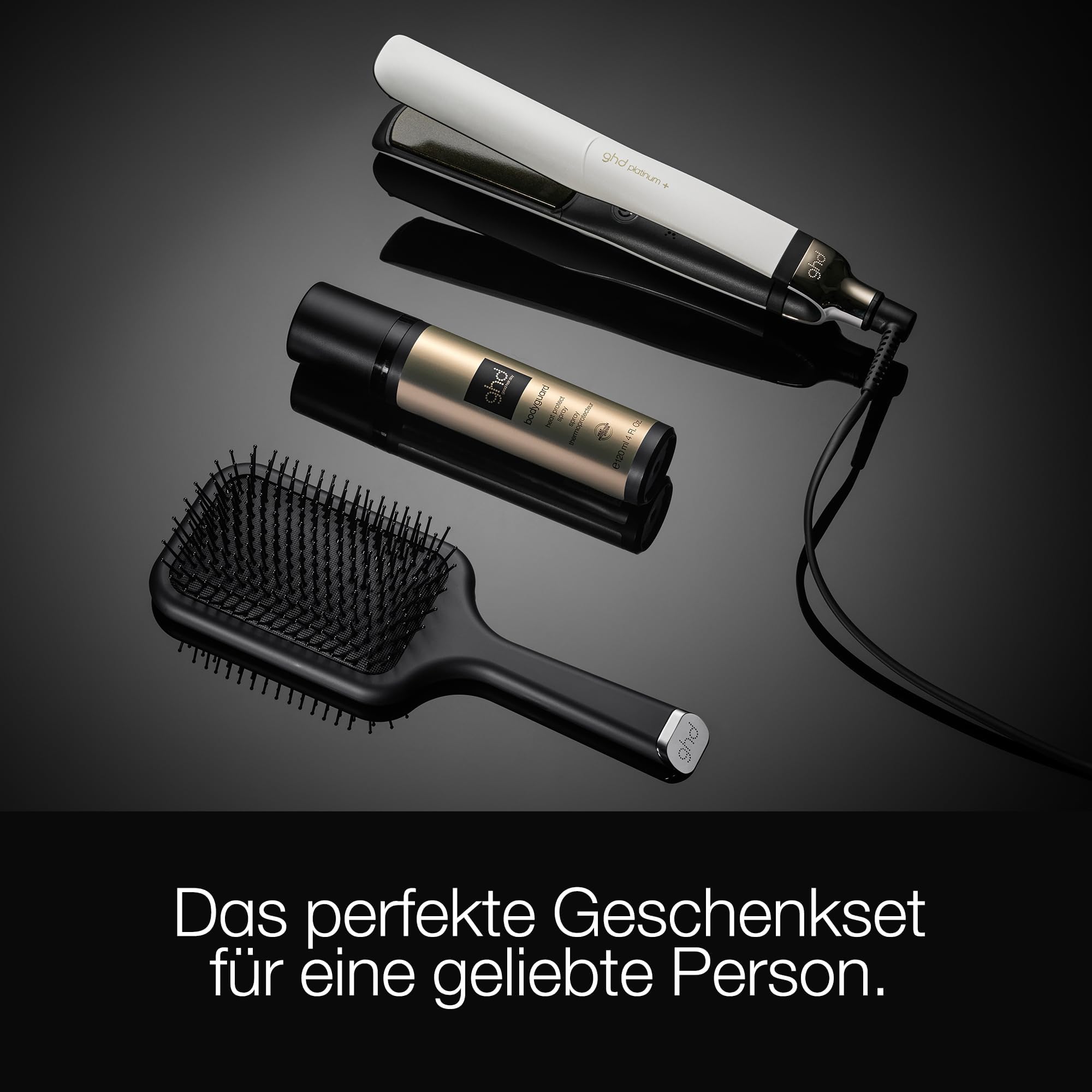 Das exklusive ghd platinum+ Geschenkset von Amazon ist da. Dieses Set enthält den ghd Platinum+ Smart Styler, ghd bodyguard - Hitzeschutzspray und ghd all rounder - Paddle Brush. Perfekt für alle Haartypen - das ideale Geschenk für jeden Haarliebhaber.