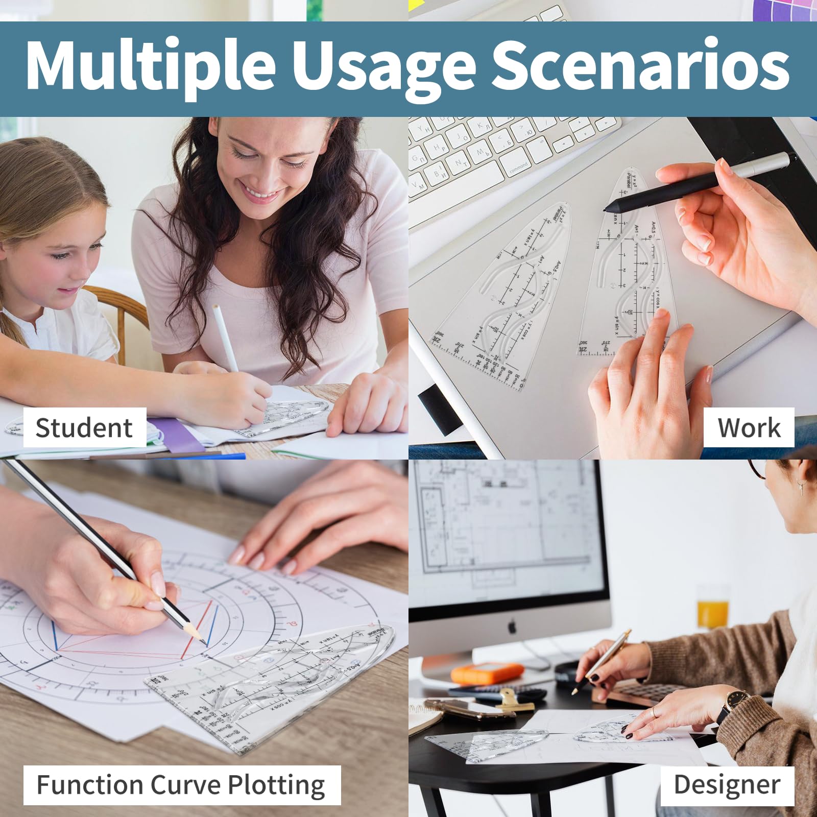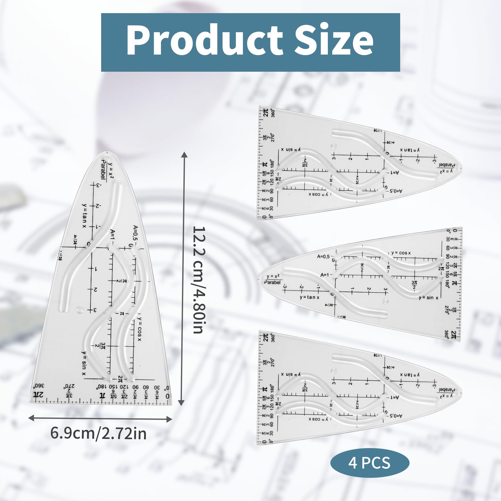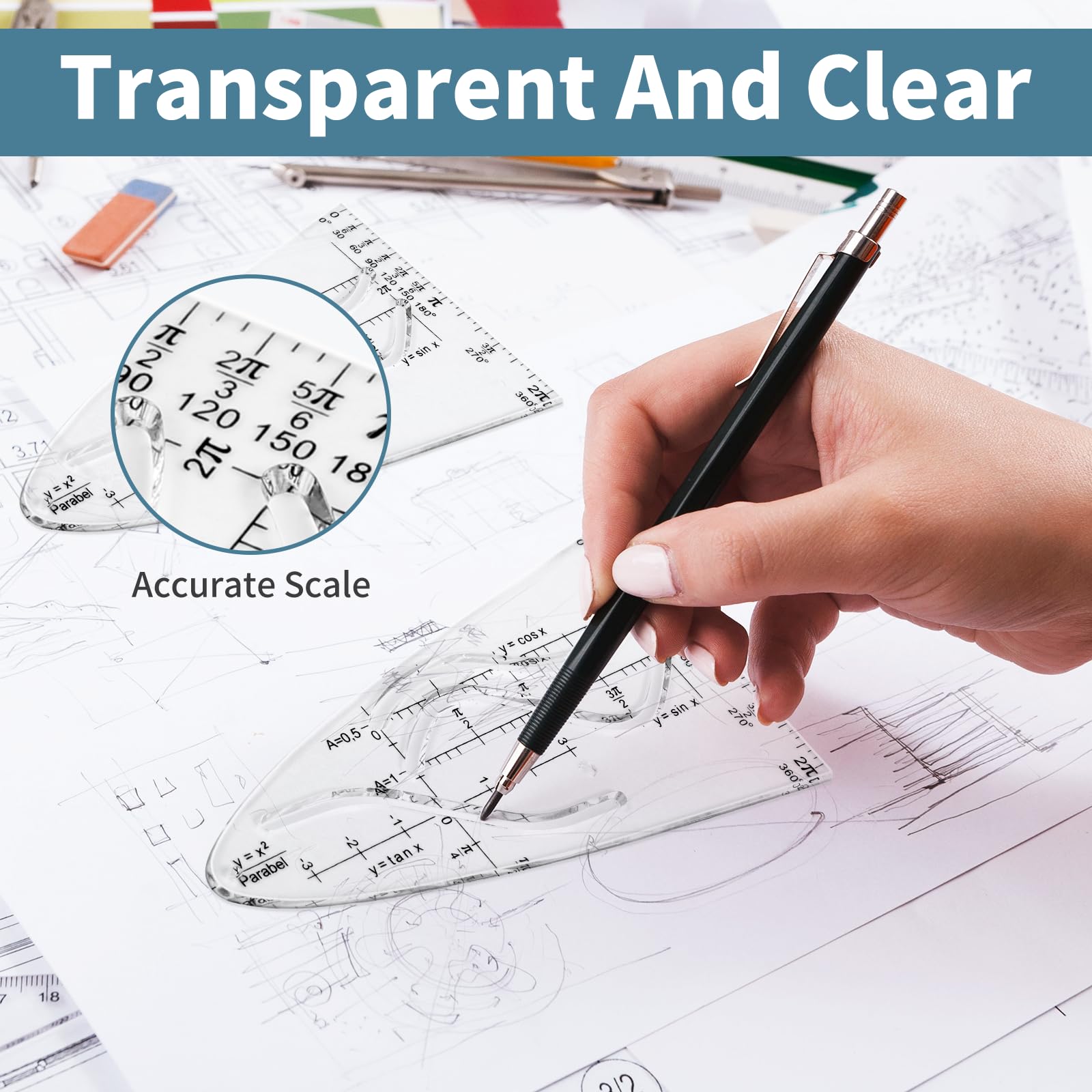 GHVACZS 4 Stück Parabelschablone, Parabelschablone Mathe, Schablone Einheitsparabel, Normalparabel Schablone für Studenten, Designer und Büroangestellte