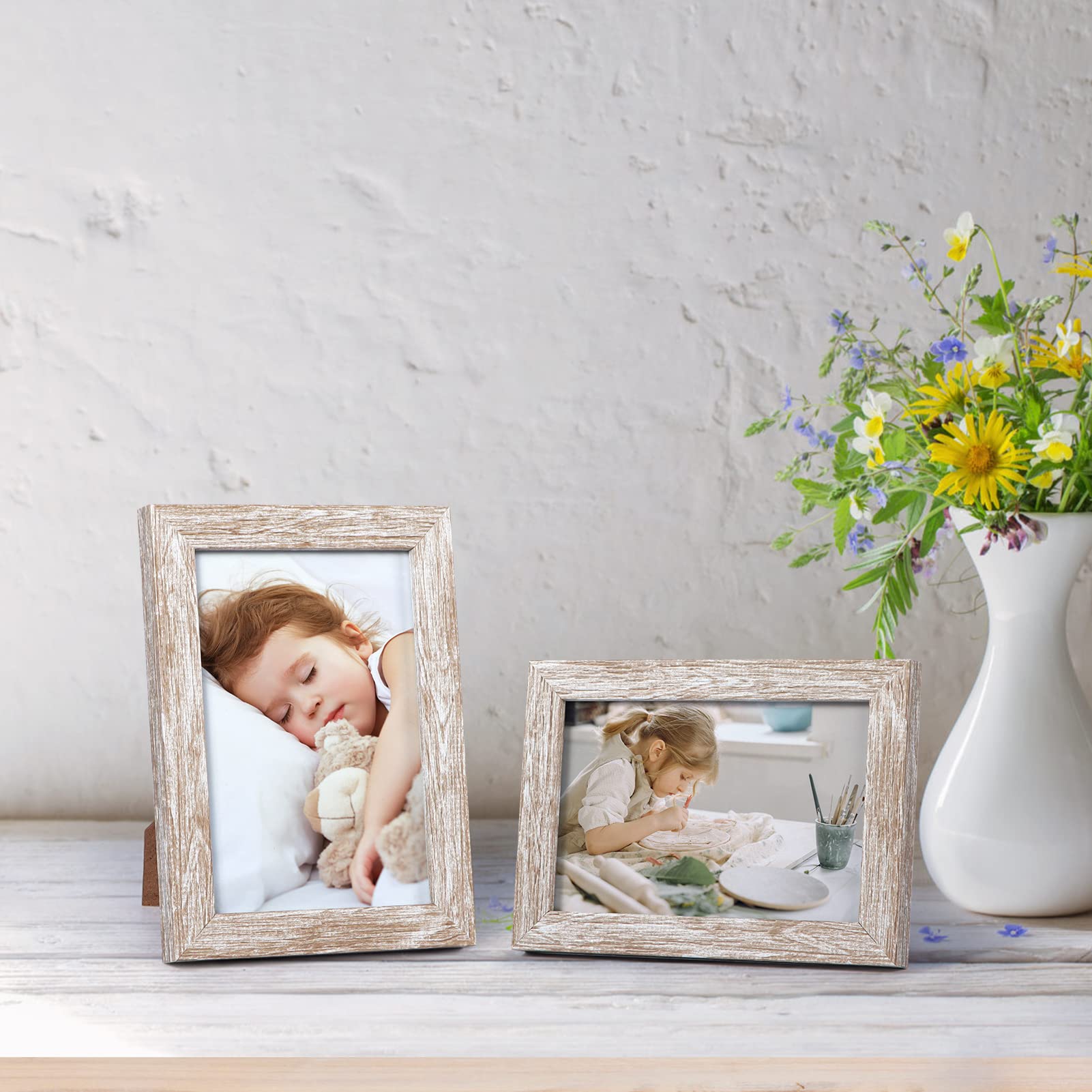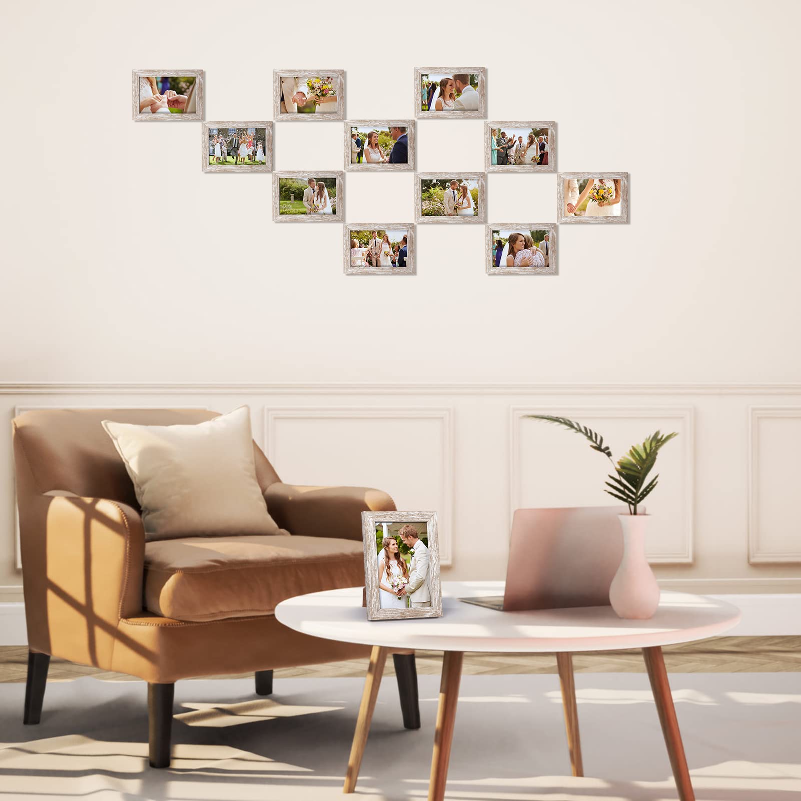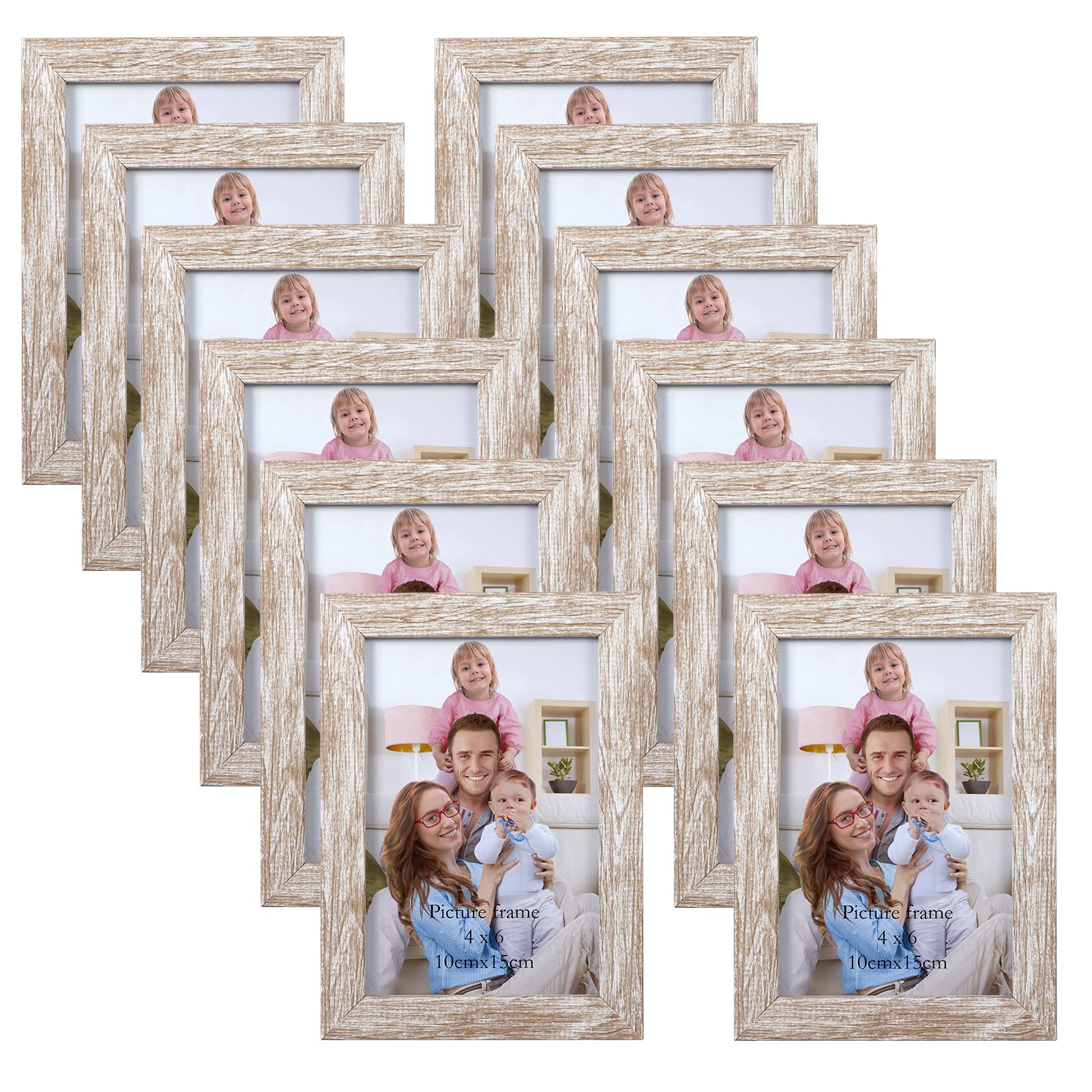 Giftgarden 12 Stück Bilderrahmen Set 10x15 cm - Moderne Beige Holzmaserung Fotorahmen Collage für 15x10 cm Fotos und Bilder, Wand- oder Tischaufsteller