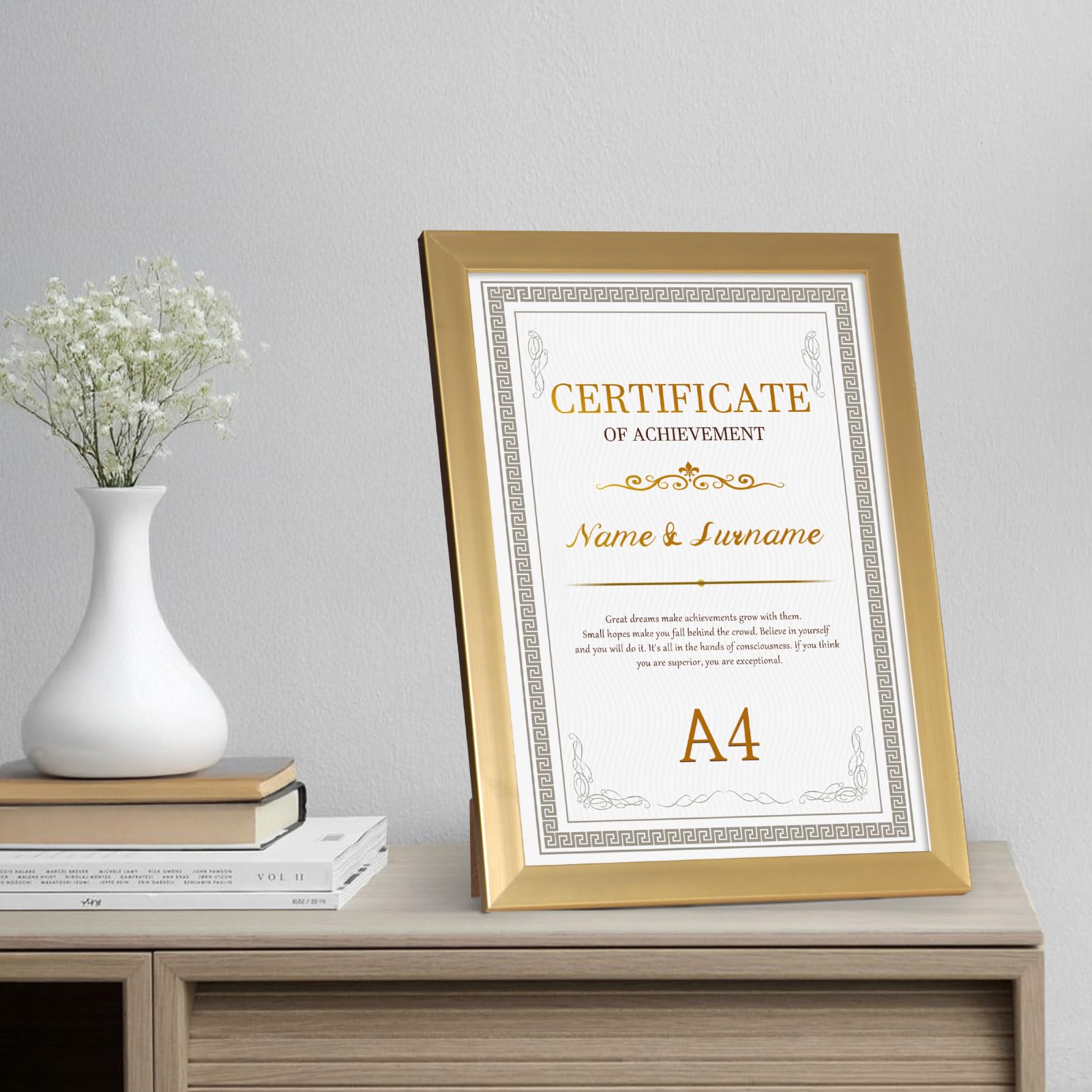 - Perfekte Präsentation: Der Bilderrahmen a4 gold setzt wertvolle Inhalte professionell in Szene und unterstreicht die Ästhetik und Professionalität Ihres Zuhauses oder Büros.