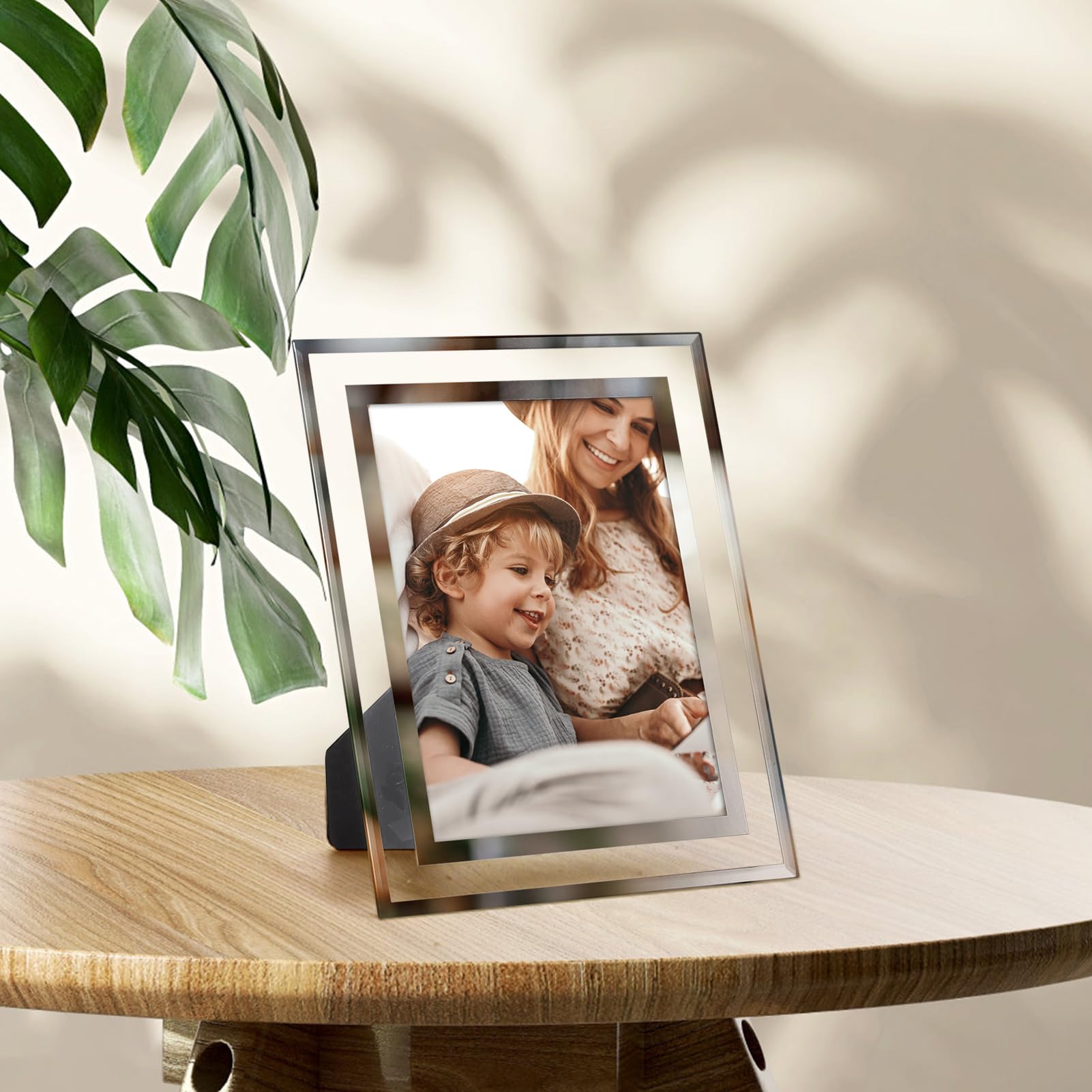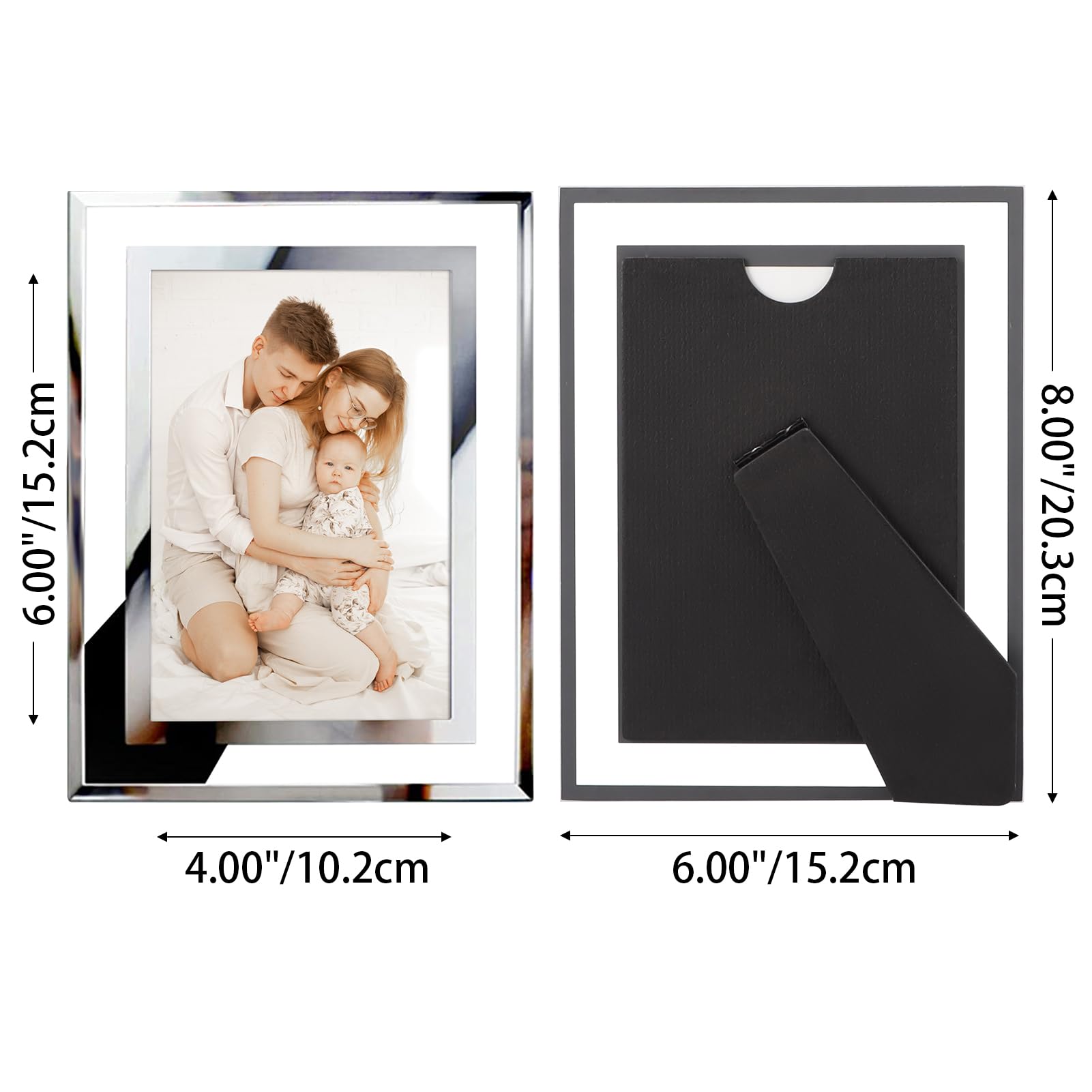 Giftgarden 4er Set Glas Bilderrahmen 10x15 cm - Silber Fotorahmen für 15x10 cm Fotos und Bilder für Babyfotos, Familienfotos und Hochzeitsfotos - Ideal für Tisch- und Heimdekoration