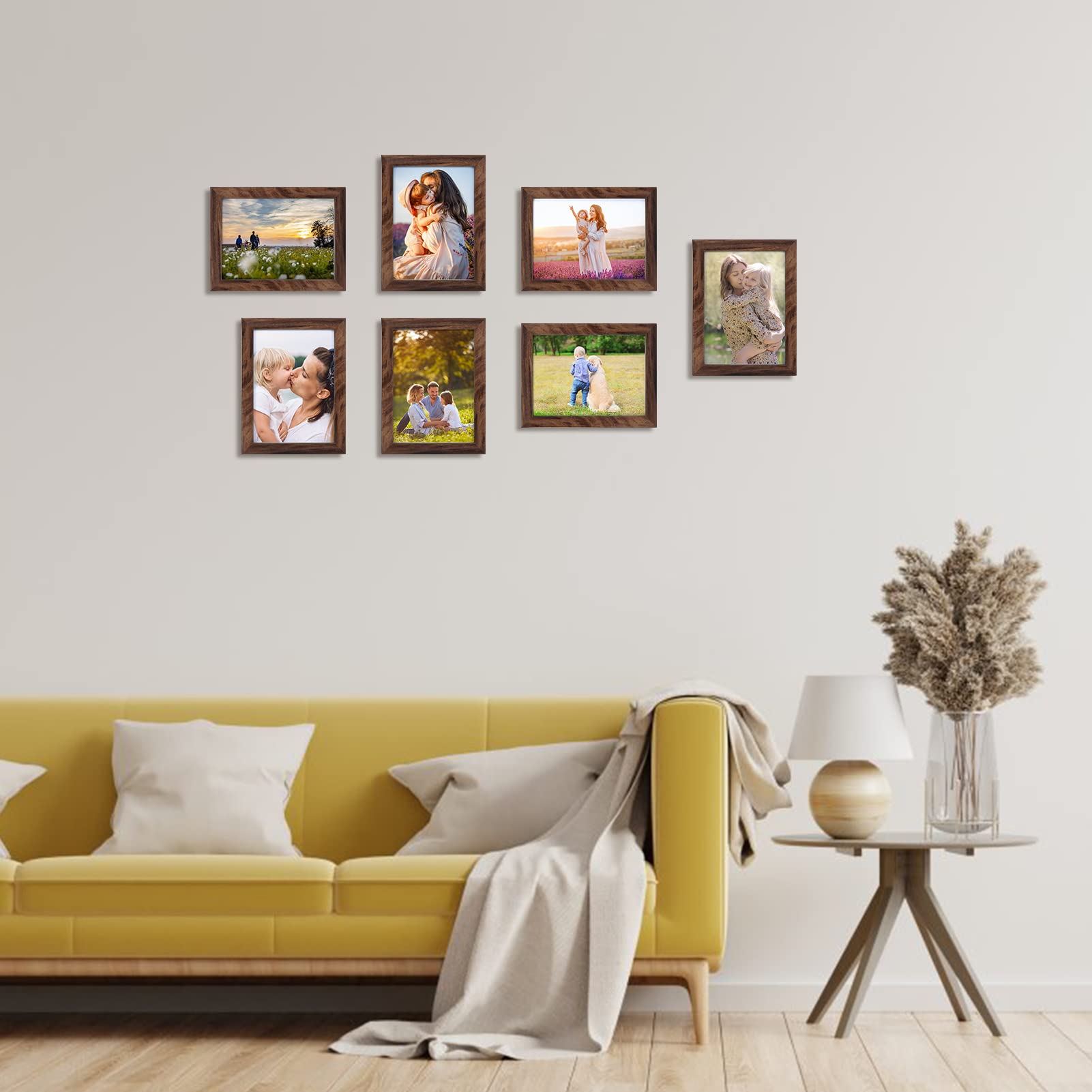Giftgarden 7 Stück Bilderrahmen Set 13x18 cm für 18x13 Fotos und Bilder, Braun Fotorahmen Collage, Wand- oder Tischaufsteller - Geschenk Freund